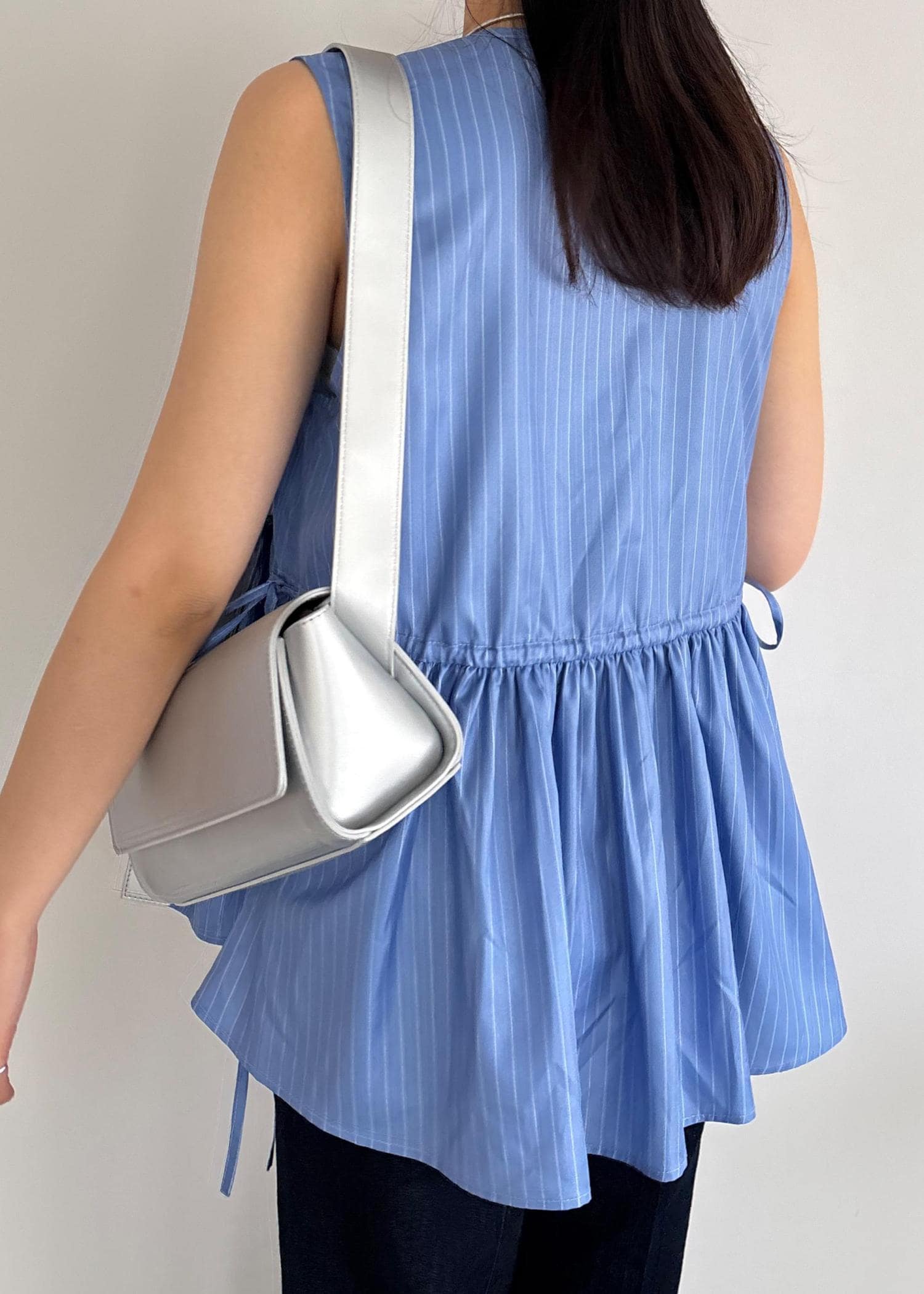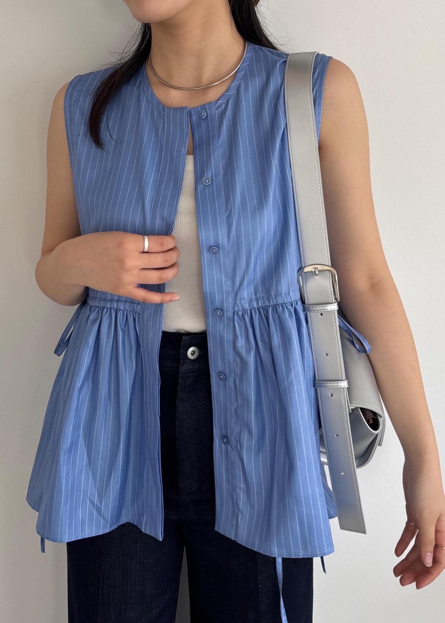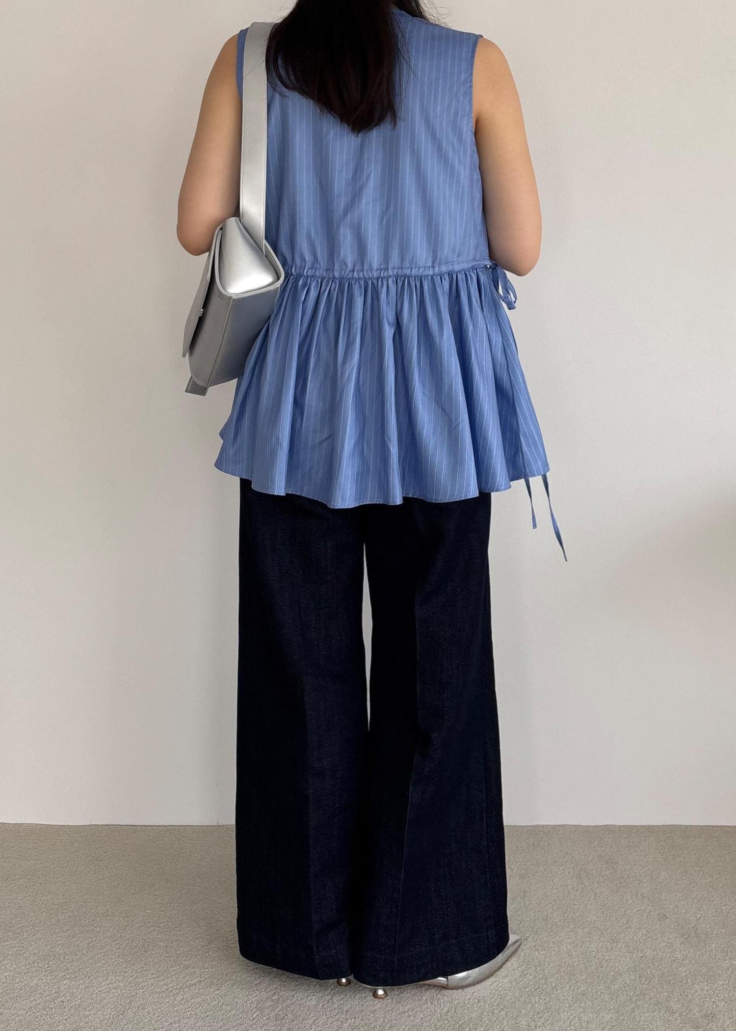 サイドの紐でウエストマークが出来、スタイルアップに!裾が広がりすぎないペプラムシルエットが可愛いです◎ -