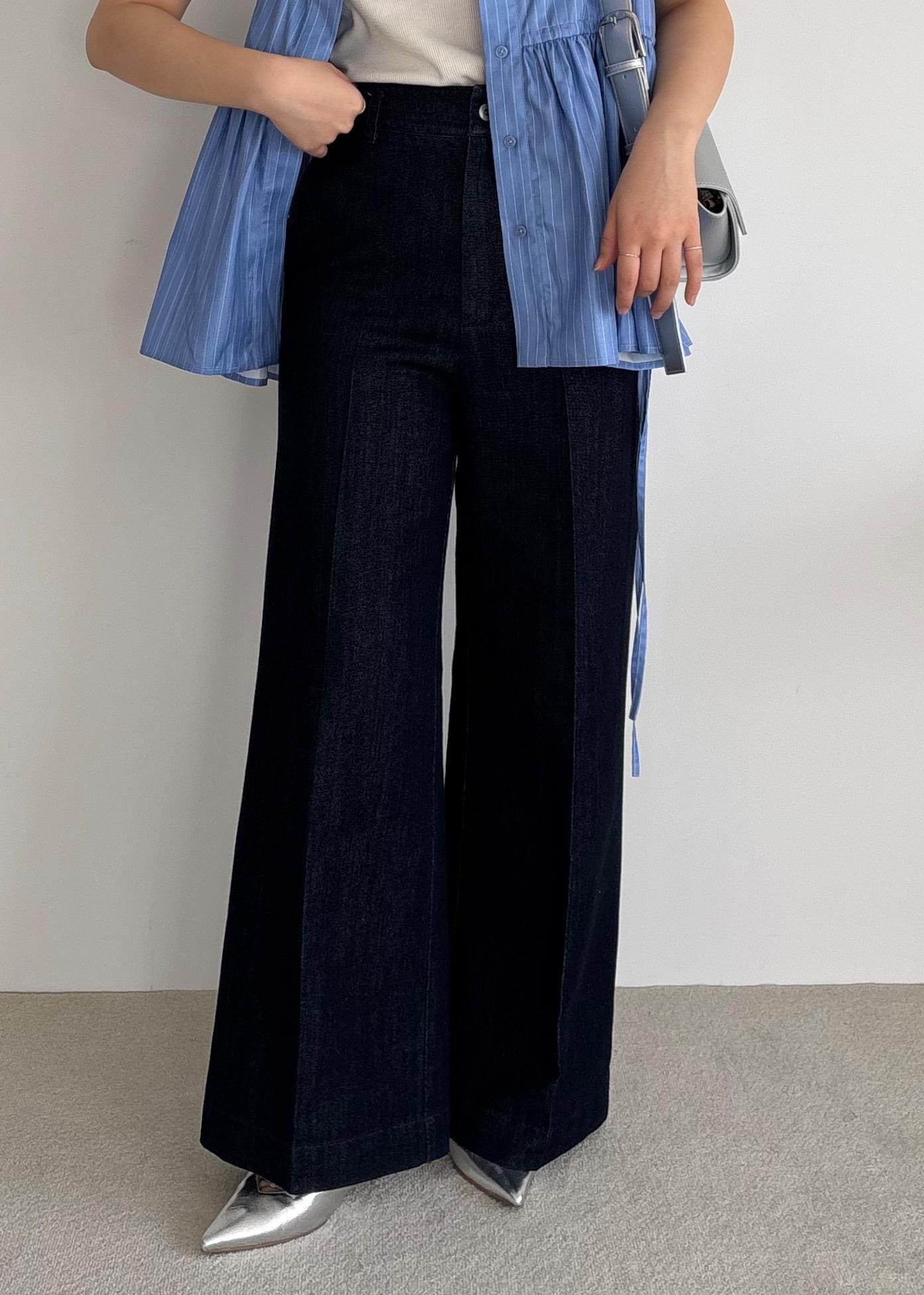 太めなパンツですが、センタープレスが入っているため、スタイル良くすっきり見えします◎ -