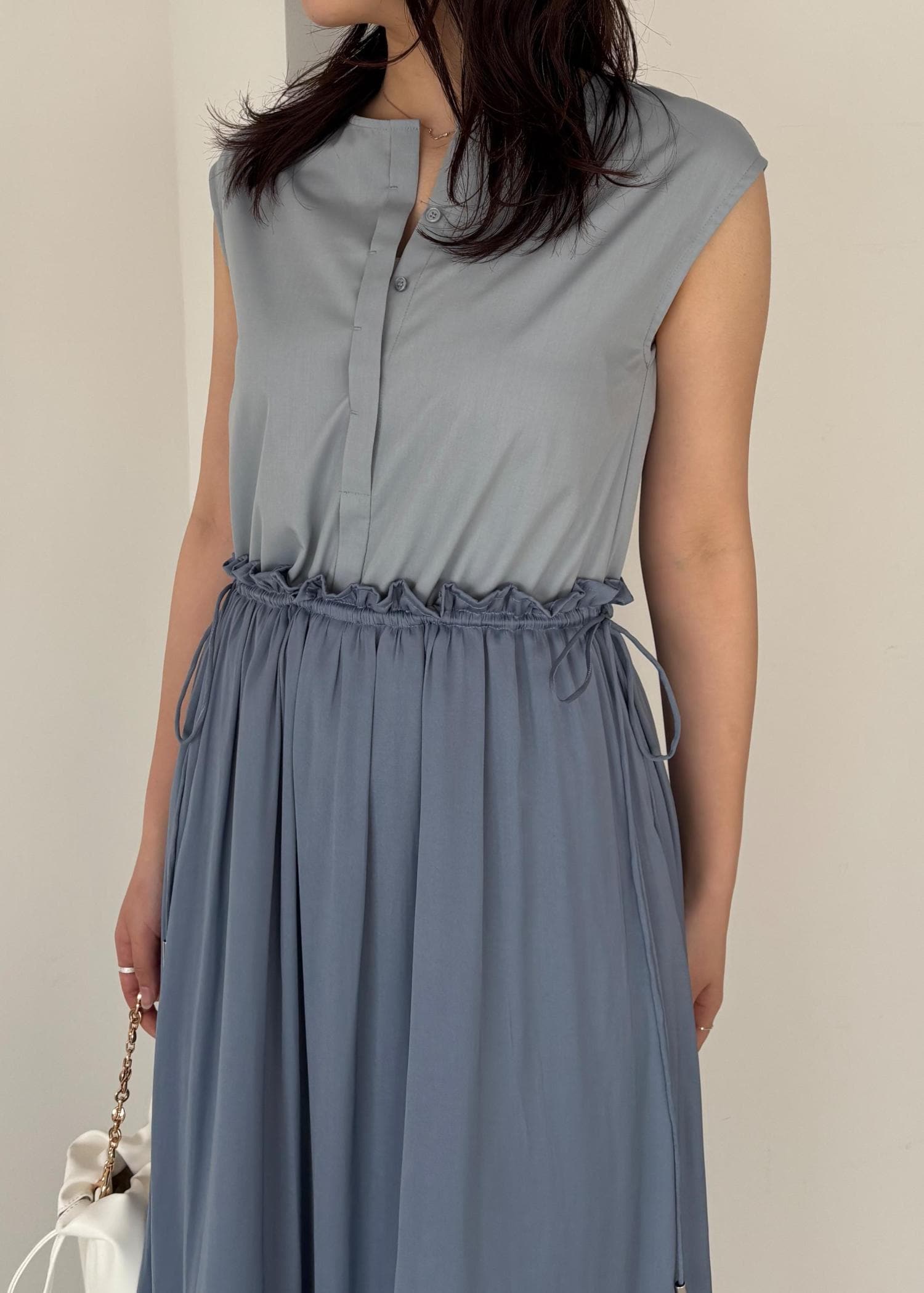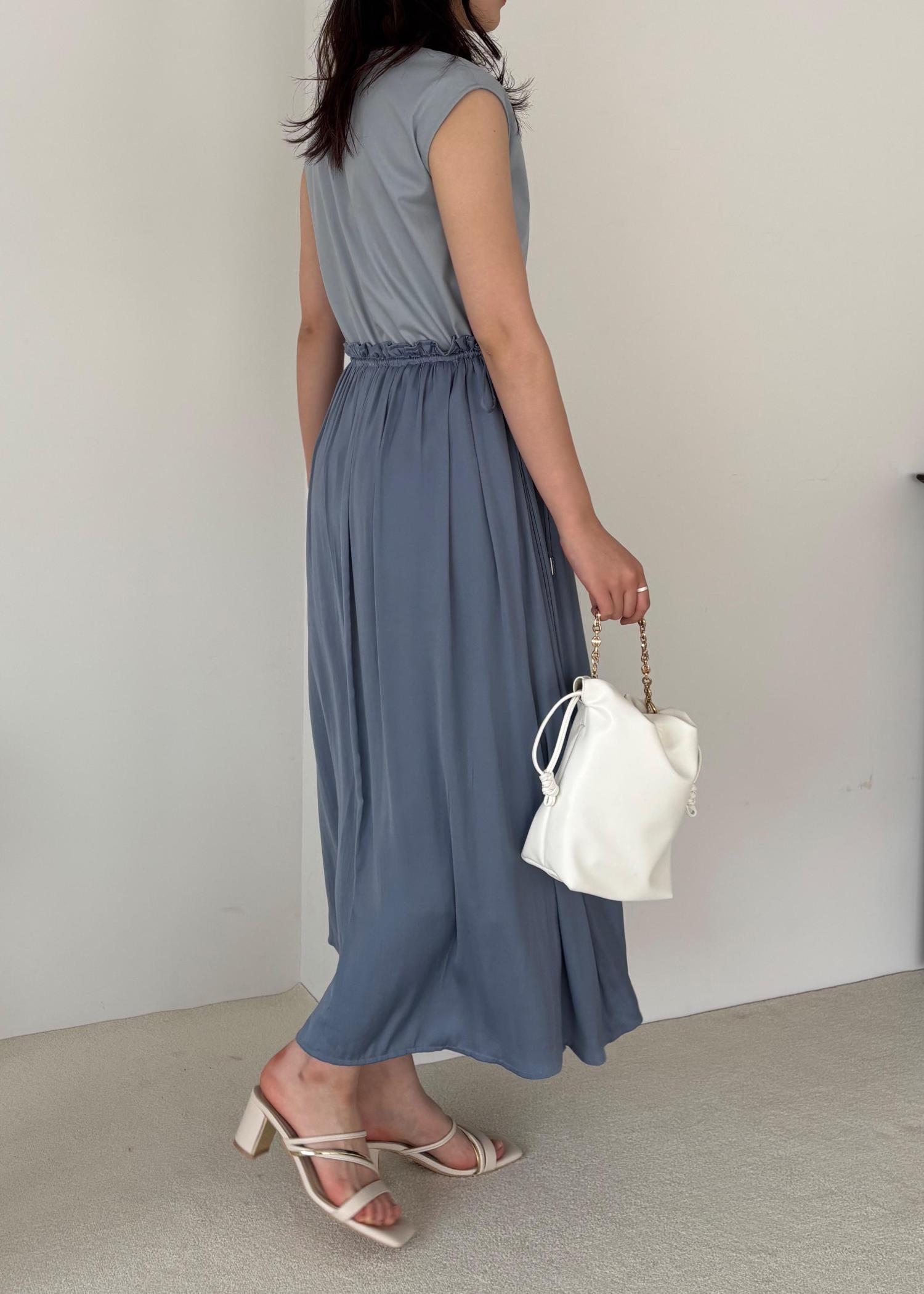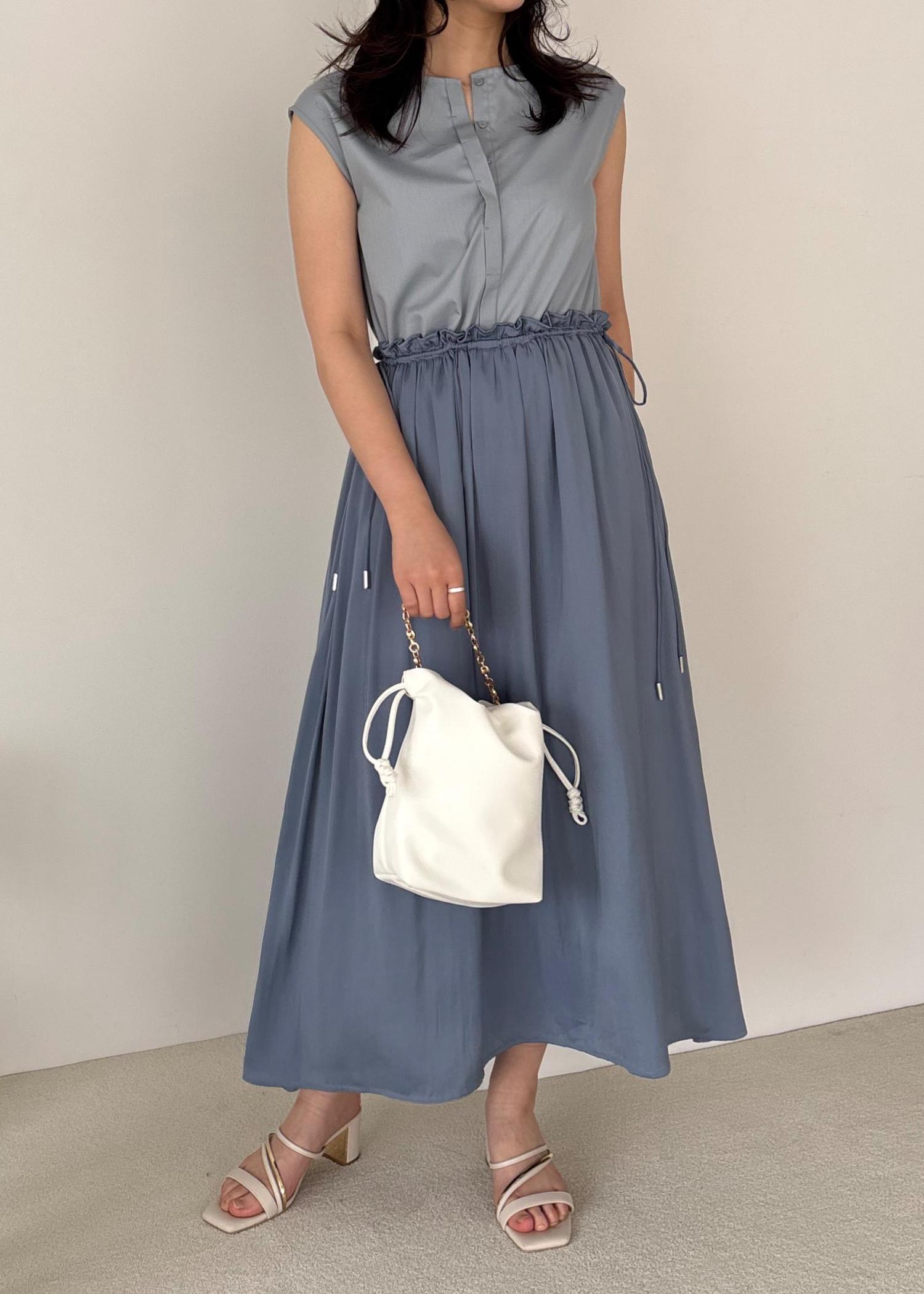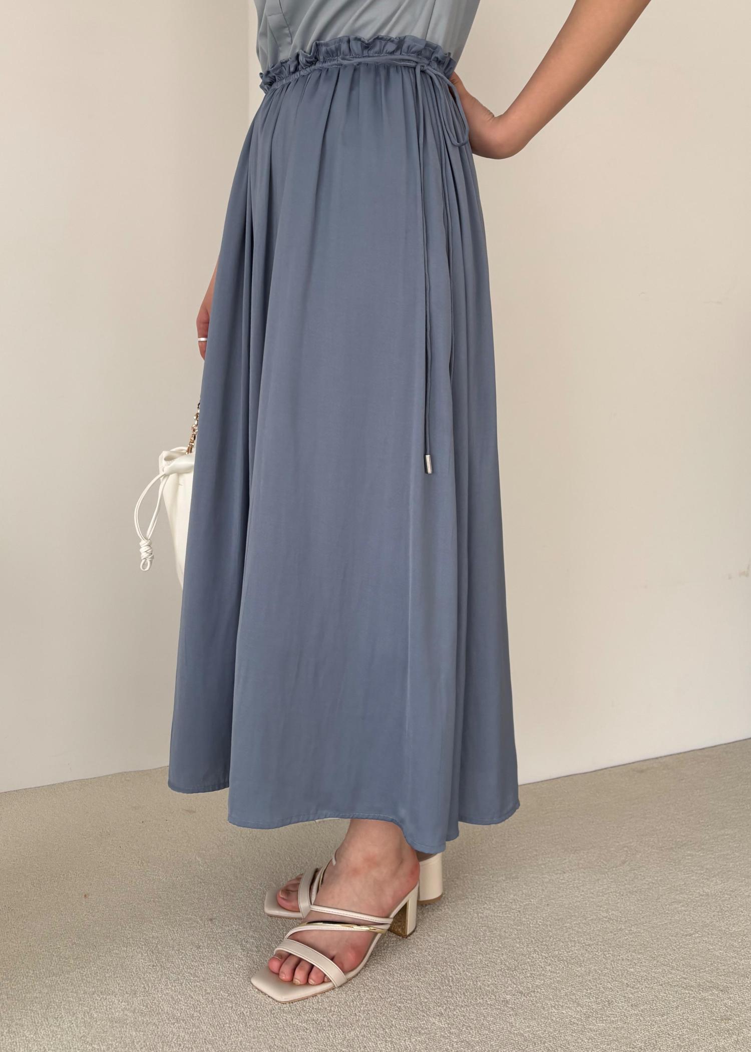 上下さらっとした素材感で肌あたりも良いです!スカート部分はとろみ感もあり女性らしい印象に。 -