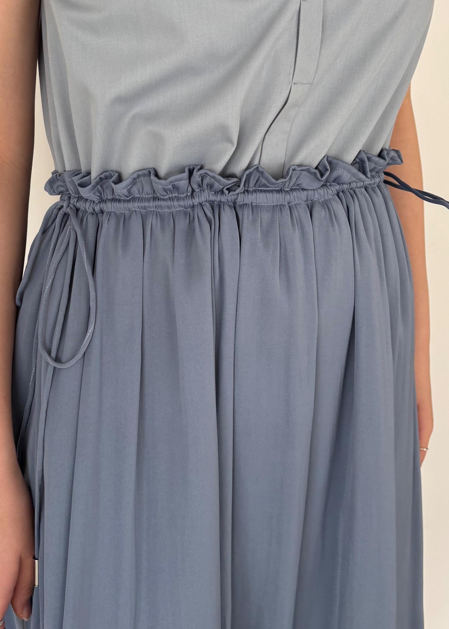 アウトレットVISウエストリボンドッキングワンピースサックス / F¥3,845レビュー165cmでふくらはぎを覆うくらいの丈感です。