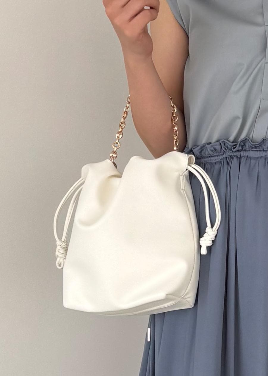 アウトレットVISチェーンハンドル2WAY巾着バッグオフホワイト / F¥3,460レビューゴールドのチェーンが華やかなバッグ。