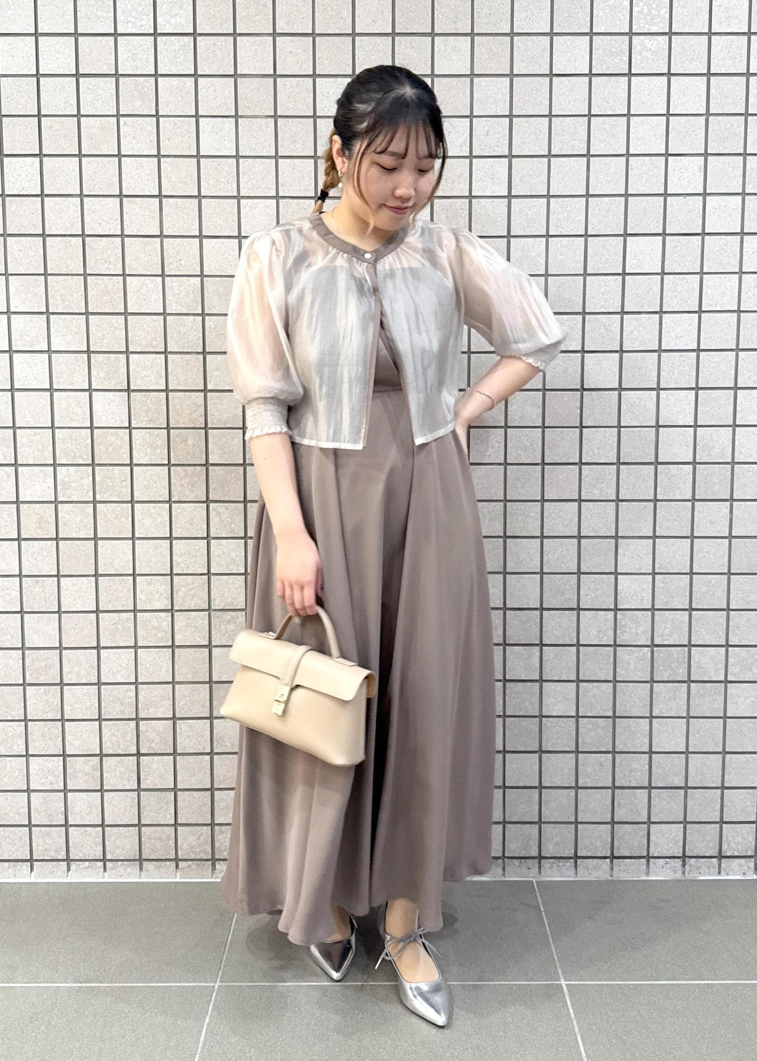 VIS【VIS DRESS】【3WAY】シアートップスセットキャミドレスダークブラウン系 / F¥15,180レビュー153cmの私ですが、くるぶしにかかるくらいの丈感でした。肩紐で長さ調節ができるので低身長さんも着れます!