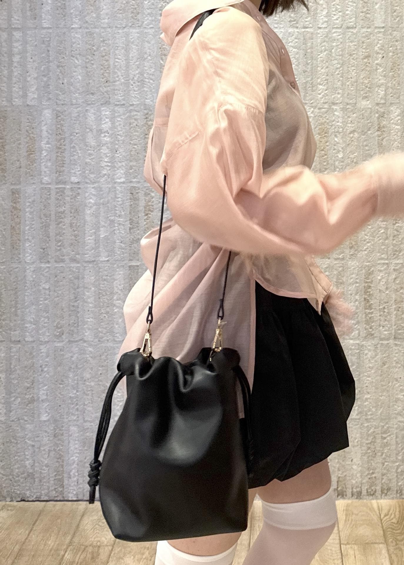 アウトレットVISチェーンハンドル2WAY巾着バッグブラック / F¥3,460レビューコンパクトな見た目なのに500mlとペットボトルがはいるバックです!