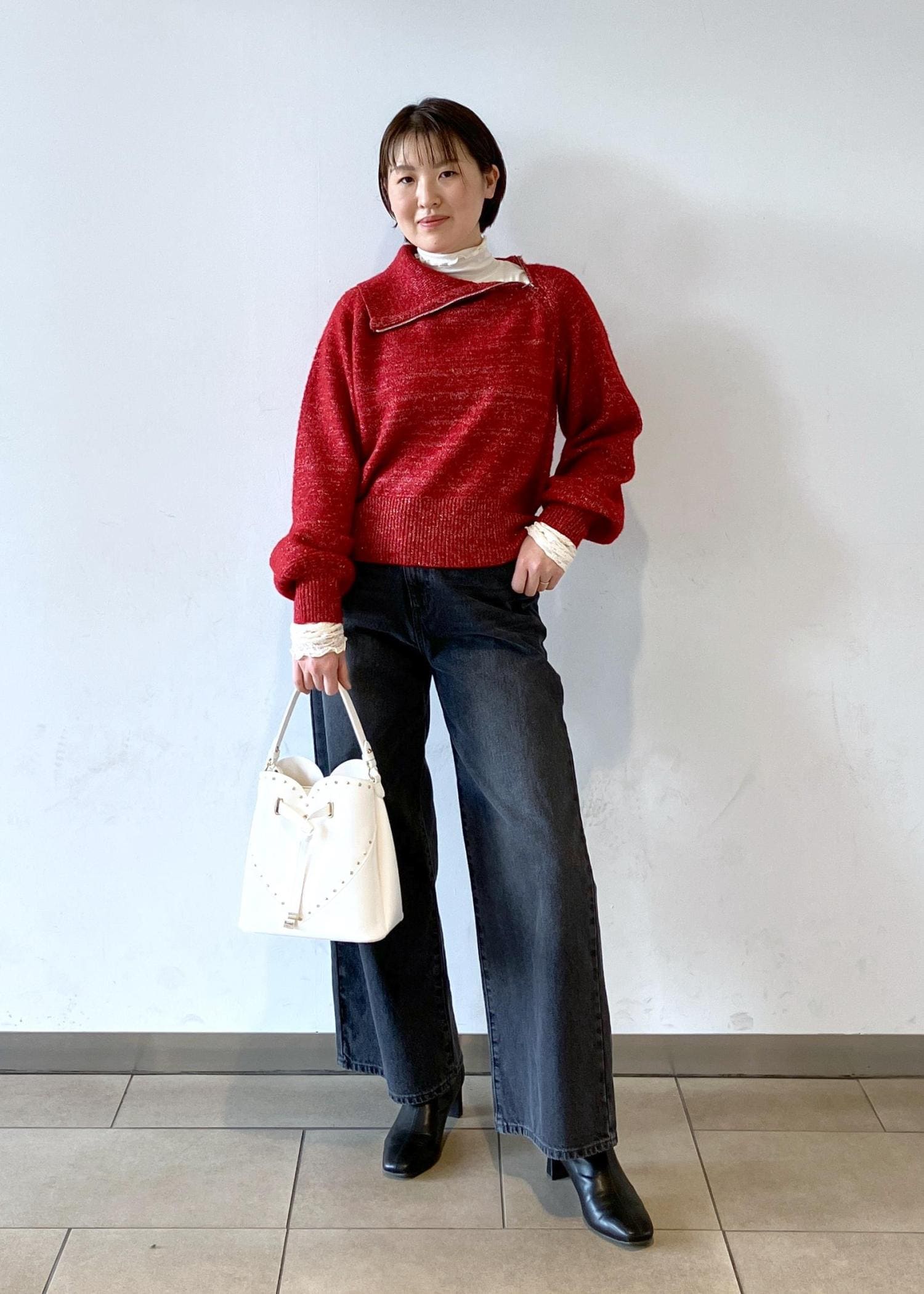 スカートはふわっとしたシルエットが綺麗で、ウエストを紐で調節できるので低身長の方でも調節しやすいのが安心です◎