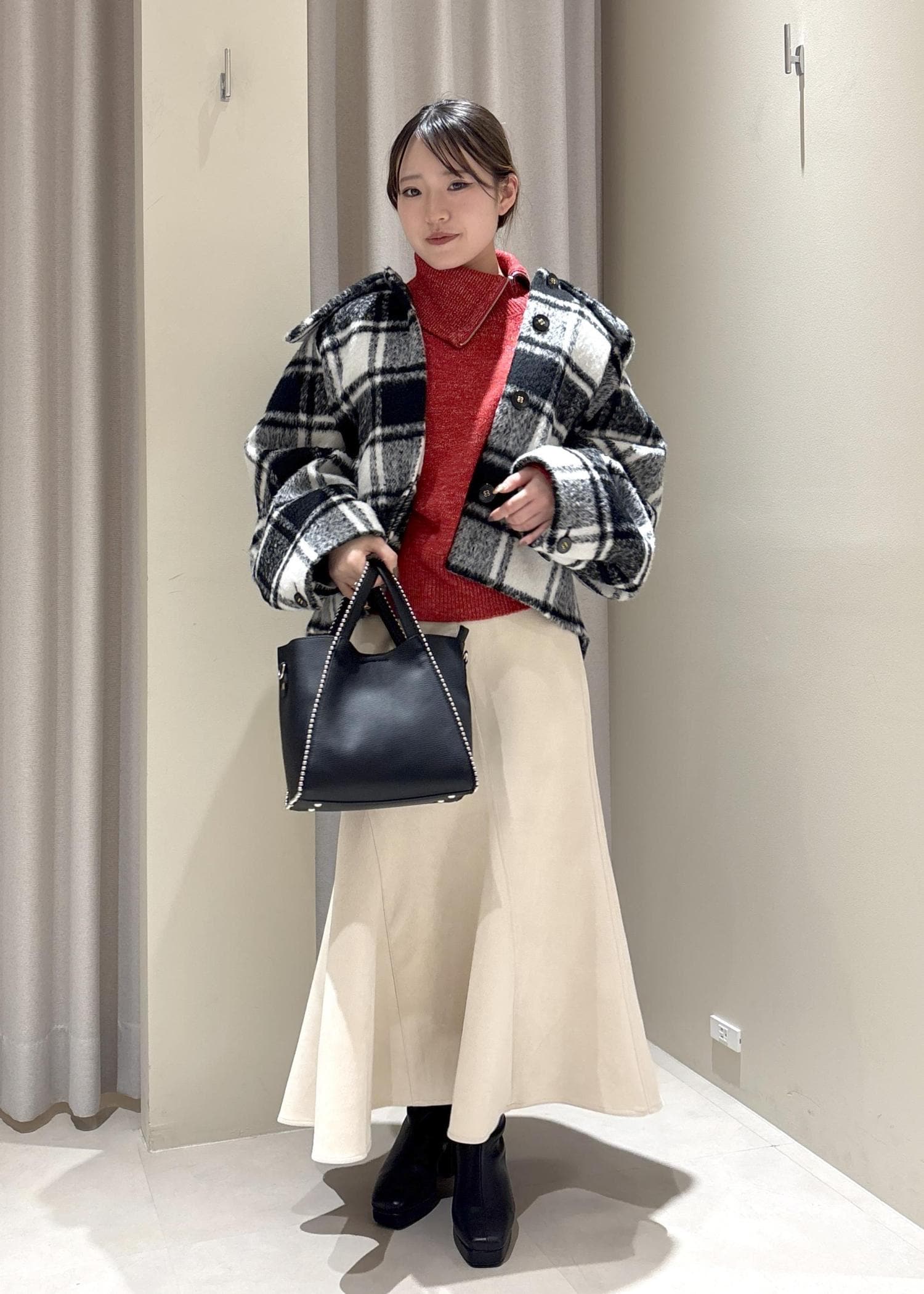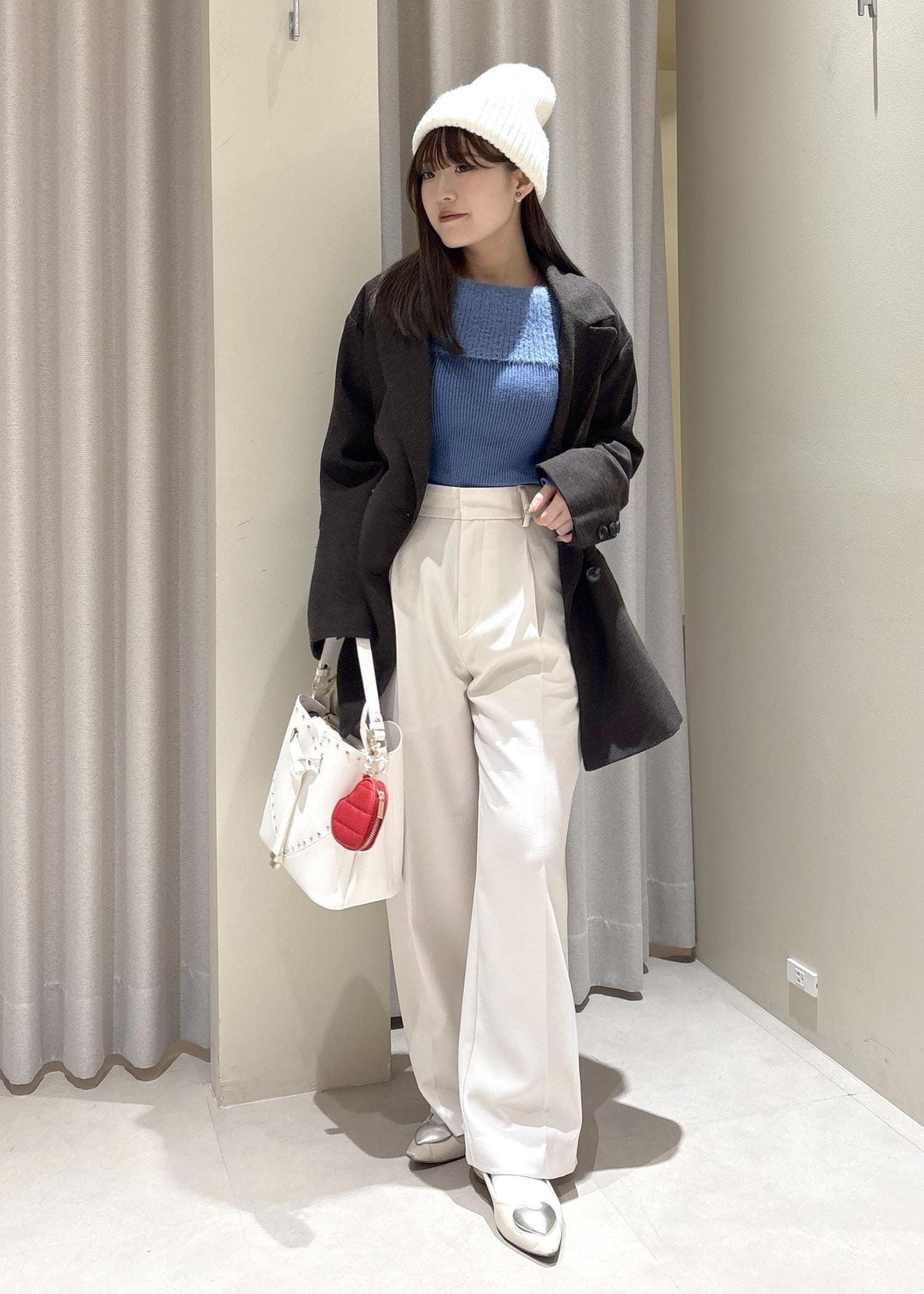シンプルなトップスに重ねるだけでオシャレに見えるので、おすすめです。 -