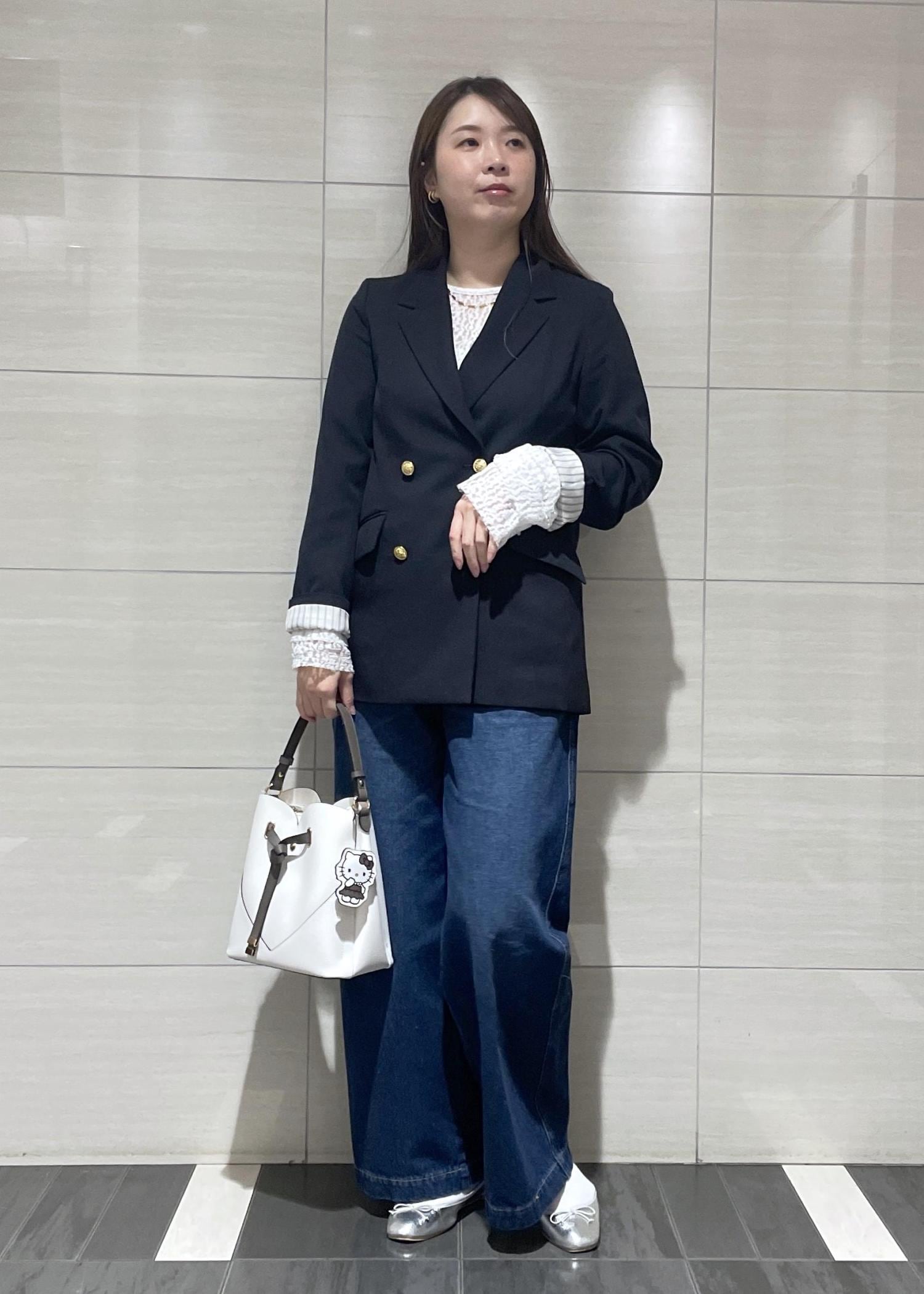 ブラウス×ジャケットのきれいめコーデにデニムを合わせて少しカジュアル感をだしました。