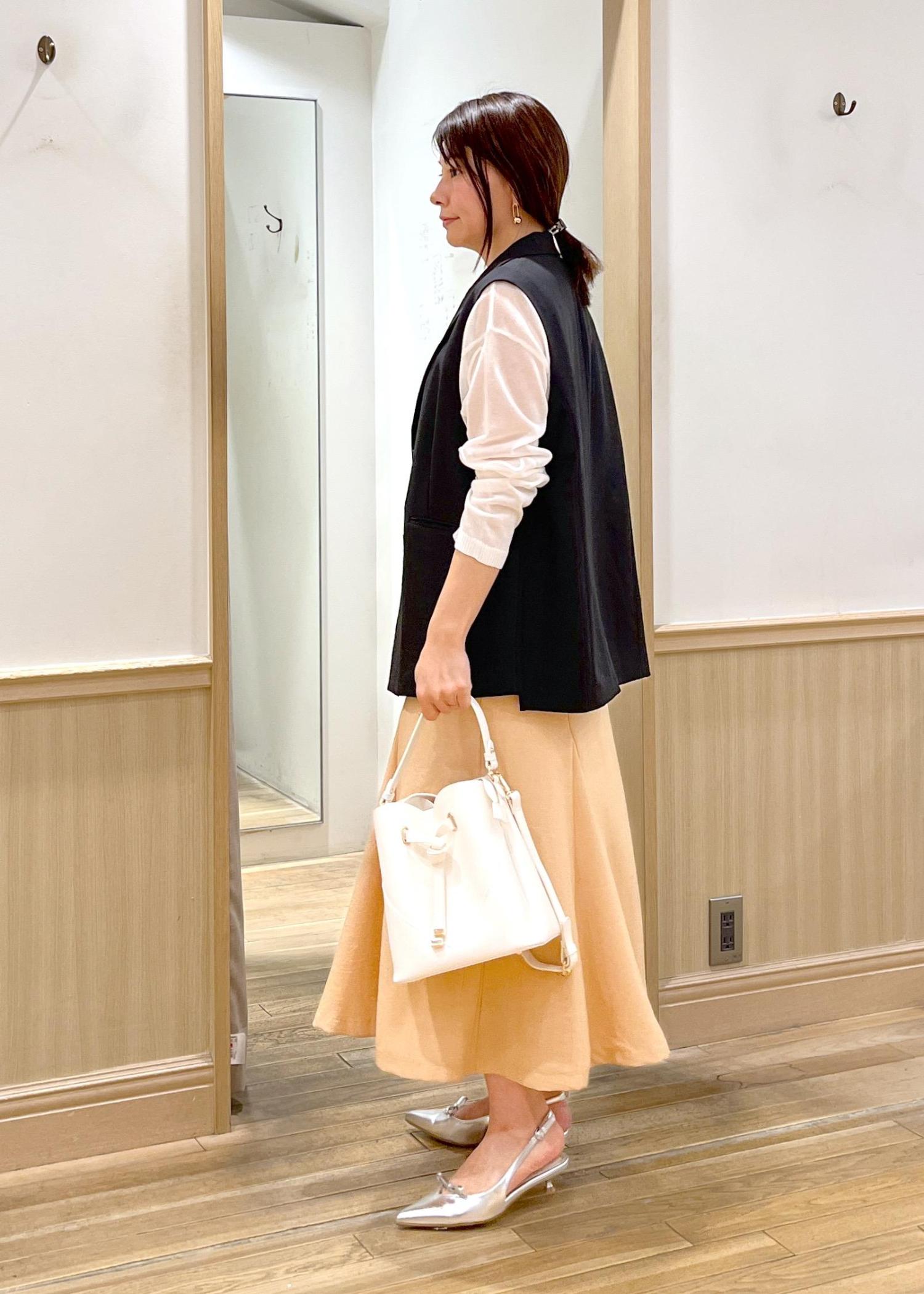 キナリはどんなコーディネートにも馴染みやすいカラーで馴染みます。涼しげにも見えるのでこれからの季節にもピッタリです。