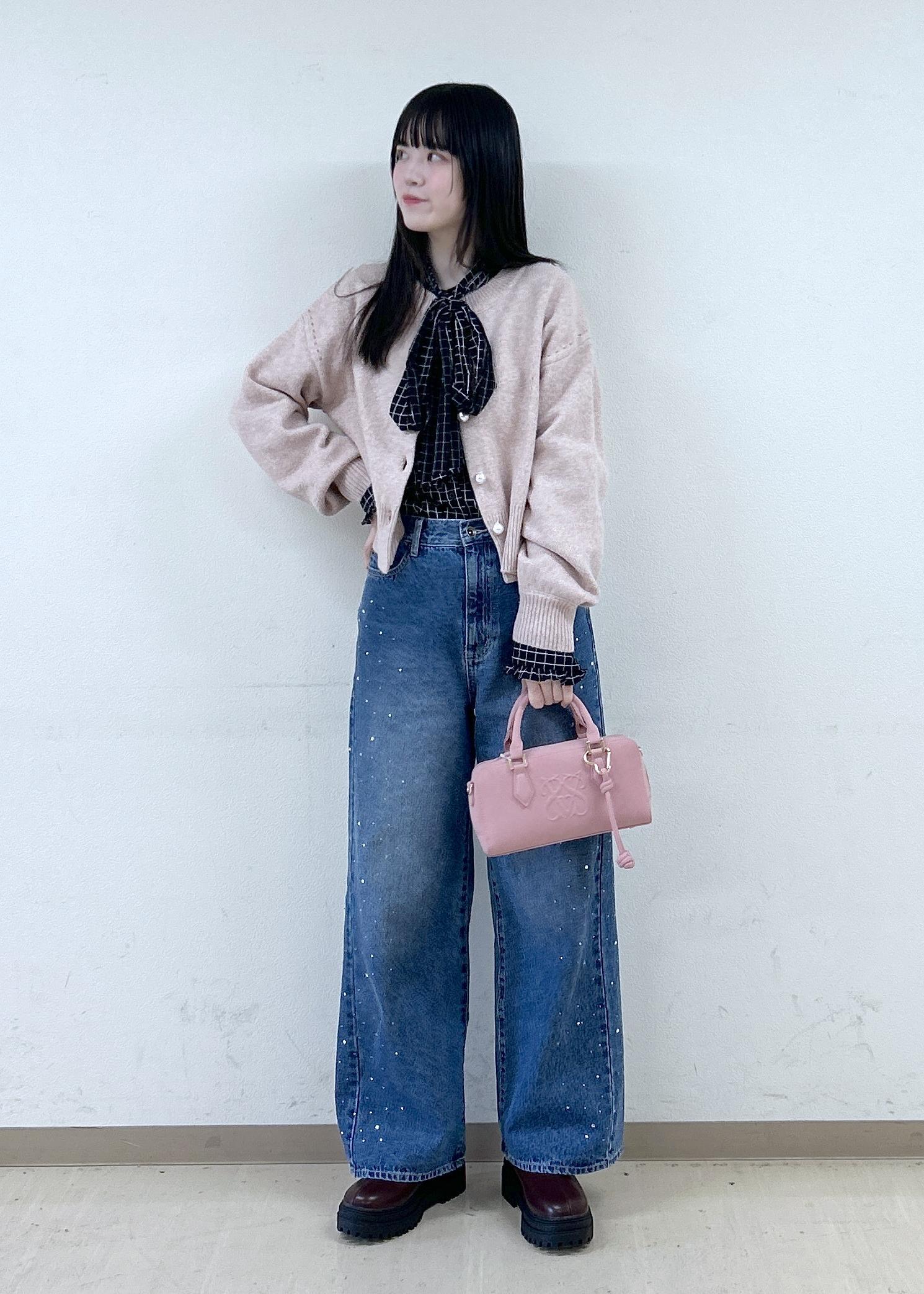 丈感はミニ丈になっていて、パンツ、スカートやワンピースの羽織としても使いやすい丈感でした!