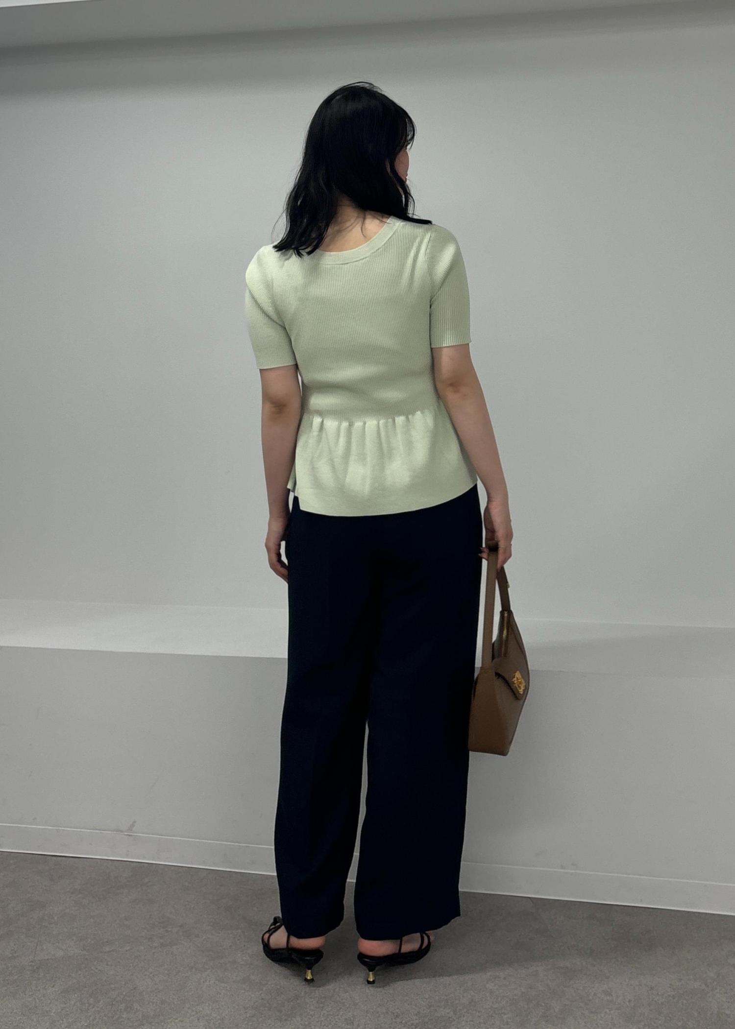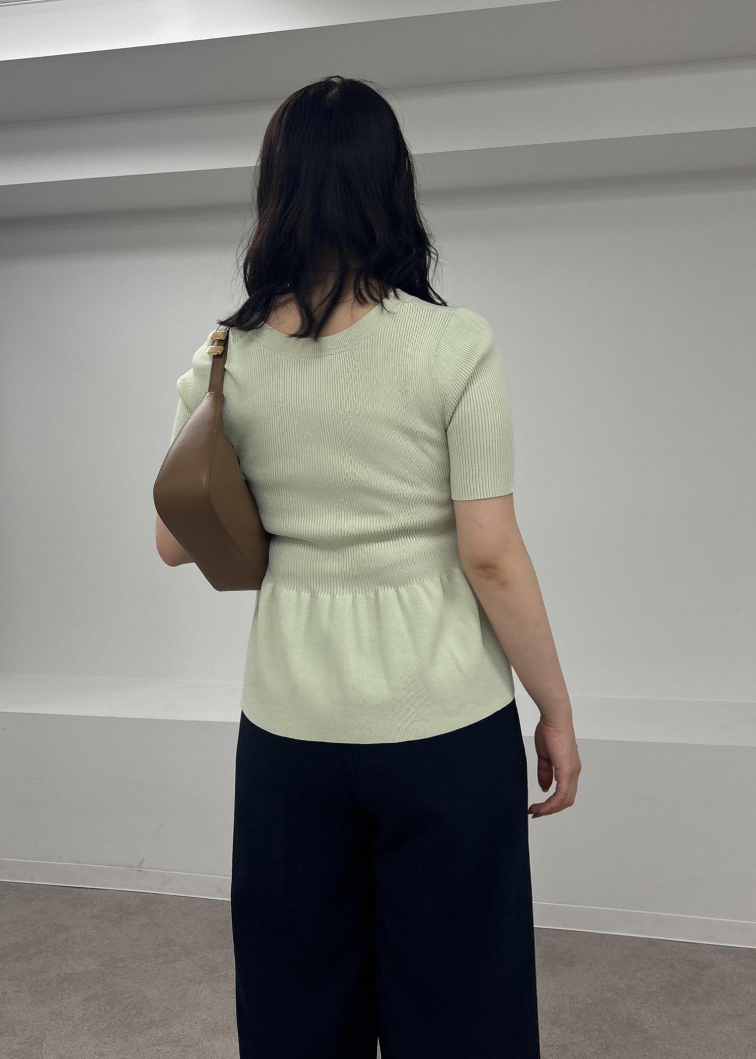 綺麗めなぺプラムデザインのトップスは細目なリブ素材、締め付け感のない首周り、腰回りが程よくカバーしてくれる着丈、気映えもするので着やすさ◎