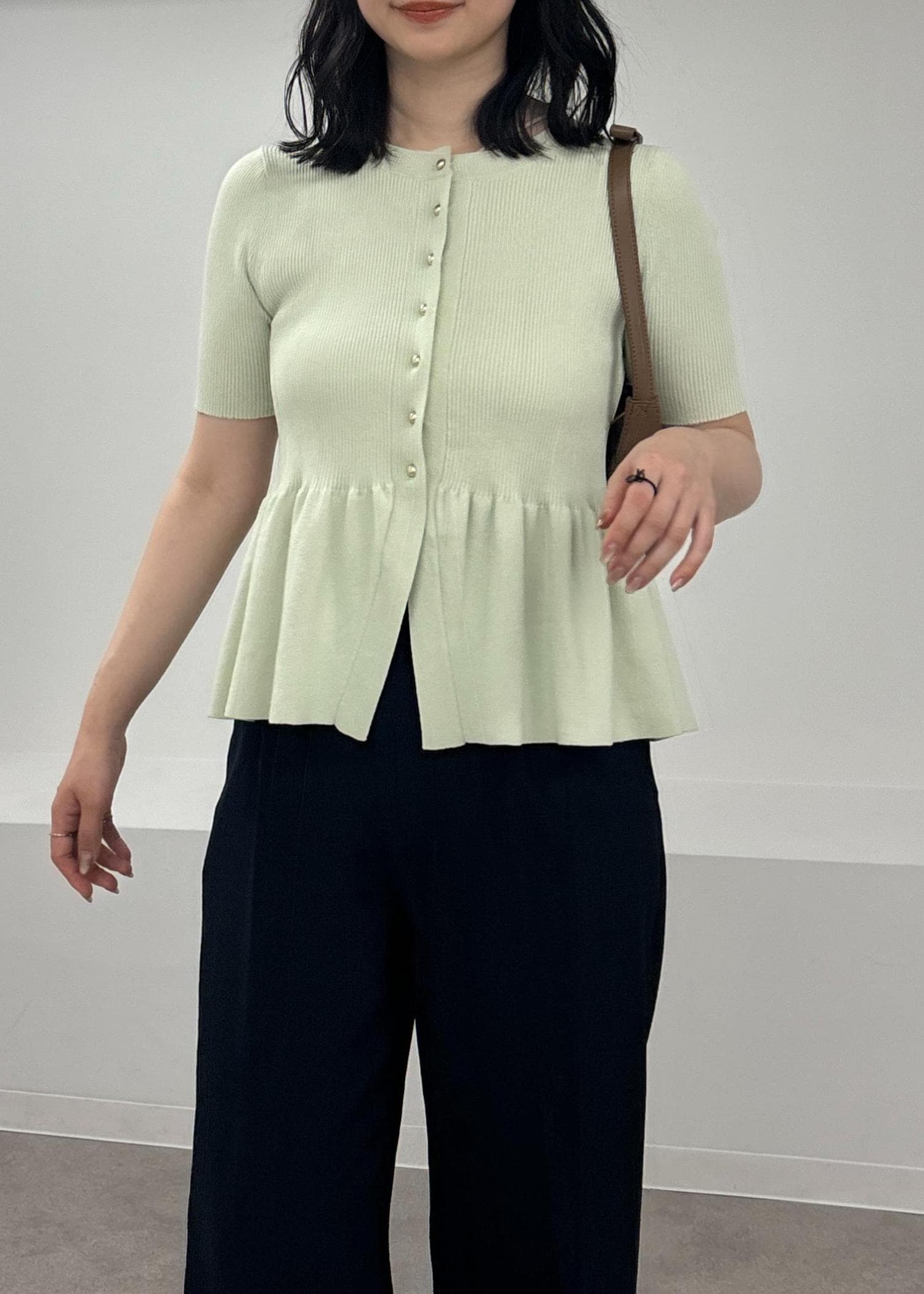 【アンチピリング】ペプラムハーフスリーブニットカーディガン