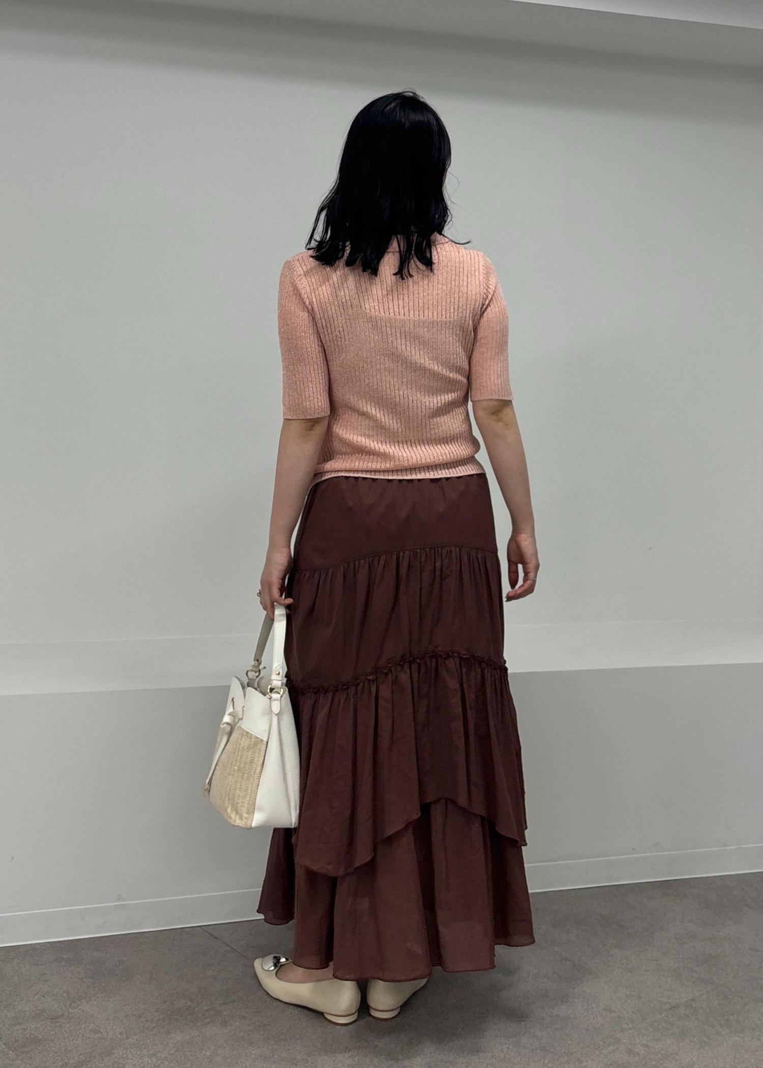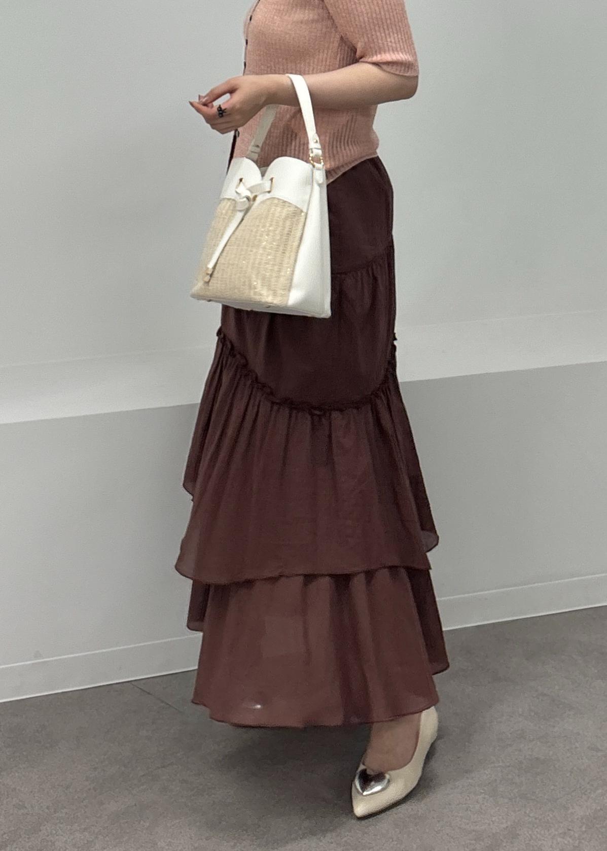 アウトレットVISボイルティアードスカートダークブラウン / F¥3,955レビュー軽やかなコットン素材が夏にうれしいサラッとしていて、デザインのティアードが動きが出るたび女性らしいスカートに◎