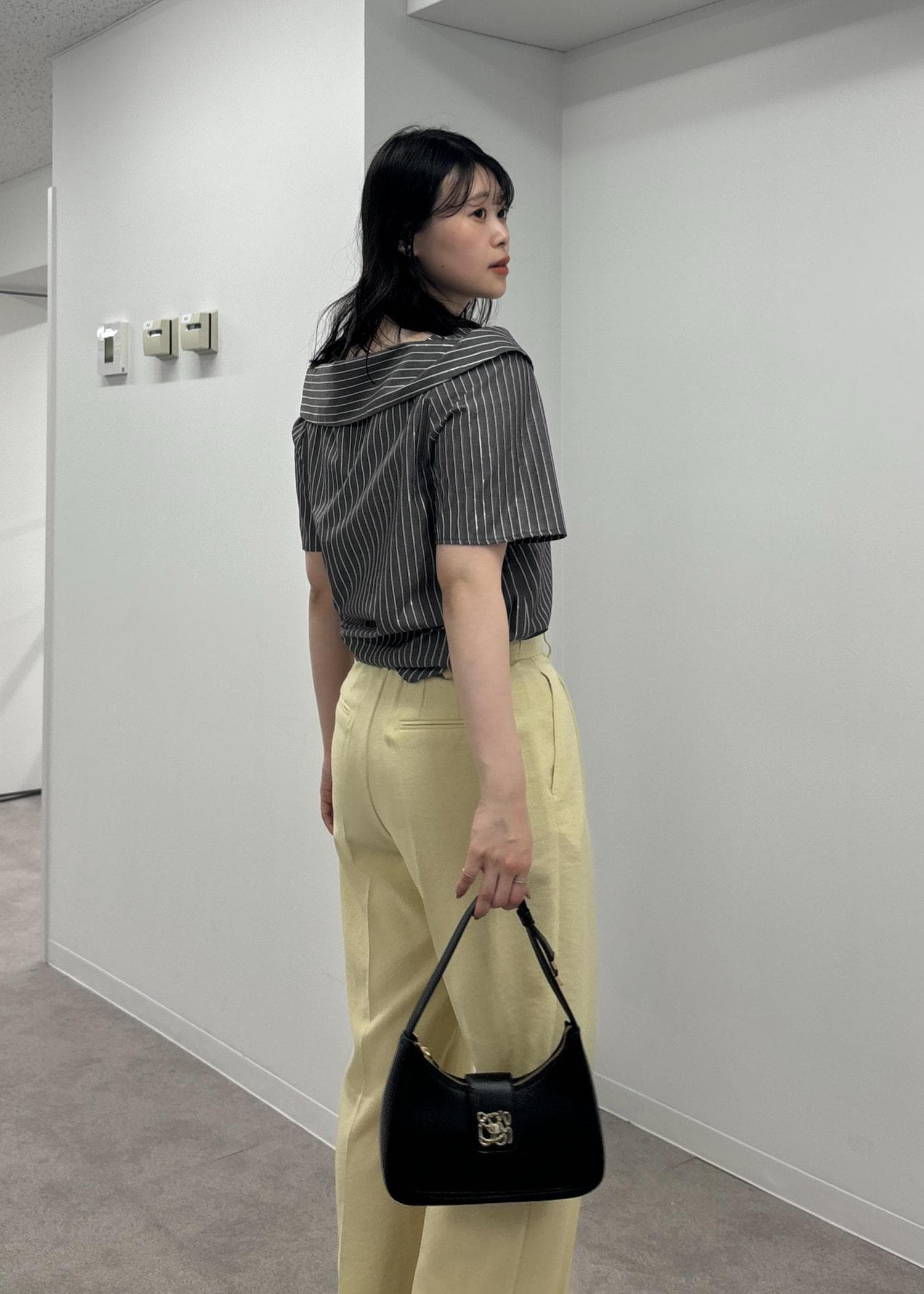 スクエアネックなので肌見えもさりげなく、生地感はやや張りがありきちんと見えもしてくれるのでオフィス用にも活躍します。 -