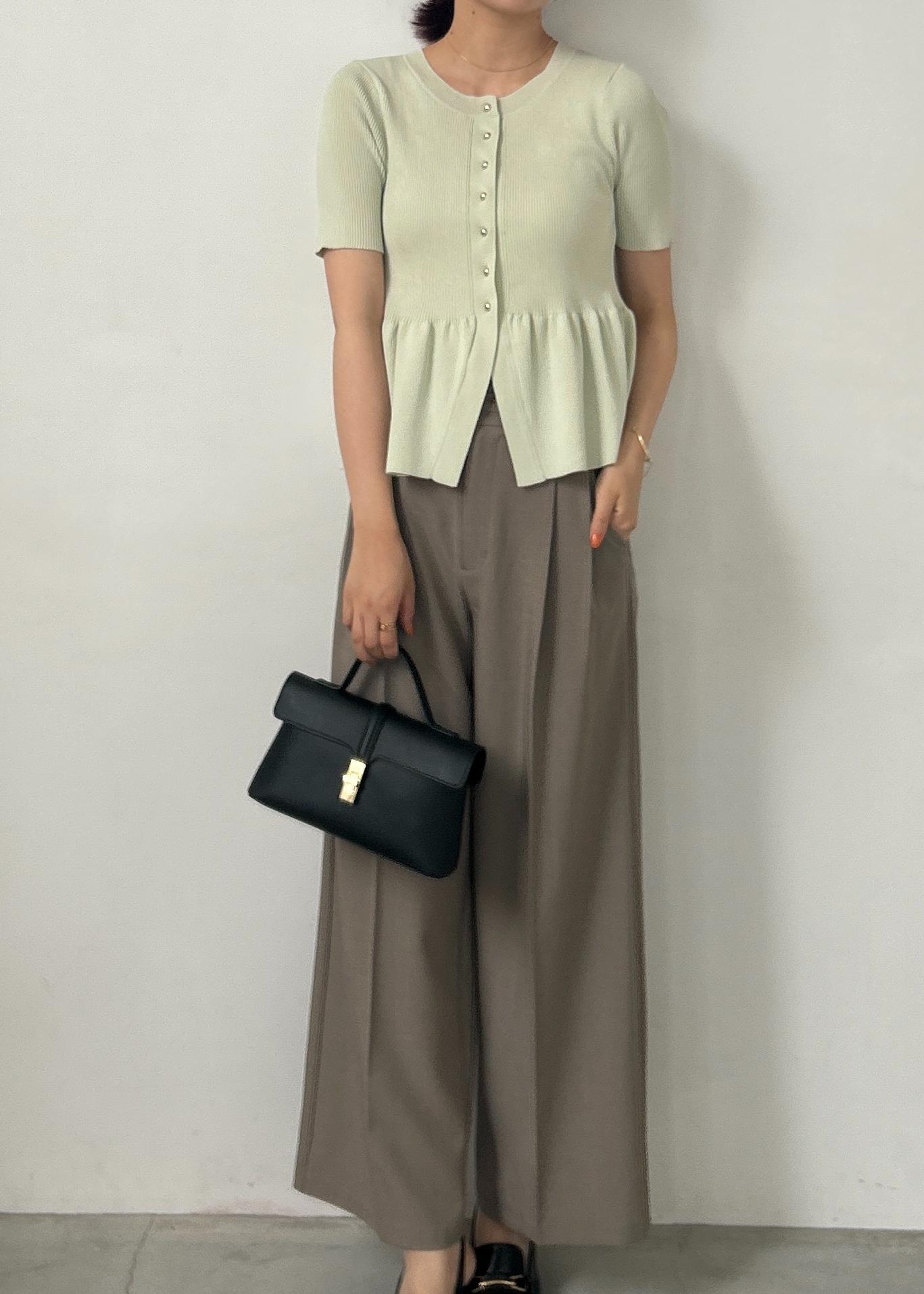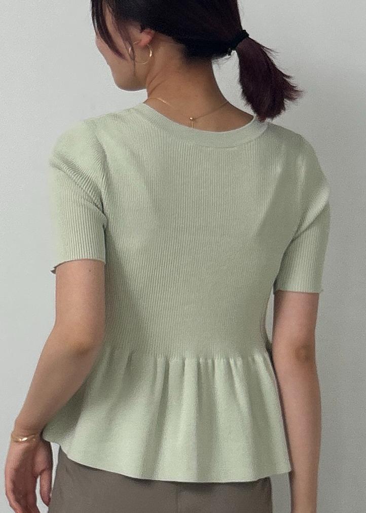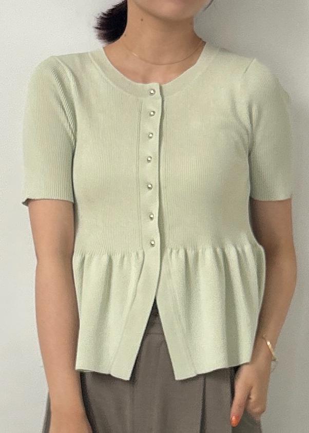 アウトレットVIS【アンチピリング】ペプラムハーフスリーブニットカーディガンライトグリーン / F¥4,391レビュー柔らかくて薄手のニット素材です!