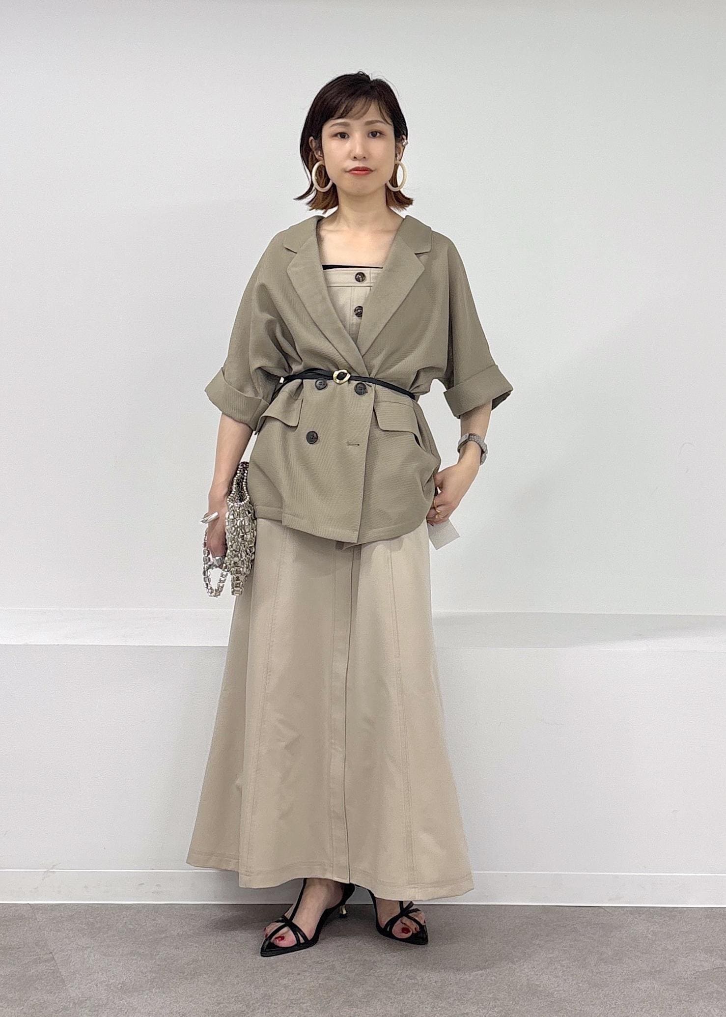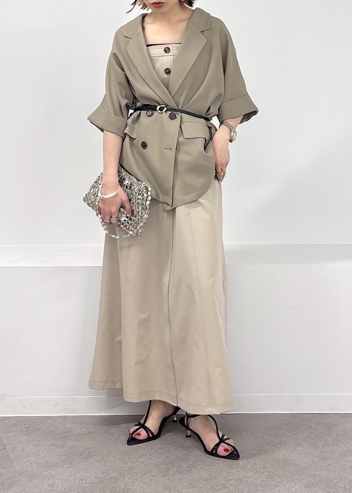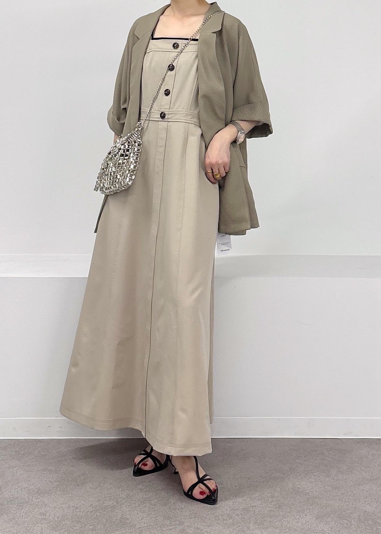 POLO BCS | VIS別注ワンピースをメインに、メッシュジャケットと合わせた淡色スタイル♪ワンピースは胸下切り替えなので、ゆるっとしたジャケットの相性◎ヒールサンダル、ビーズバックと少しレディ要素を足しました。春夏のお出かけにぴったりな大人カジュアルコーデ。