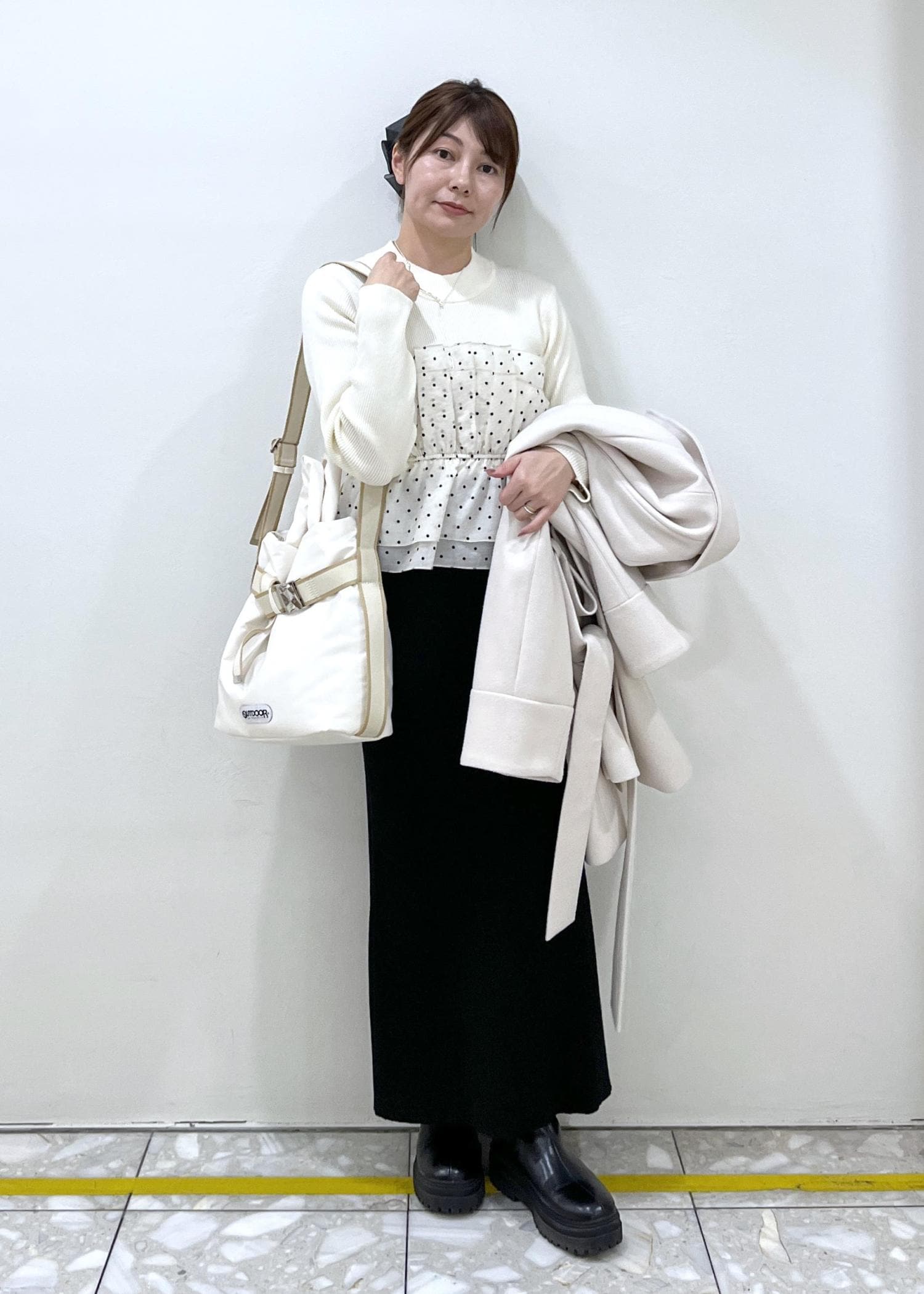 着丈はスッキリ目なので、長めが好きな方はリボンデザインのトップス も合わせてオススメです。 -