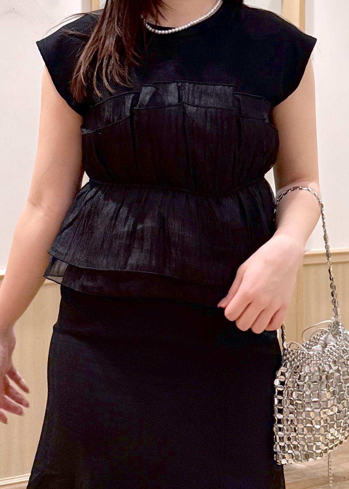 VIS旬なレイヤードスタイルが叶う!ビスチェドッキングフレンチスリーブプルオーバー【洗える】ブラック系 / F¥5,489レビューAWで大人気だったらトップス!!