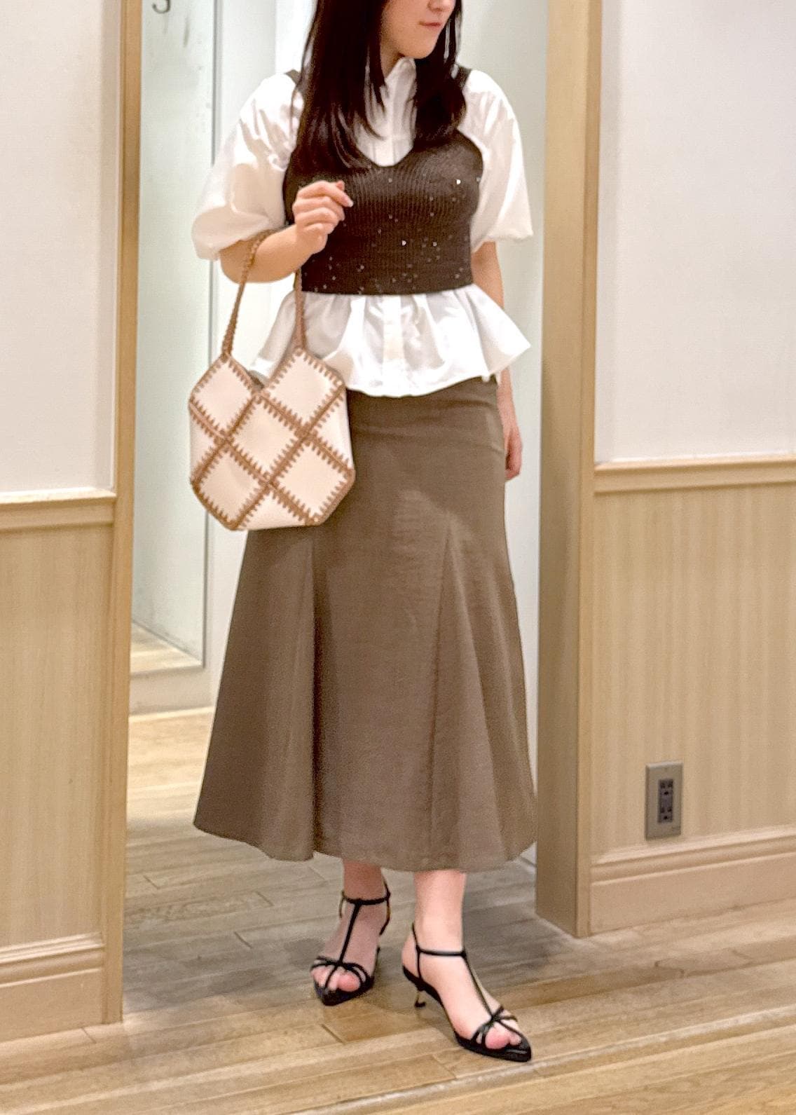 VIS【新色追加】【美easy】リネンライクマーメイドスカート【洗える】【セットアップ対応】カーキ系 / M¥5,489レビュー160㎝Mサイズ着用です