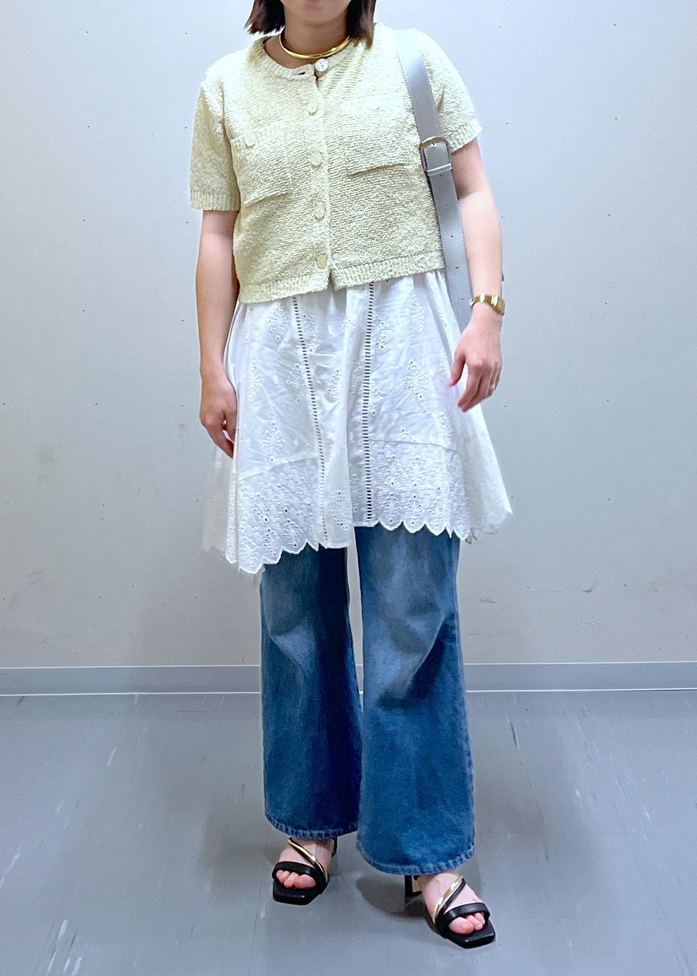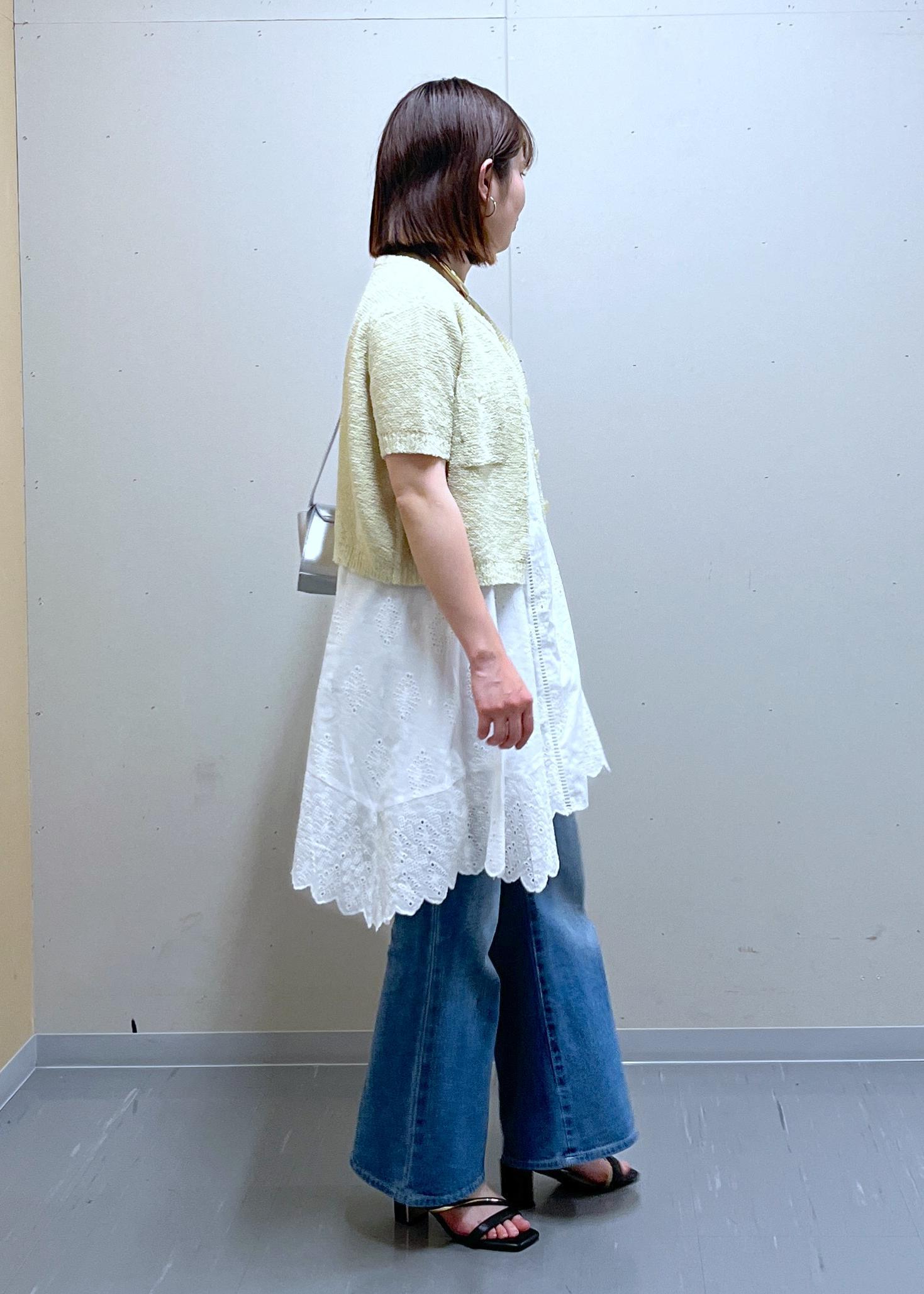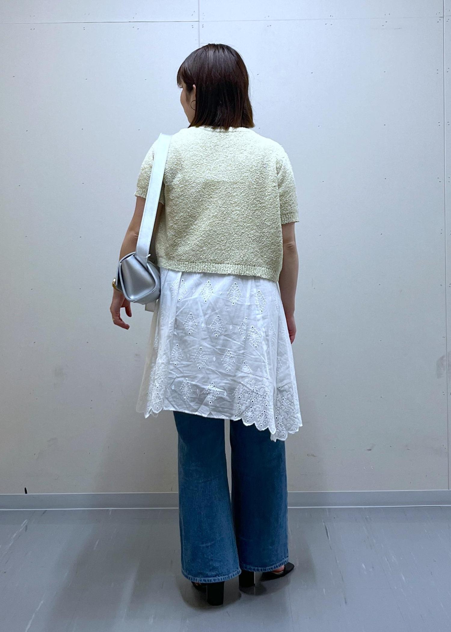 アウトレットVISブークレコンパクトカーディガンライトグリーン / F¥3,951レビュー155cm着用、着丈はおへそから2〜3cm下あたりまでくる丈感で、低身長さんでもバランスよく着用できます♡