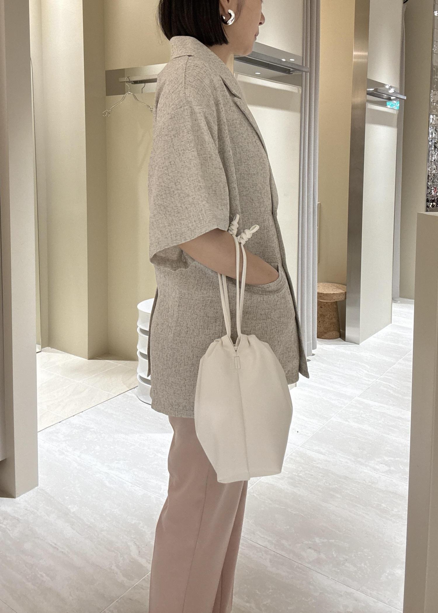 小ぶりながら、バッグ自体が軽いのでしっかり荷物入れられますし、巾着タイプで口を閉められるのが安心です◎ -