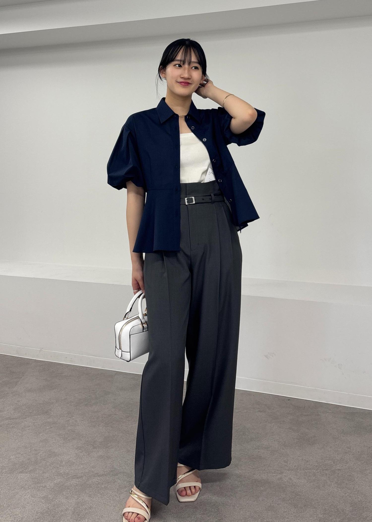 ワイドシルエットですが、広すぎないラインとベルトで綺麗見えもします! -