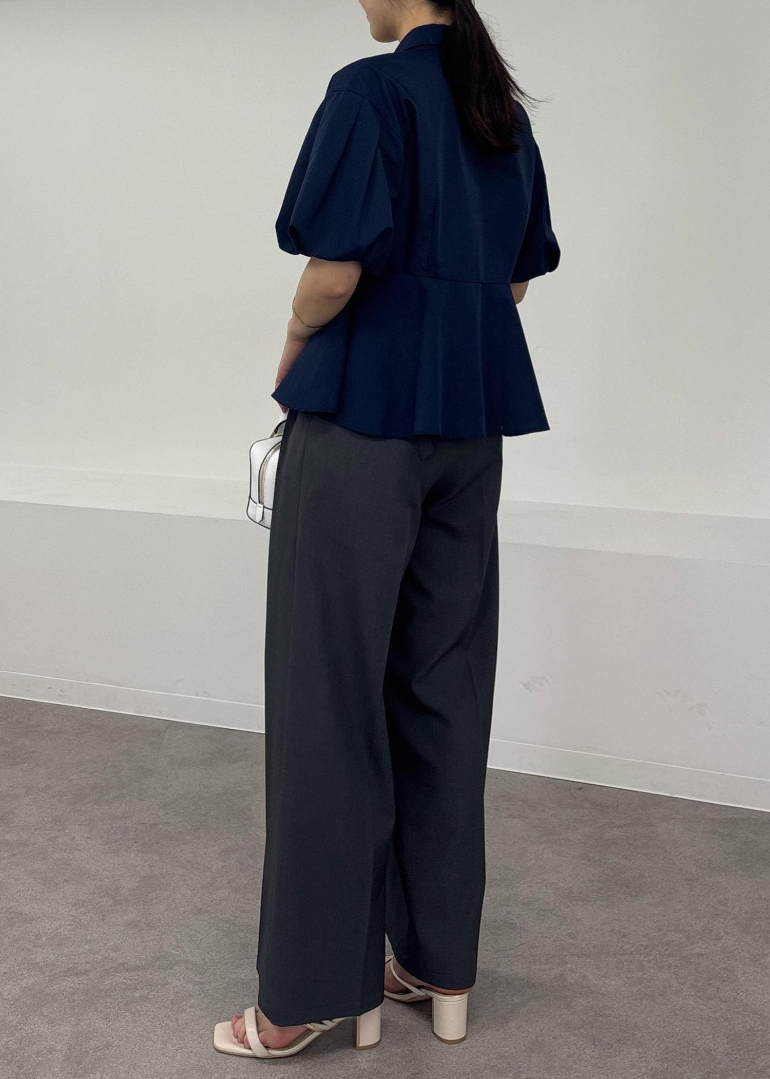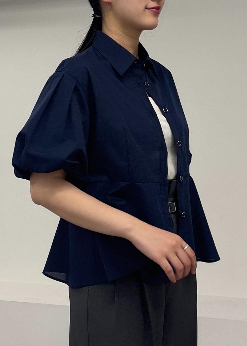 アウトレットVISバルーンスリーブペプラムシャツ/通勤対応ネイビー / F¥3,457レビュー165cmで腰が隠れる丈感です。