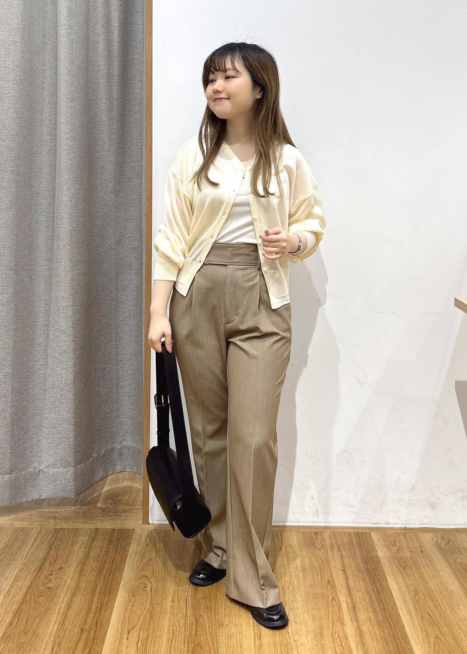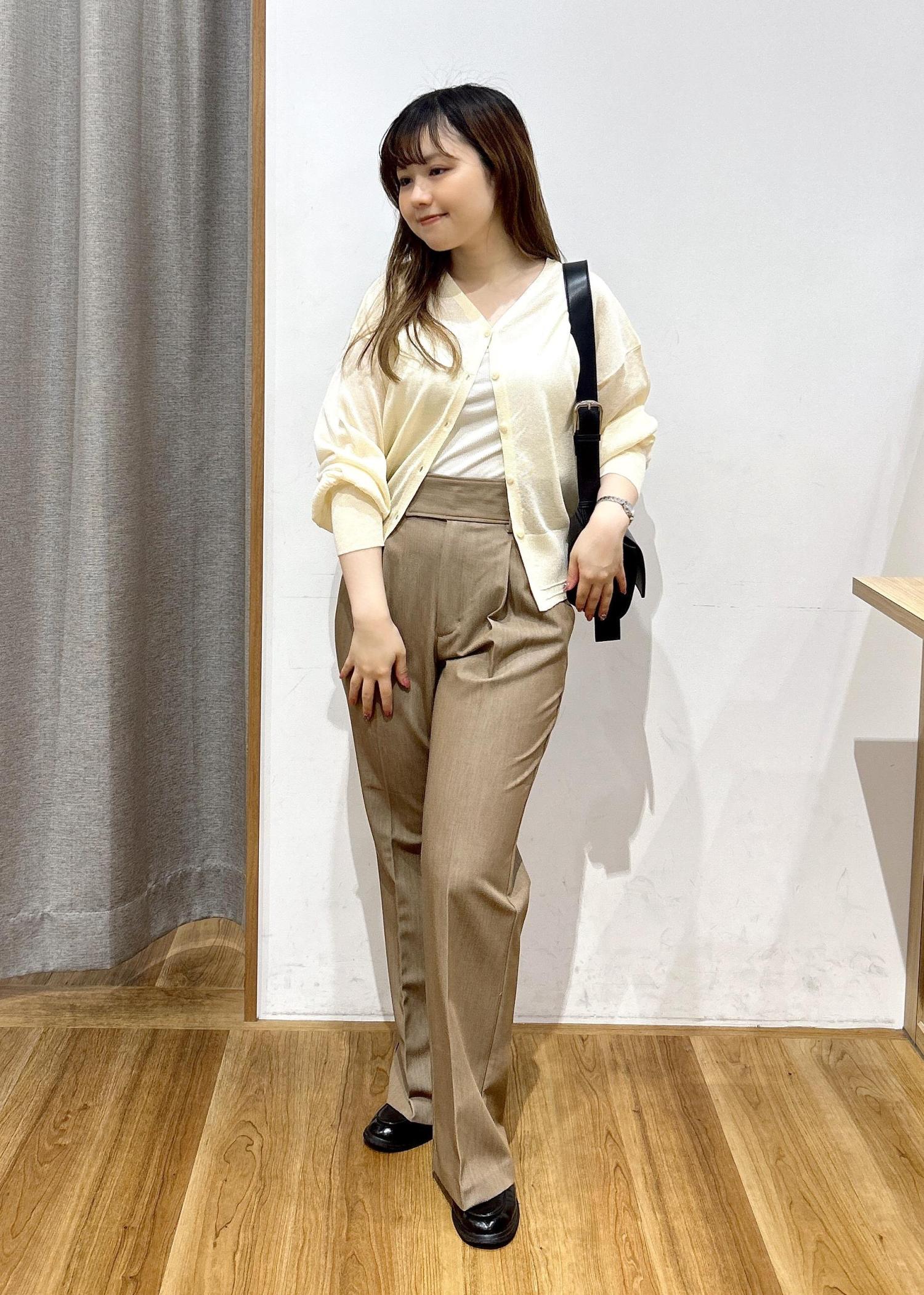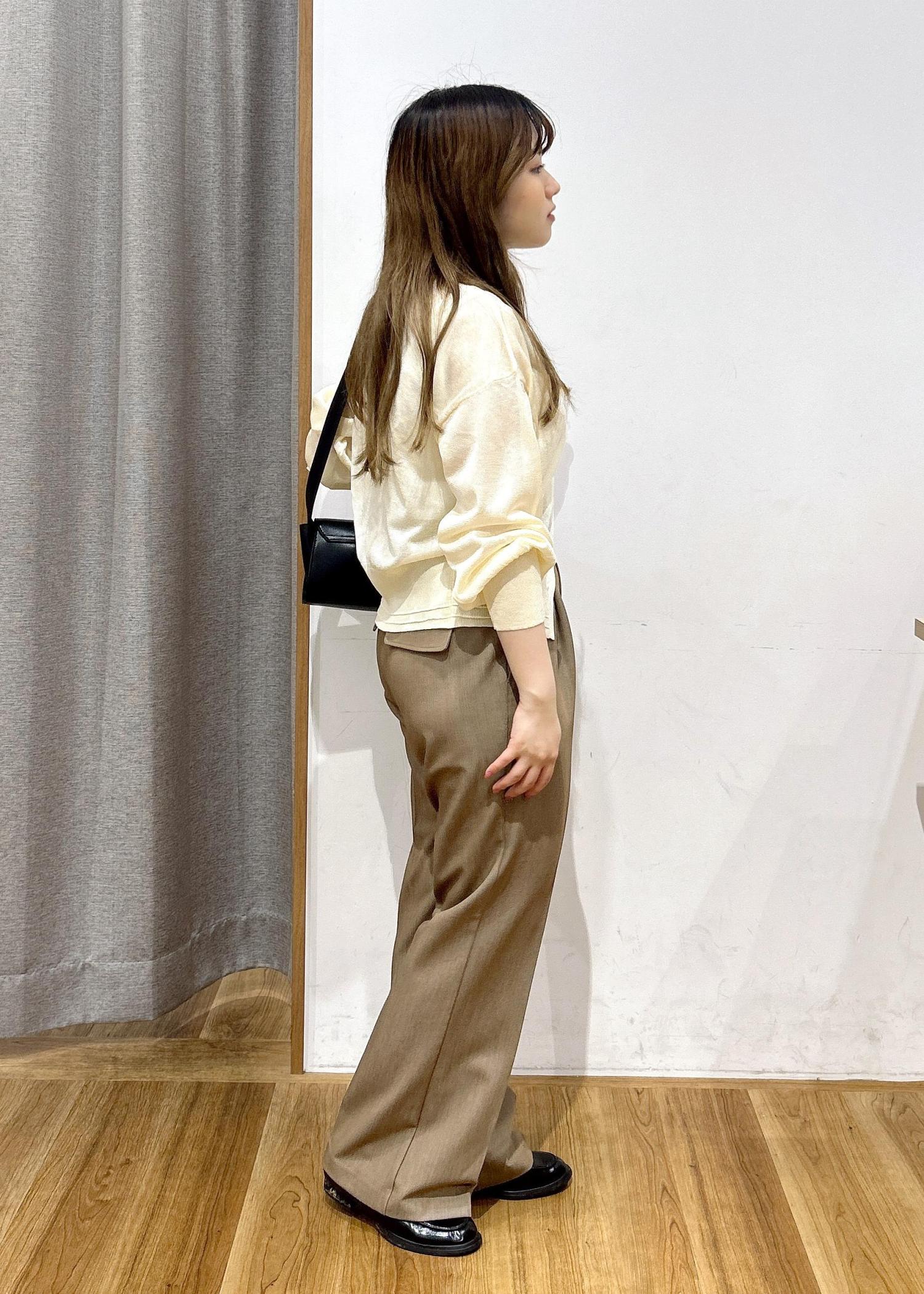 胸元が少しキツく、ボタンを一番下まで留めることはできなかったのですが、Vネックがデコルテを華奢に見せてくれるのでとても綺麗なスタイリングになりました! -