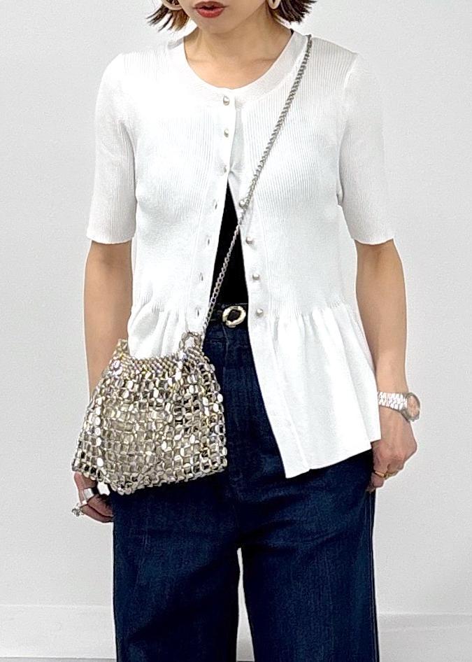 アウトレットVIS【アンチピリング】ペプラムハーフスリーブニットカーディガンオフホワイト / F¥4,391レビューペプラムシルエットが女性らしいサマーニットカーディガン♪さらっとした着心地、柔らかく伸縮性があるのでとても着やすいです。ちくちく感も感じません◎
