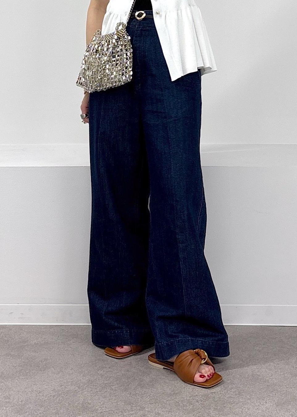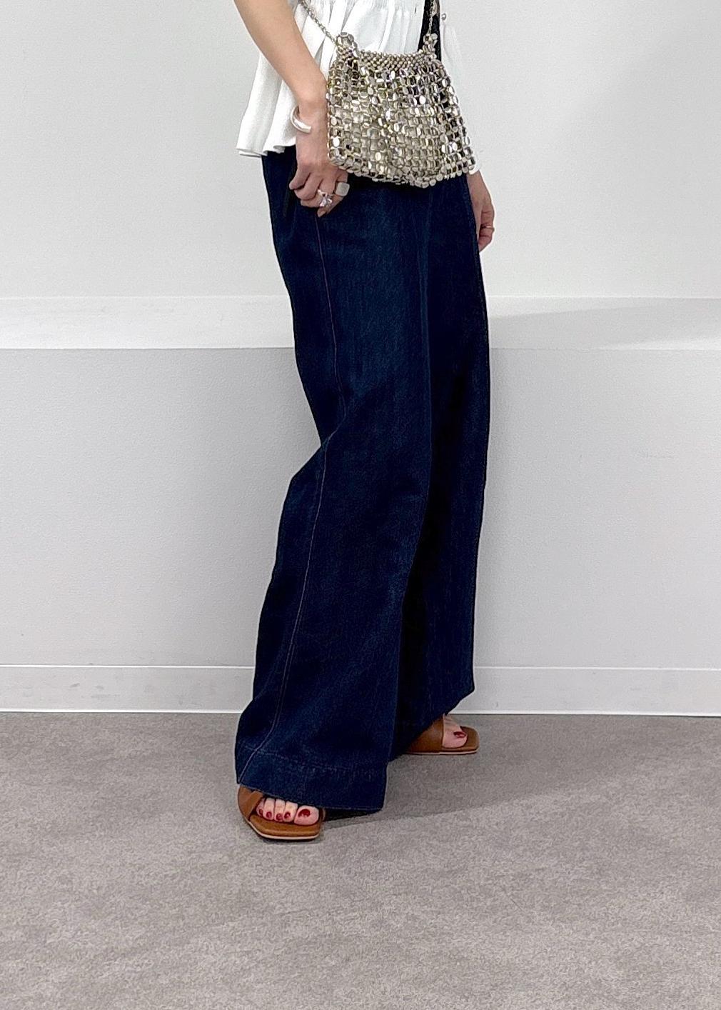 アウトレットVISグリッターワイドデニムパンツブルー系 / S¥5,339レビューキラキラグリッターのデザインが大人可愛いデニム♪柔らかなデニム素材を使用しているので、リラックスして着れます。定番のワイドパンツのシルエットですが、ラメを織り込んだデザインが気分を変えてくれるデニムです◎154cmでSサイズを着用、全体的にゆったりめ、着丈は足首が隠れる長さでした。