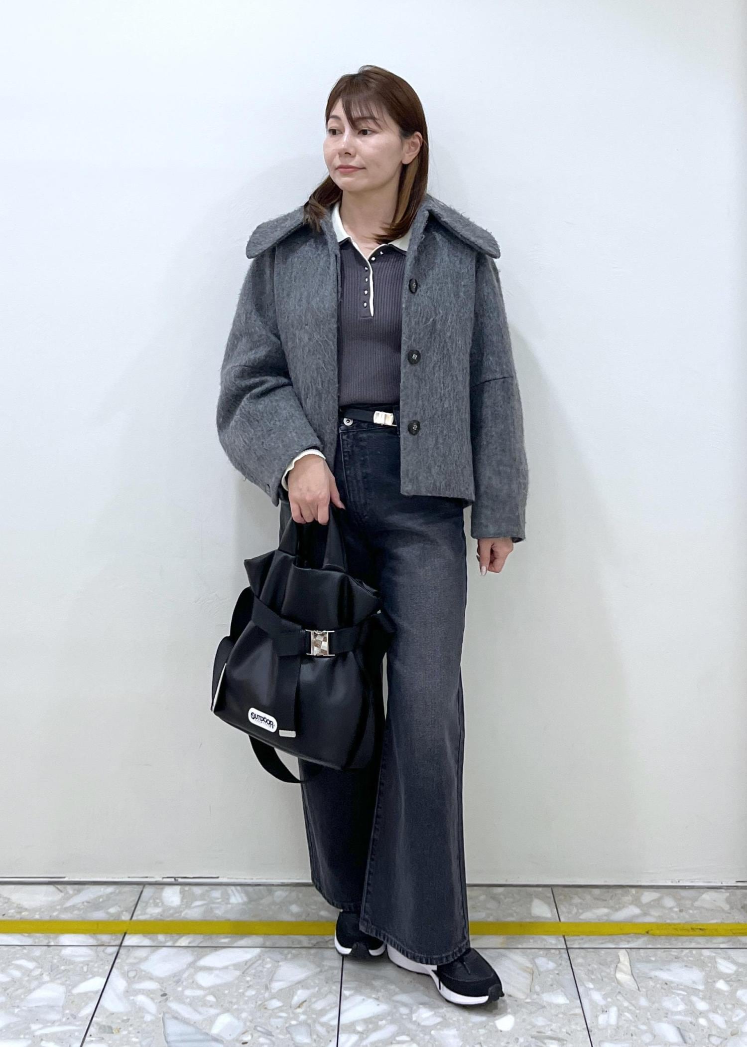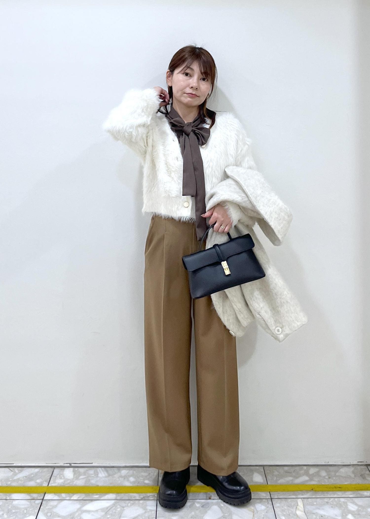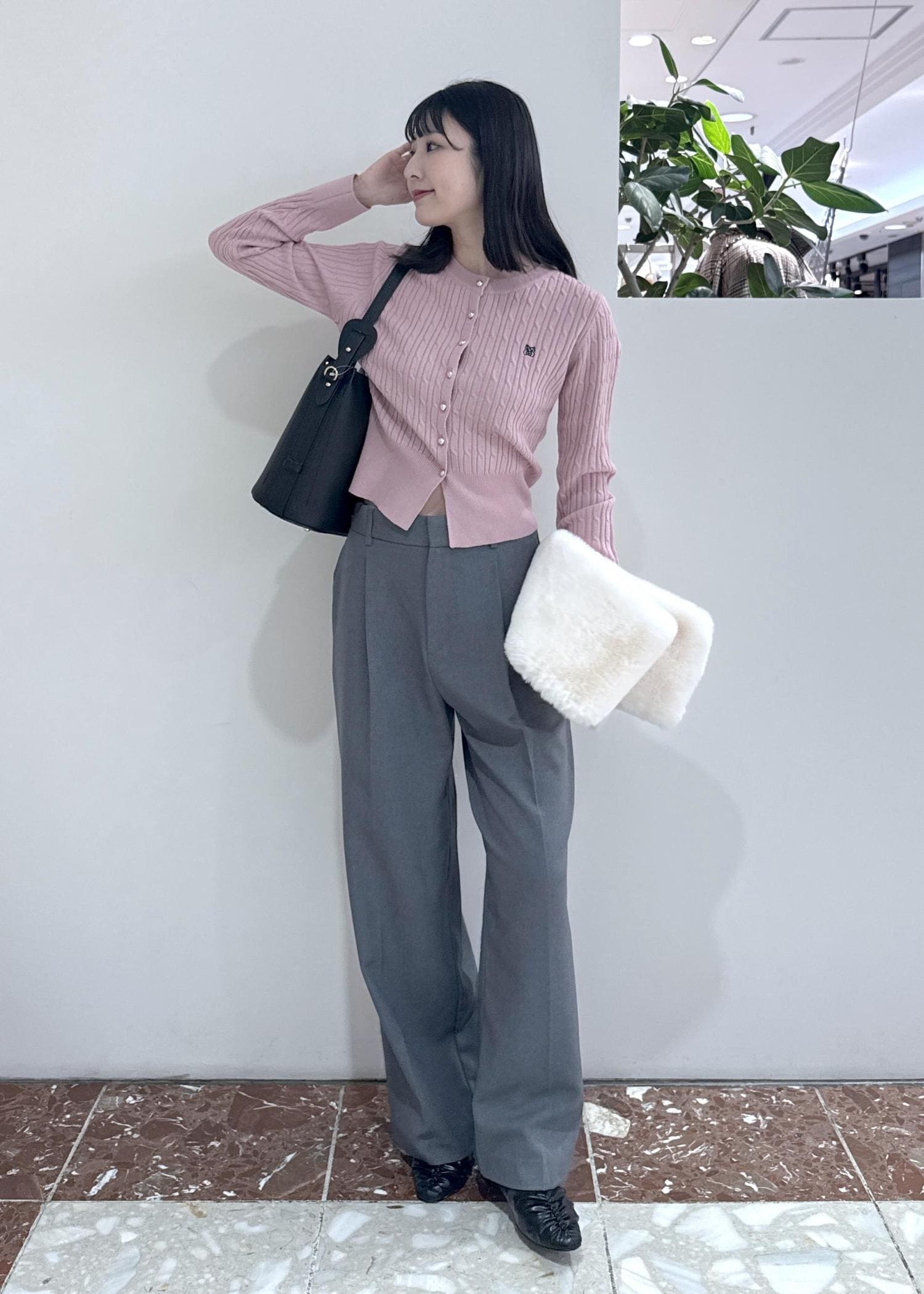 ハイウエストのバックレースアップがポイントで、ウエストが自由に調整できて、薄手のニットやTシャツはインできます◎ -