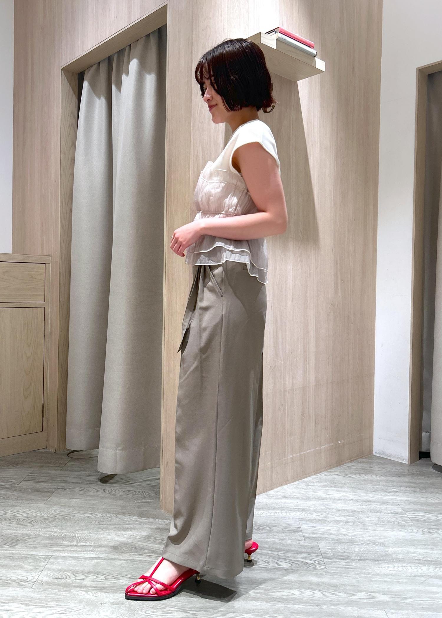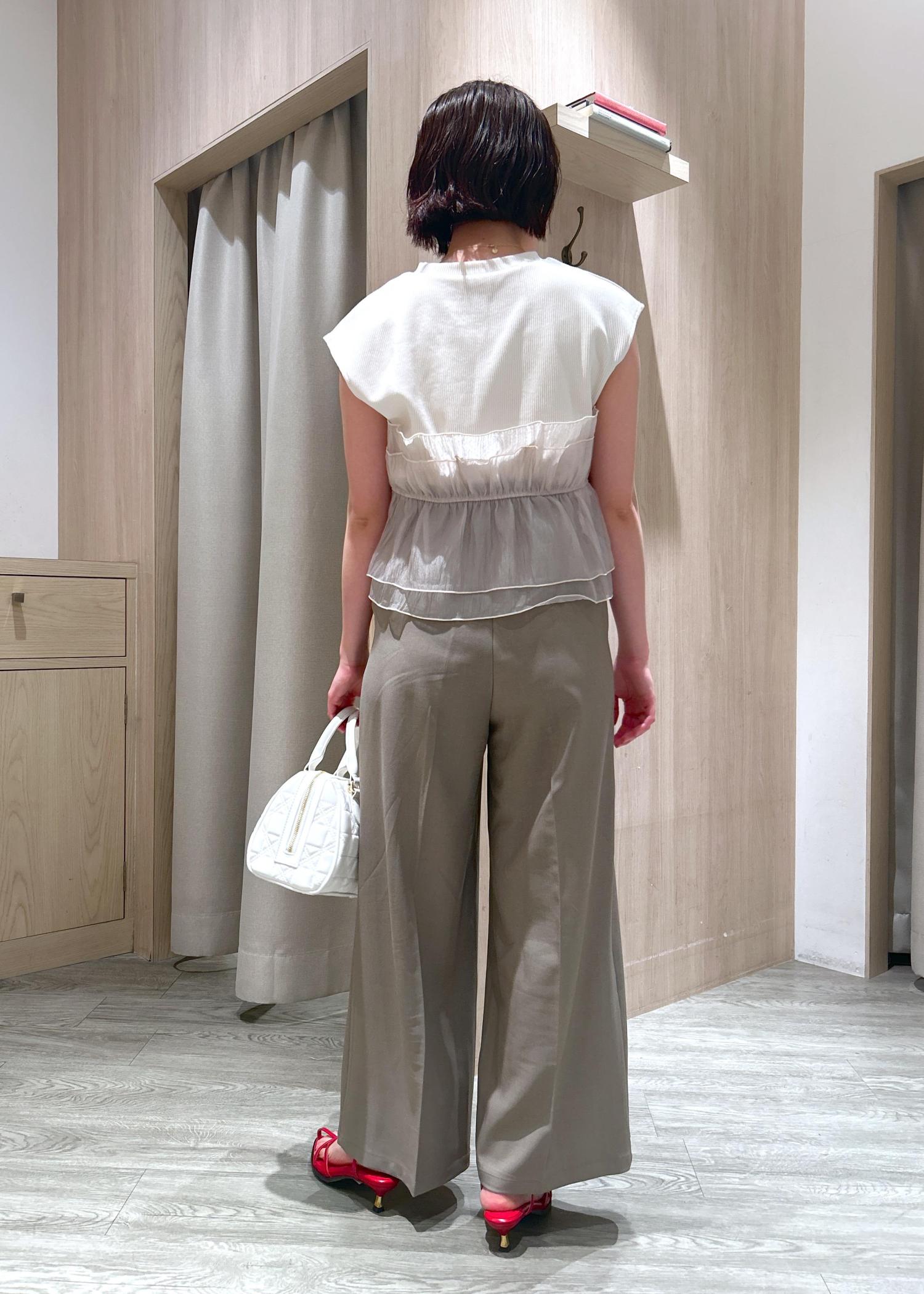 1枚で着映えするドッキングトップス×ワイドパンツのキレイめなコーデにしました!