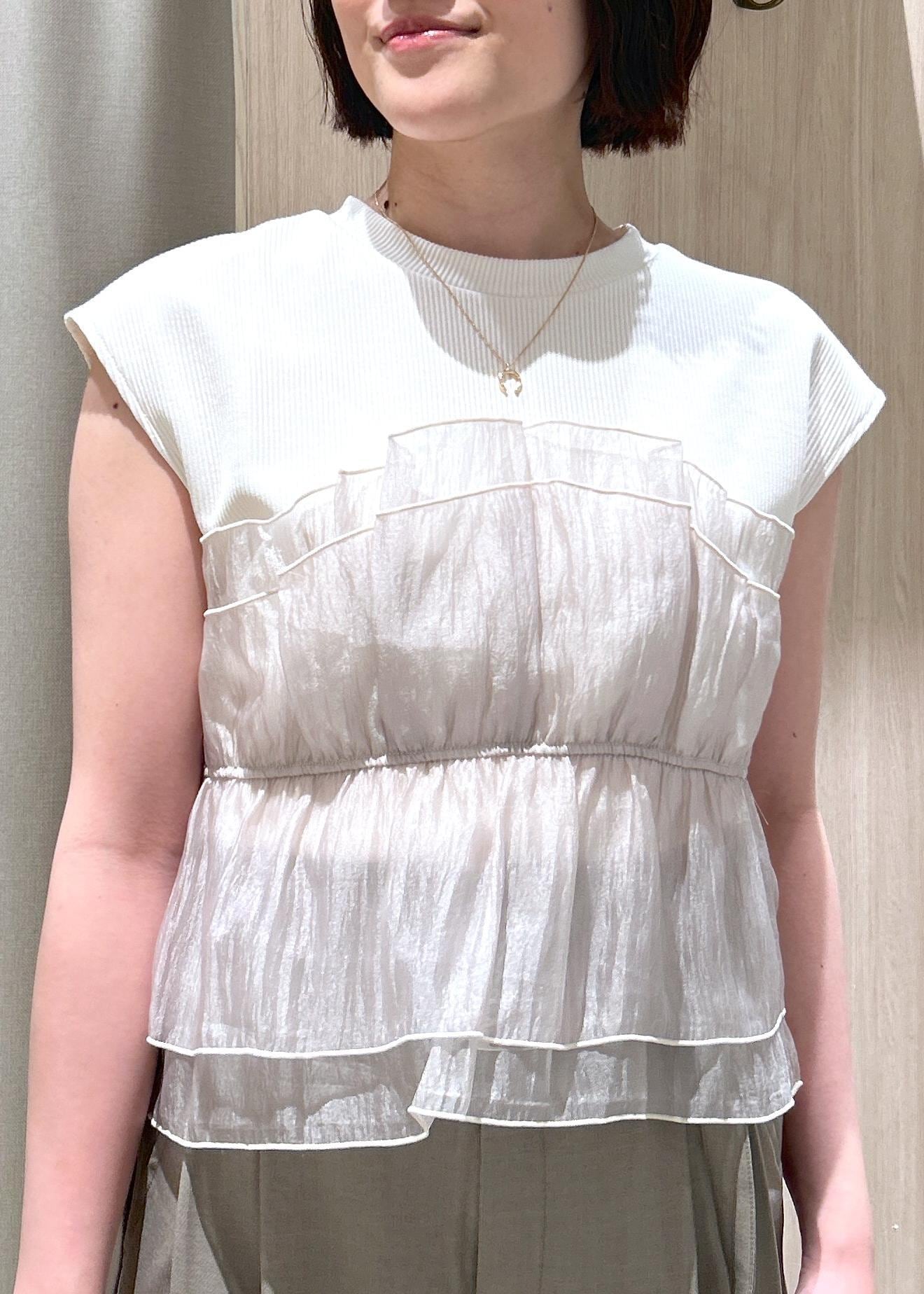 旬なレイヤードスタイルが叶う!ビスチェドッキングフレンチスリーブプルオーバー【洗える】