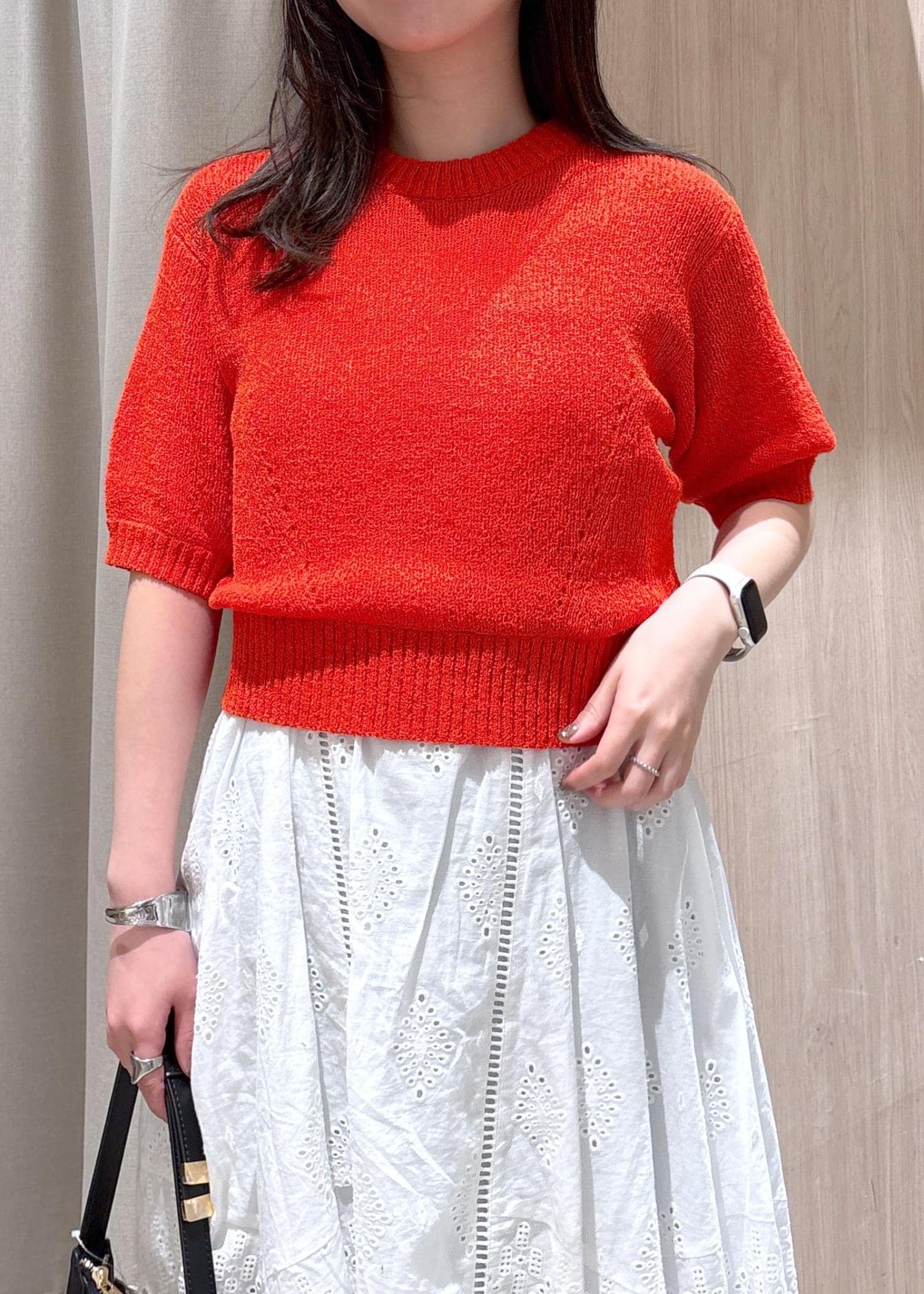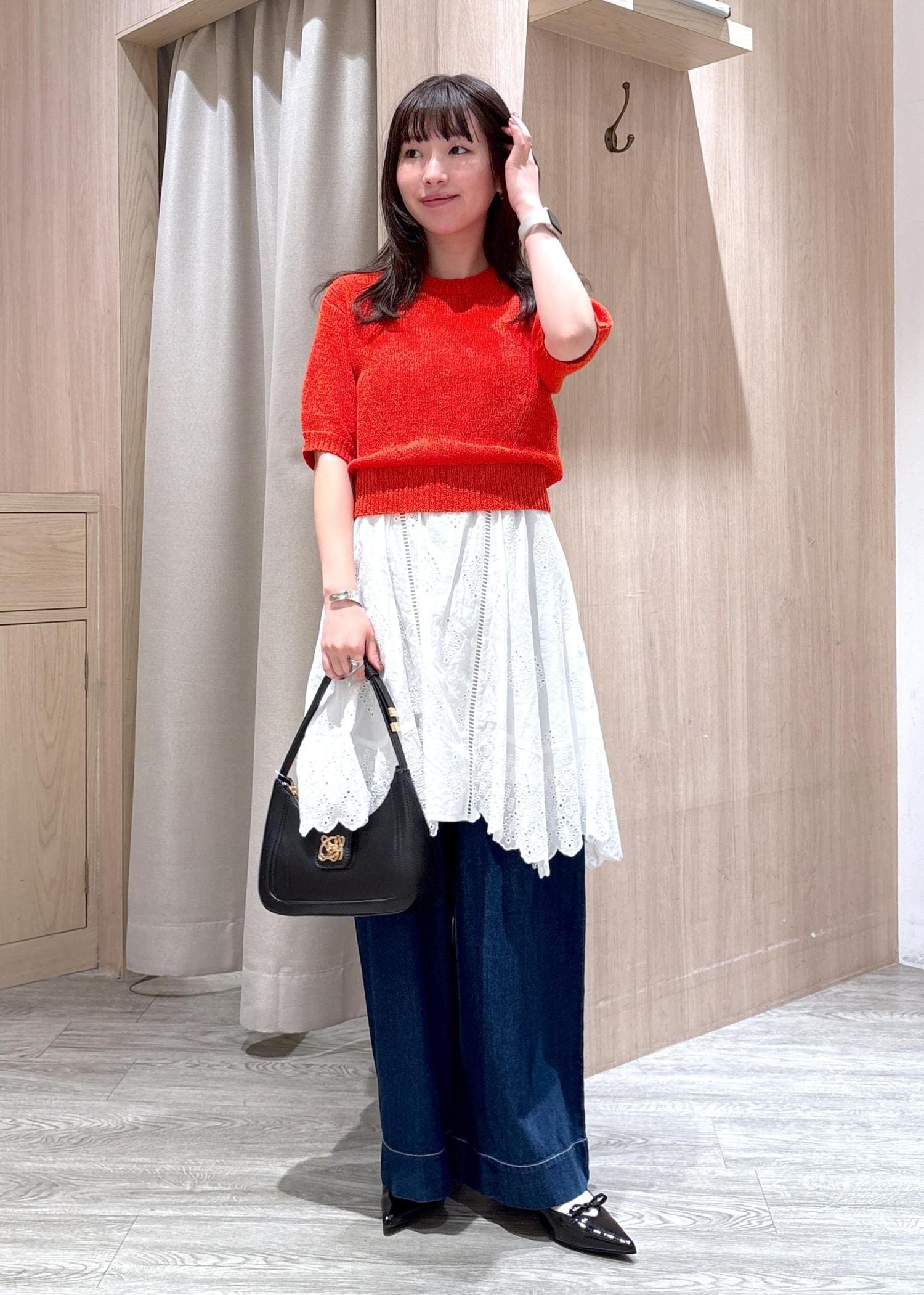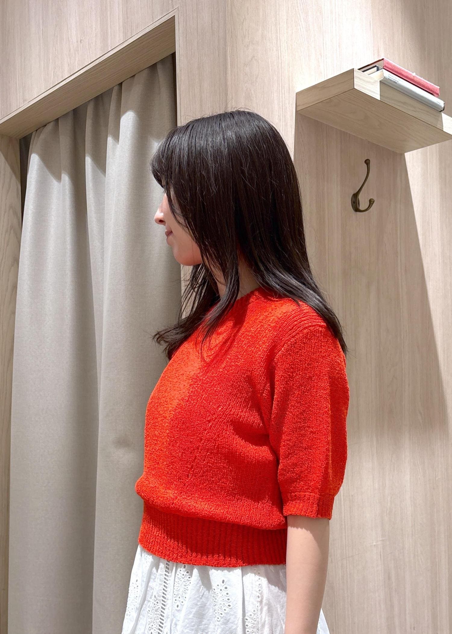 アウトレットVIS【洗える】アイレットブークレコンパクトニットレッド / F¥2,633レビュー膝がやや隠れる袖丈でした。