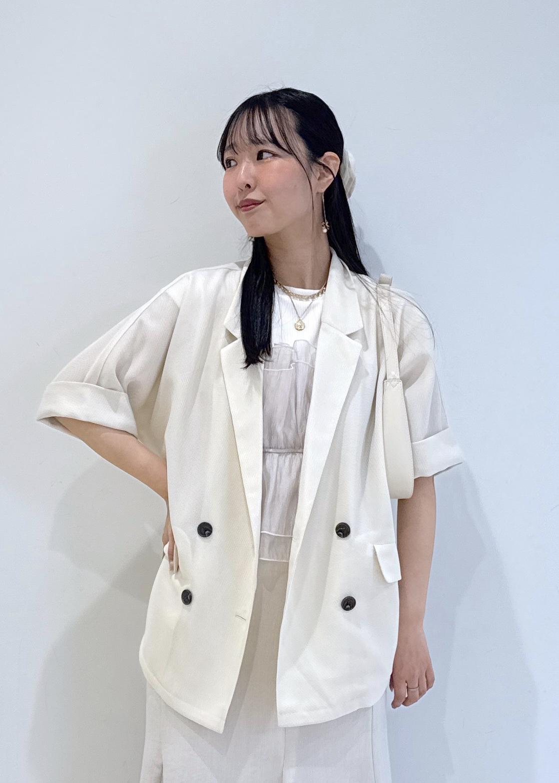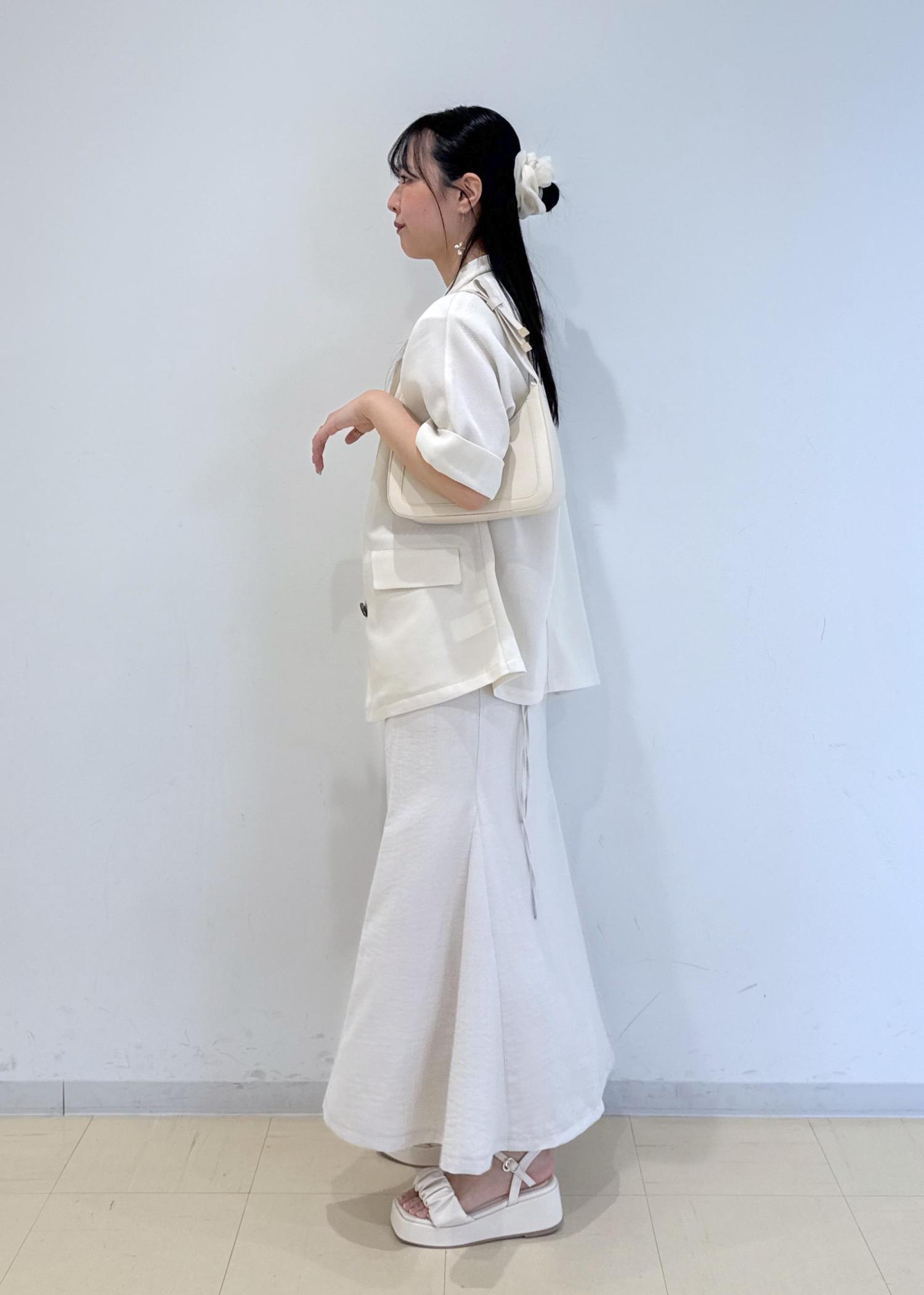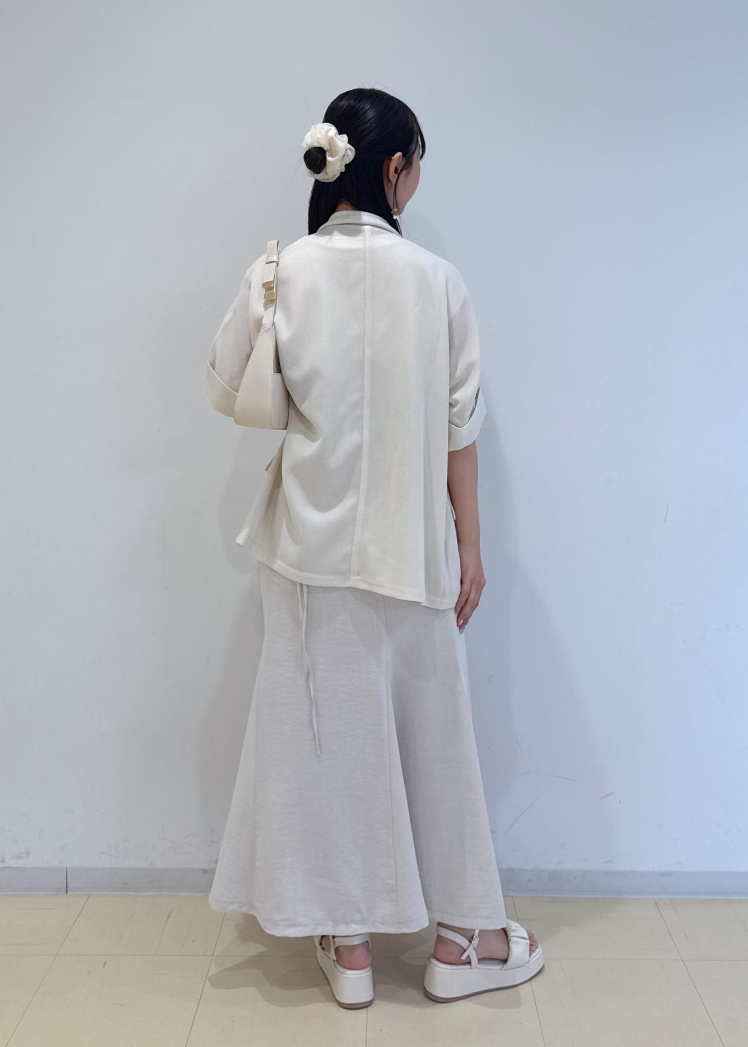 トップスとスカートはかなりキレイめな印象の組み合わせなので、少しカジュアルさをプラスするためにオーバーサイズのジャケットを羽織っています♪