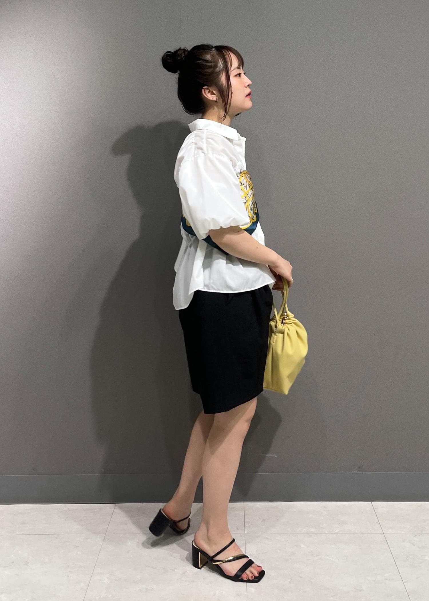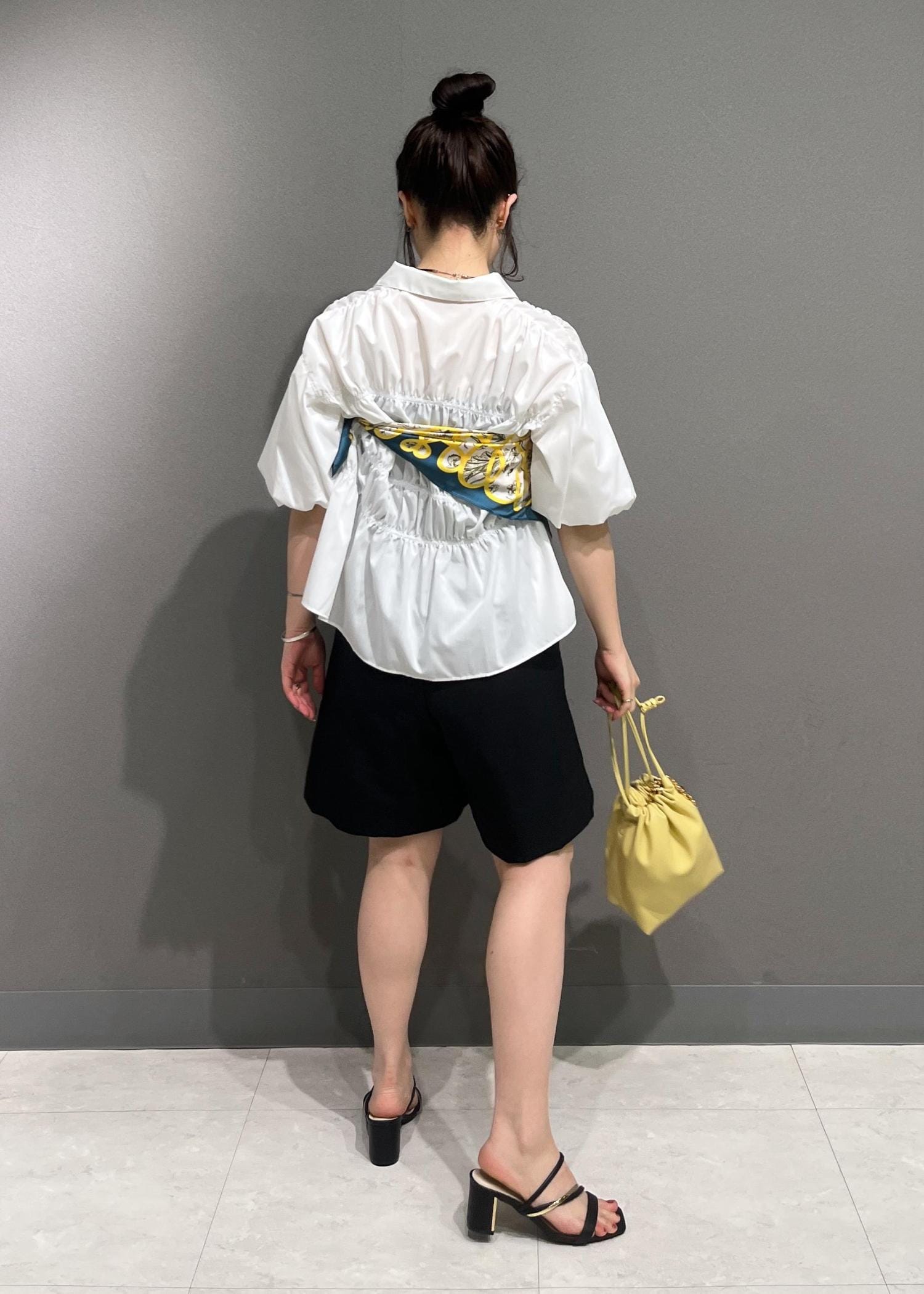 シャーリングブラウス イエローを差し色に♡