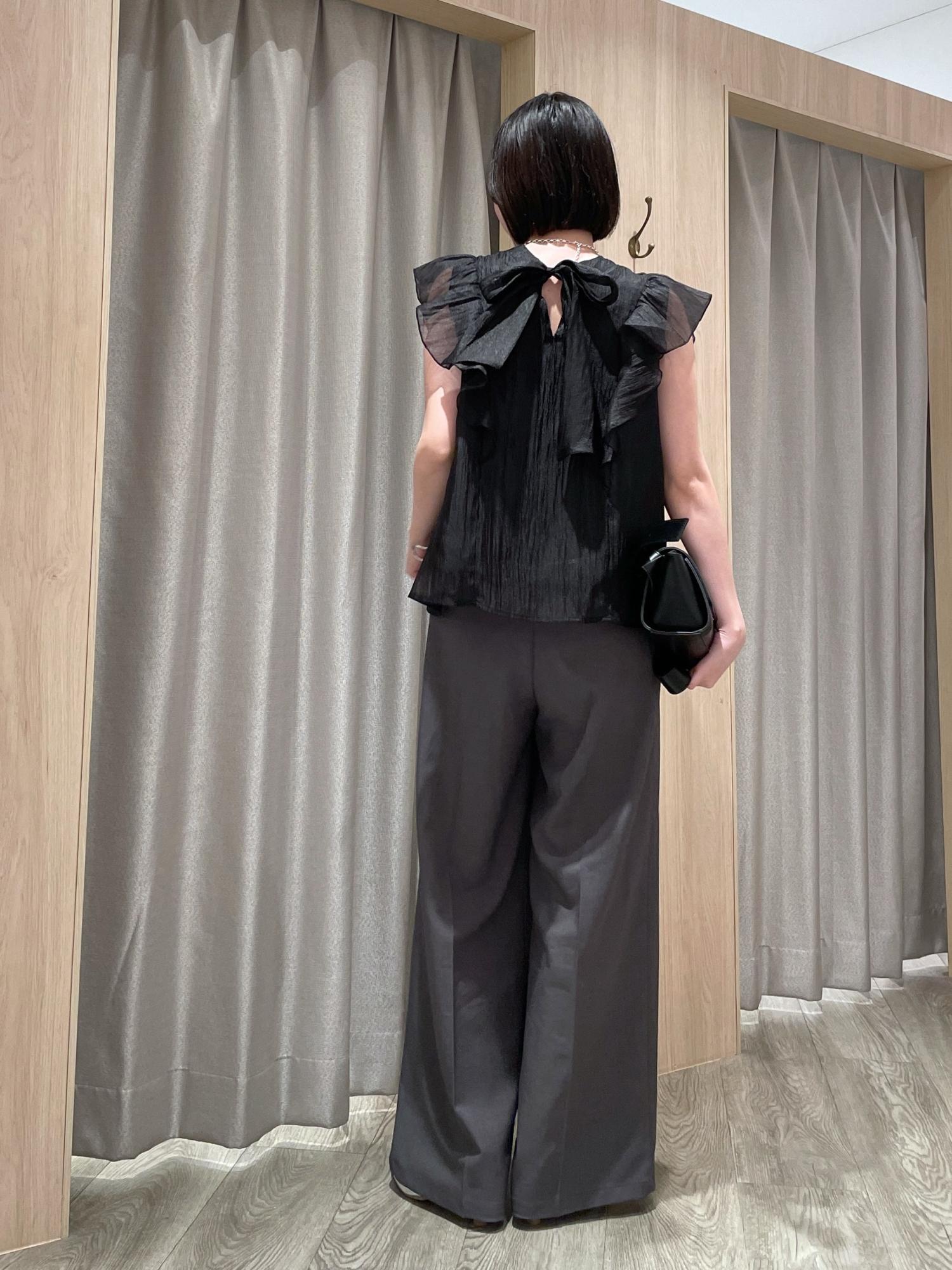 2BUY10%OFFVIS【店頭人気】主役級!華やぎシアーシャイニーボウタイフリルブラウス【前後2WAY】【洗える】ブラック / F¥5,489レビュー艶感が上品見えなブラウス❤︎二の腕をカバーできる大きめフリル、シアー素材なので膨張して見えたりもしないです◎身長159cmでヒップ上の丈感なのでアウトスタイルでもバランスよく合わせられます。