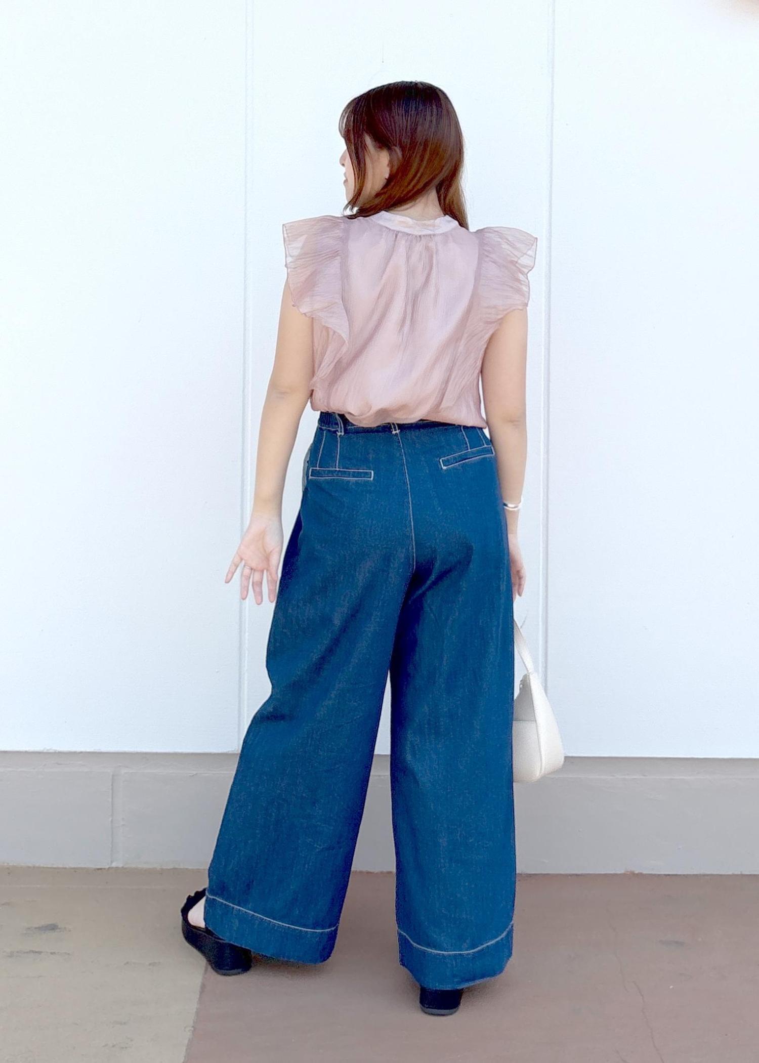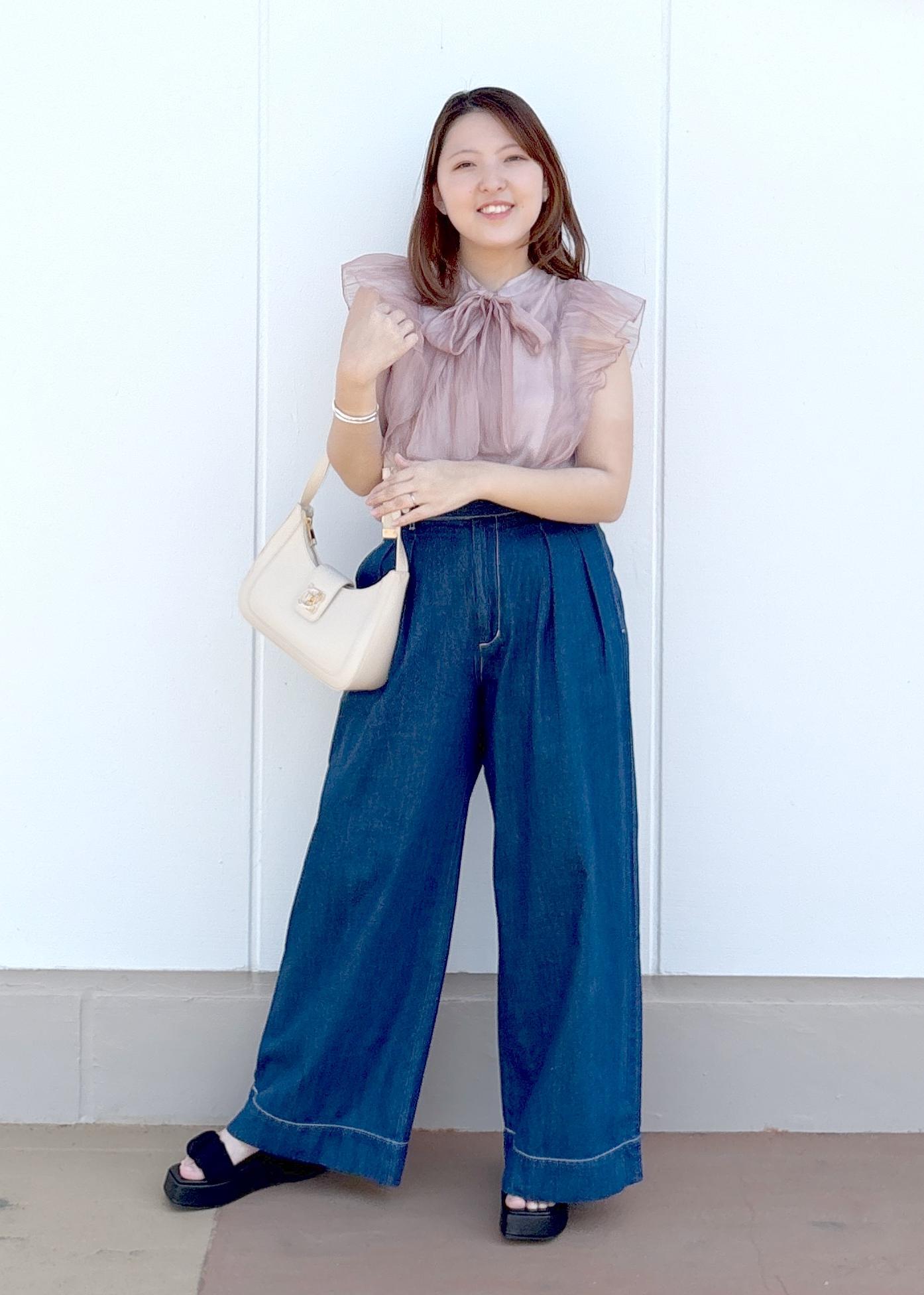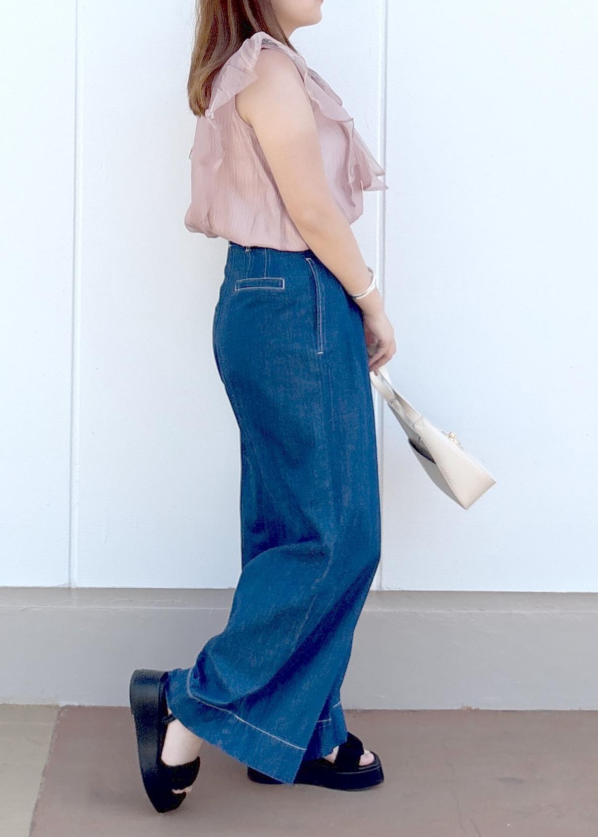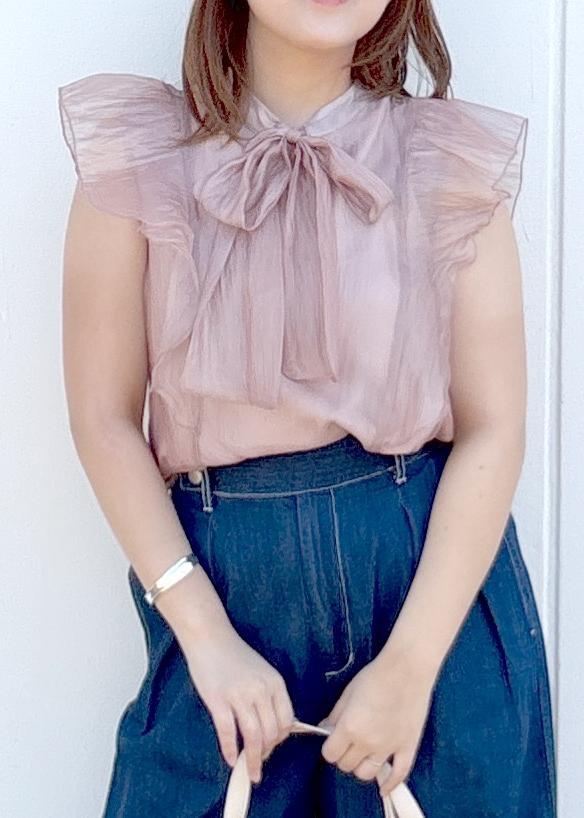 袖はふわっとしたシアーフリルで二の腕もスッキリ見せてくれます!