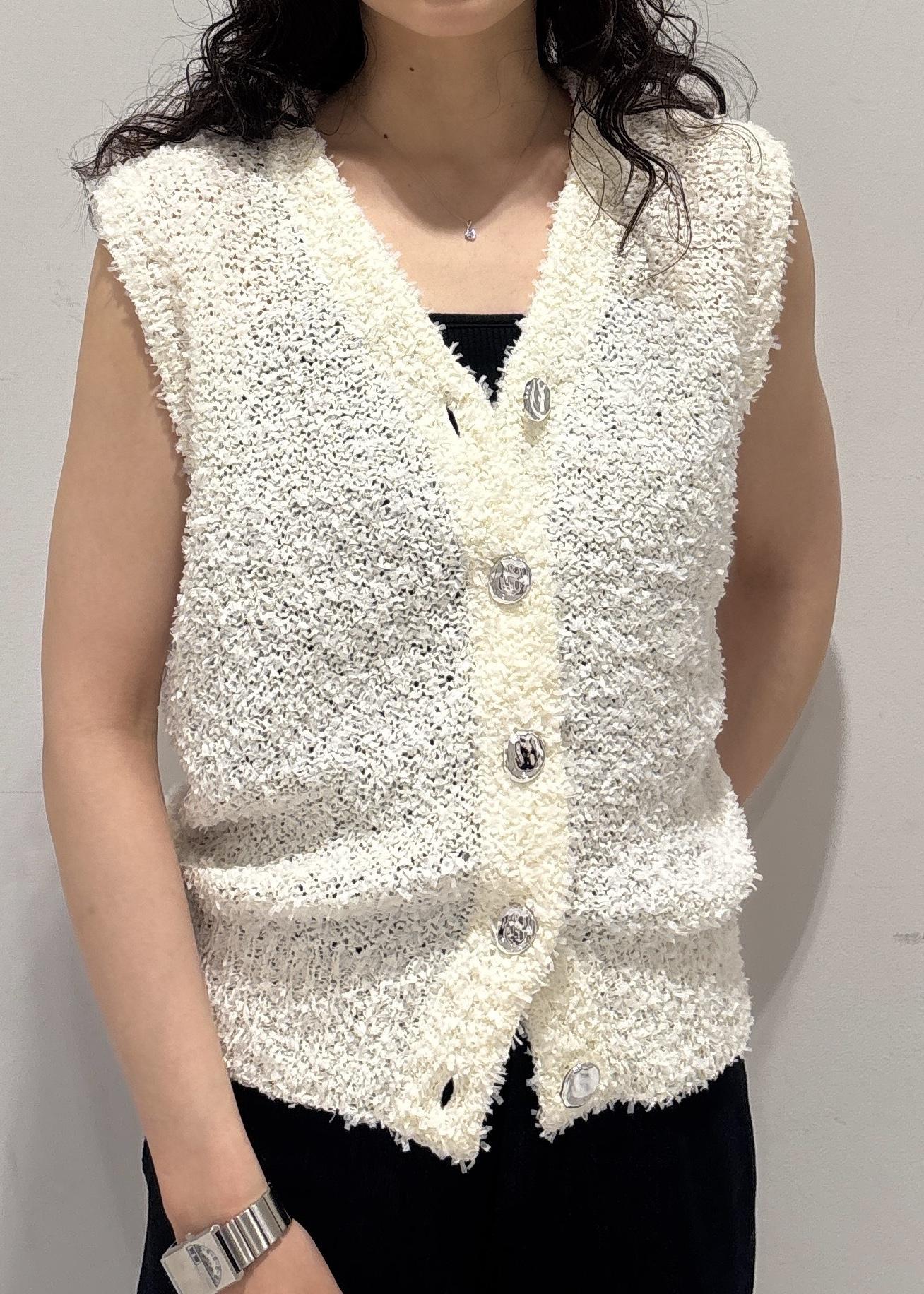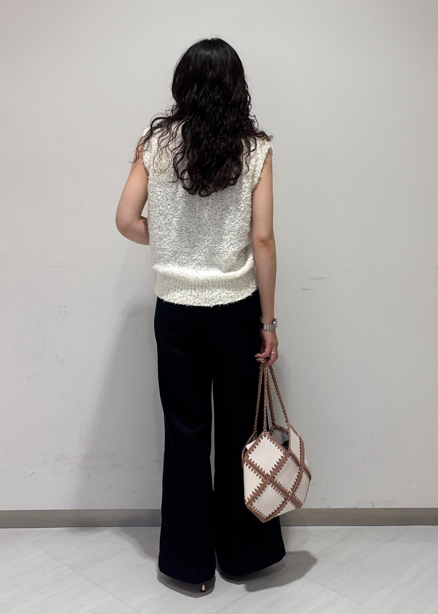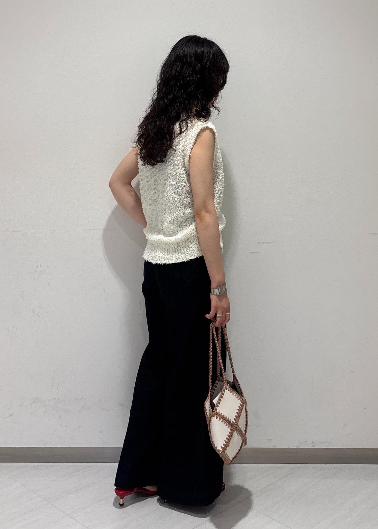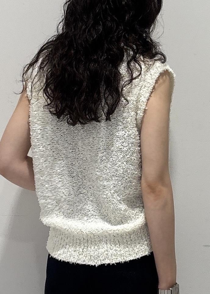 アウトレットVIS【洗える】テープヤーンニットベストオフホワイト /¥4,391レビューテープヤーンの表面感がコーディネートのアクセントになるアイテム。