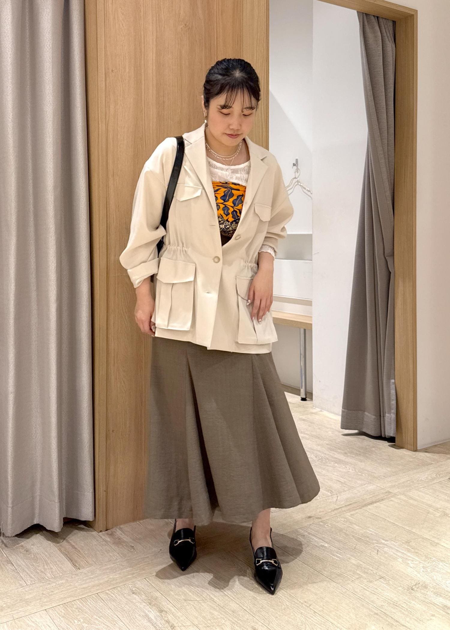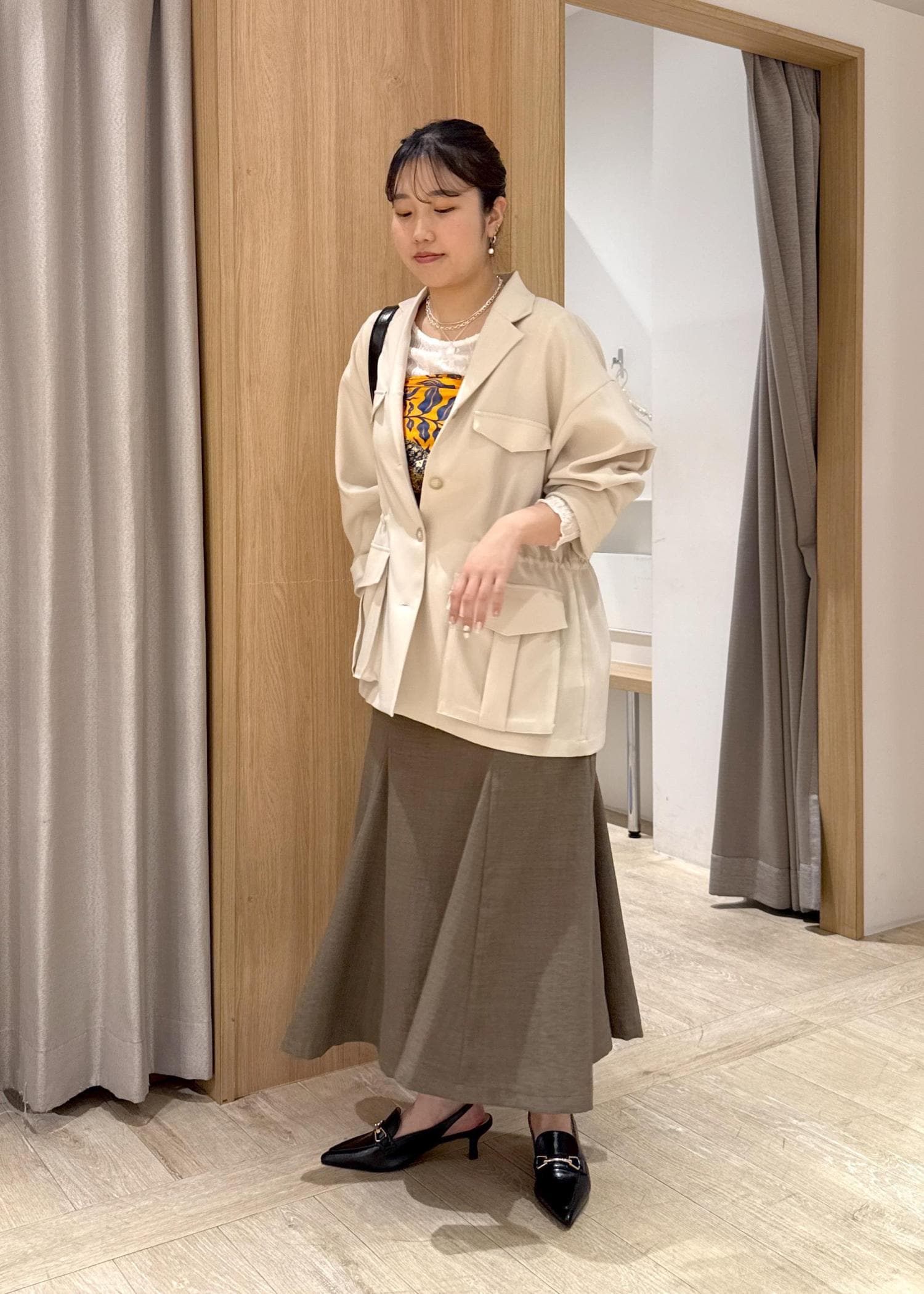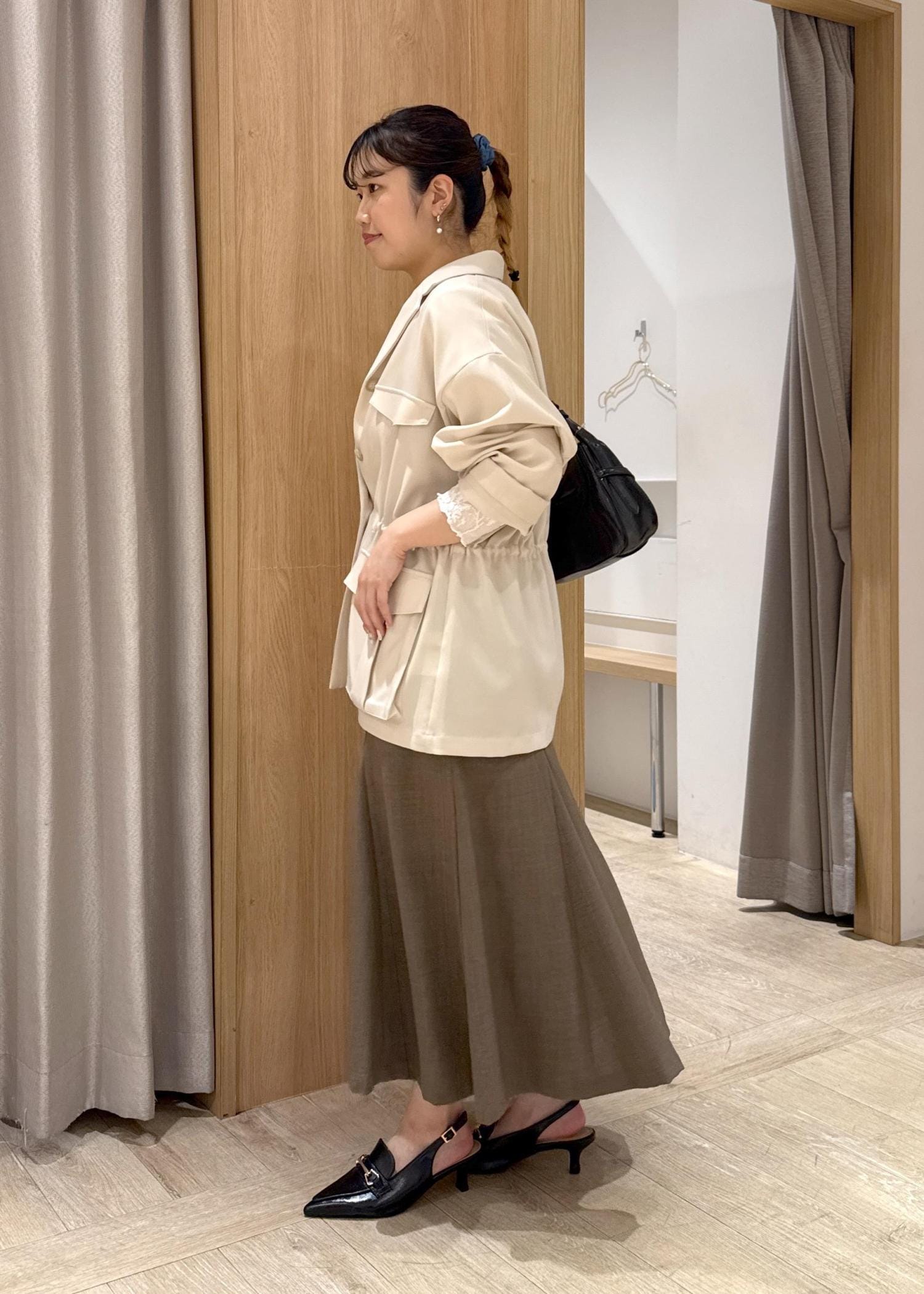 VIS【新色追加】【美easy】リネンライクマーメイドスカート【洗える】【セットアップ対応】カーキ系 / M¥5,489レビュー153cmの私ですが、Mサイズで足首上の丈感でした。