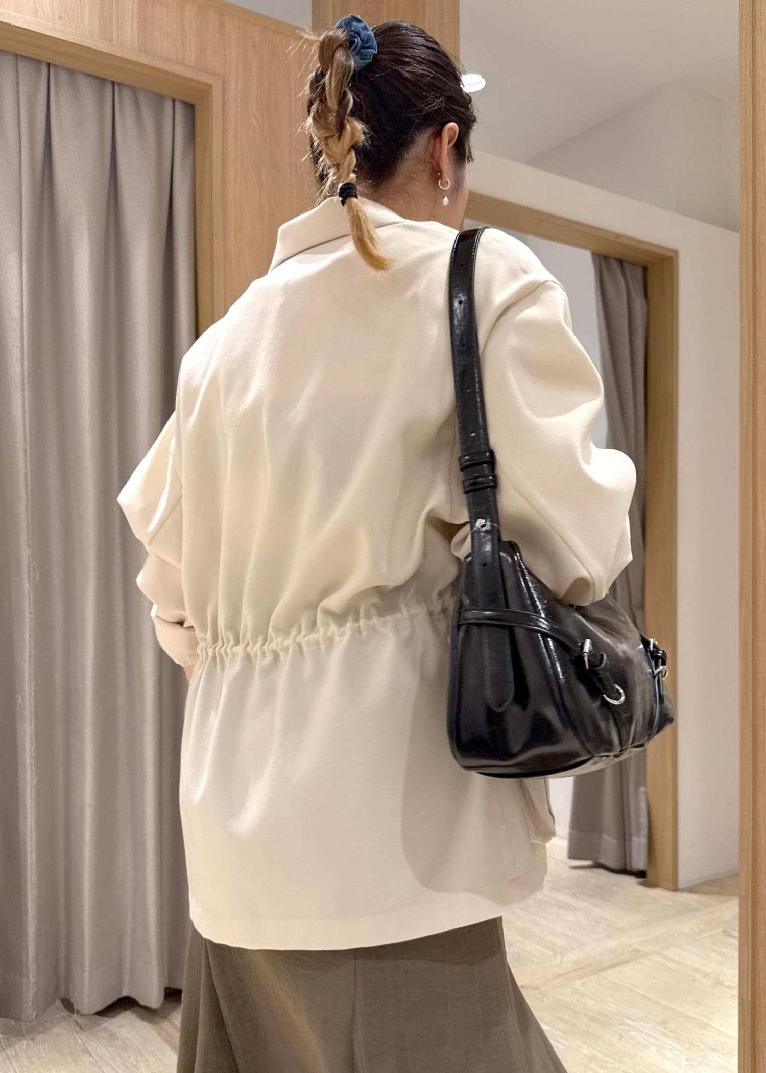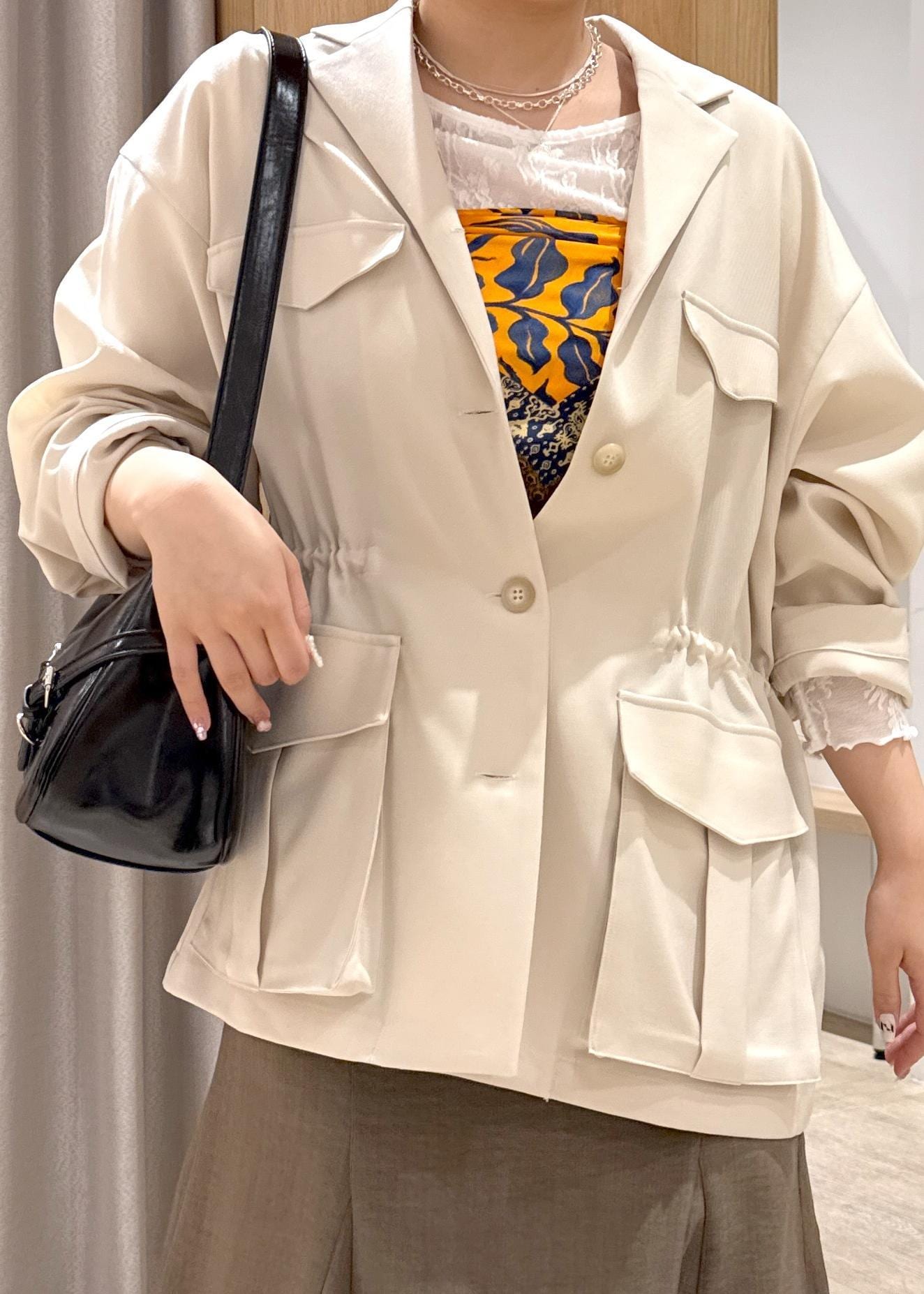 アウトレットVIS【防シワ】リネンライクミリタリーシャツジャケットオフホワイト / F¥3,164レビュー153cmですがヒップが隠れるくらいの長さでした。