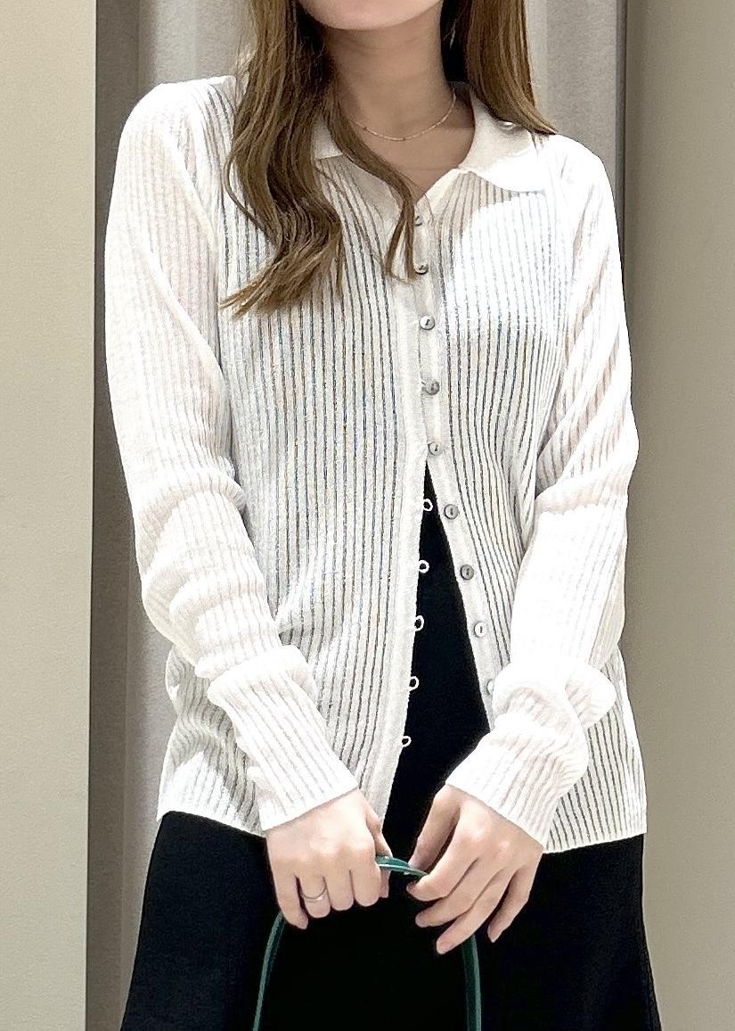 シアーポロ襟リブカーディガン