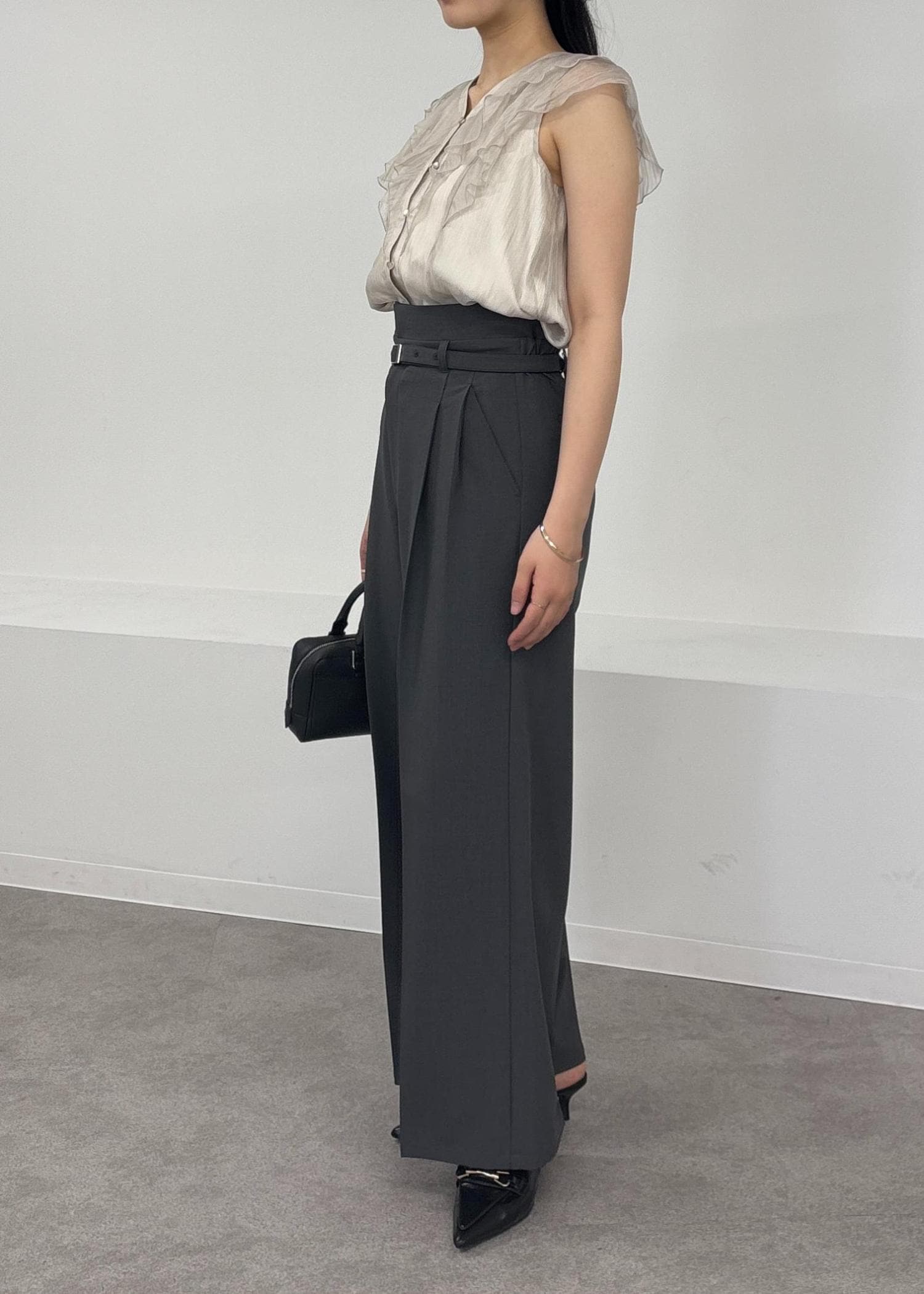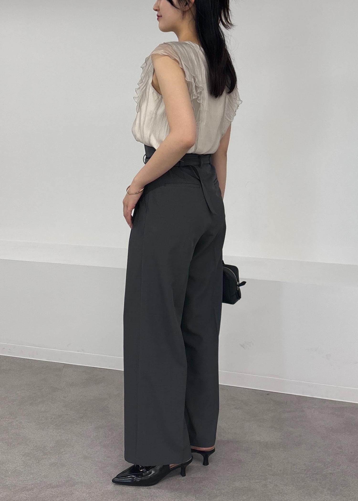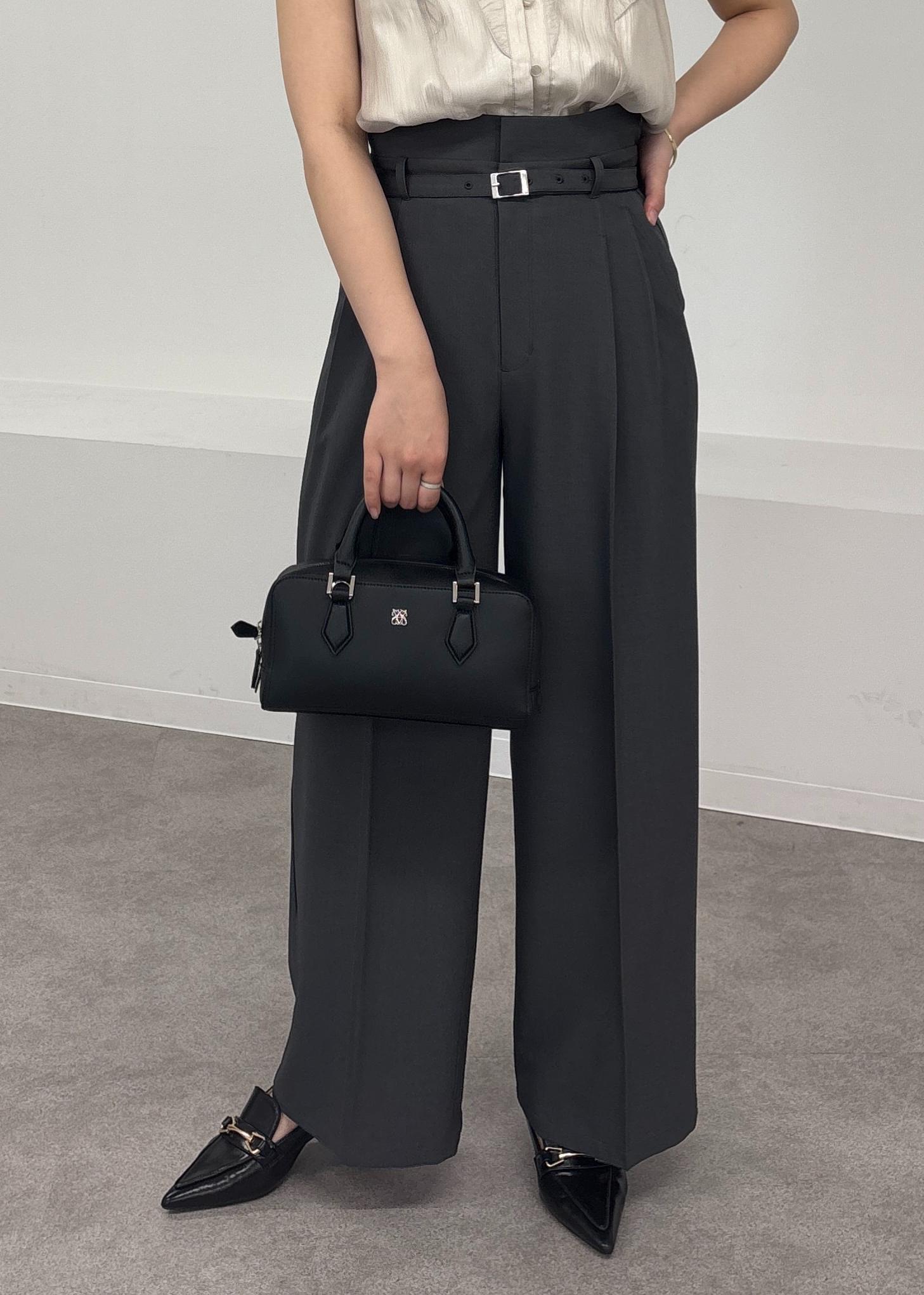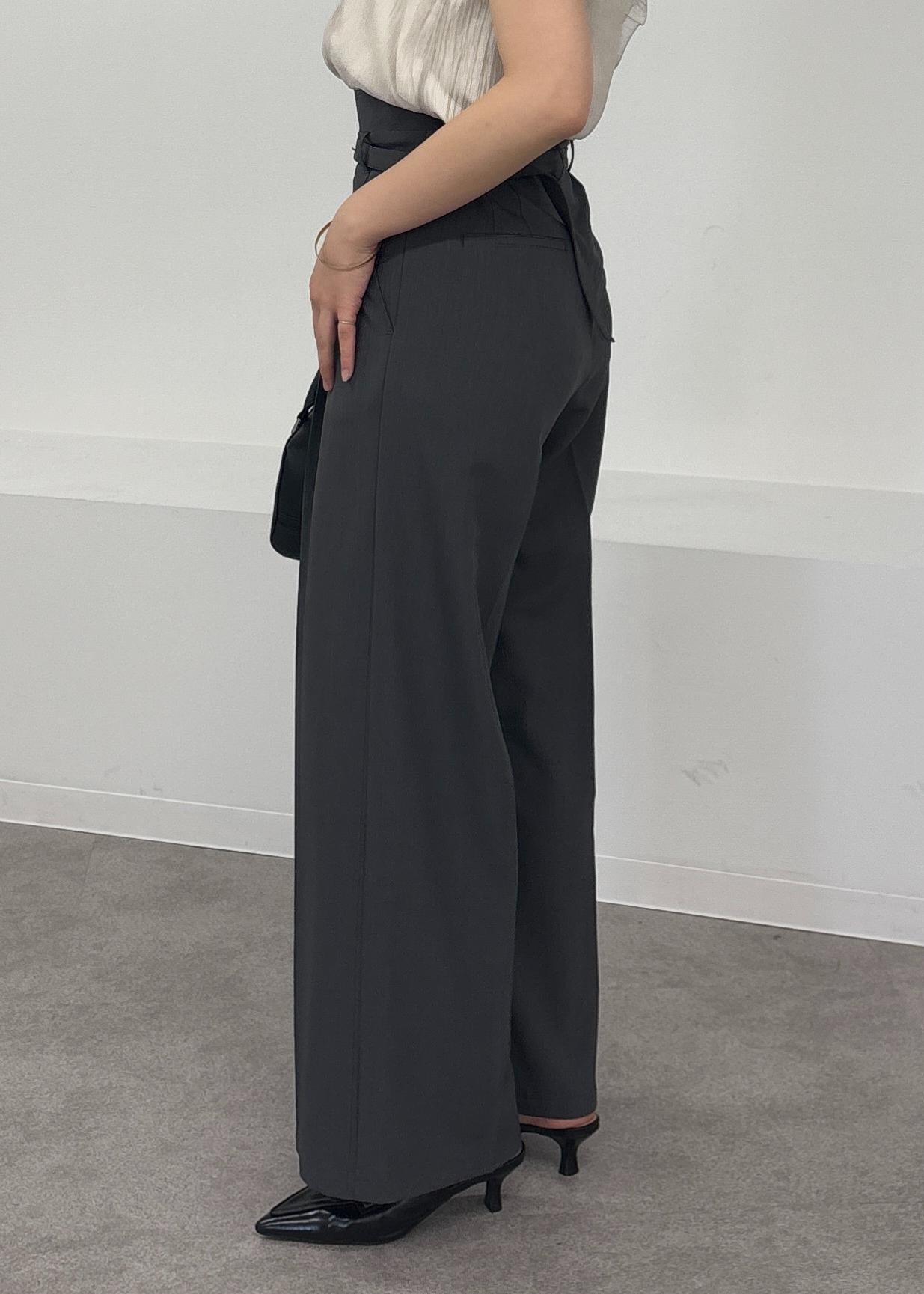 ワイドシルエットですが、広すぎないラインとベルトで綺麗見えもします! -