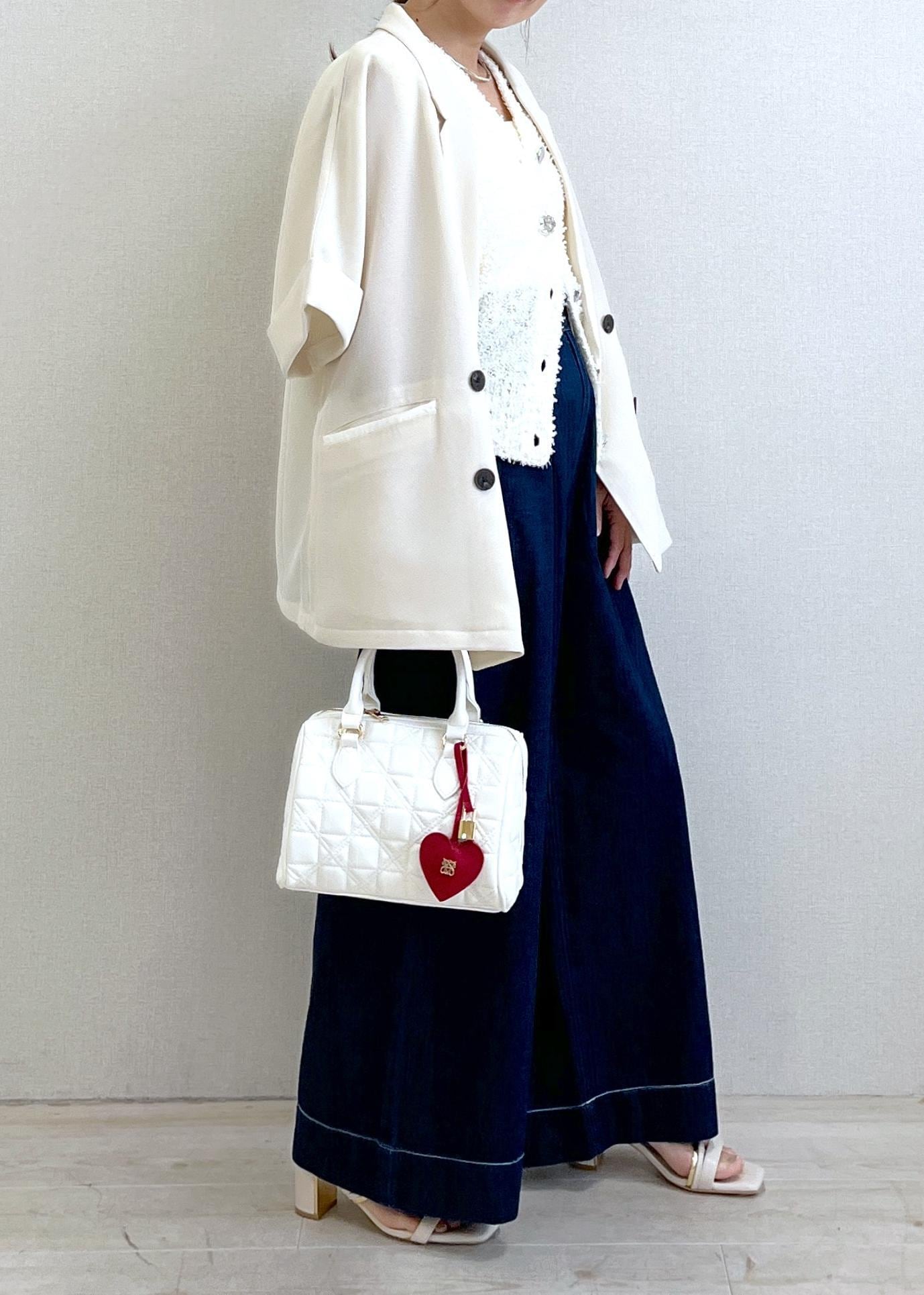 VIS【追加】【2WAY】ハートチャームつきボストンバッグオフホワイト / F¥5,536レビューとっても軽いボストン型バッグはショルダー付きで2wayで使える大人気バッグ!再入荷しました。ハートのチャームがポイントで、コーディネートのアクセントにも◎