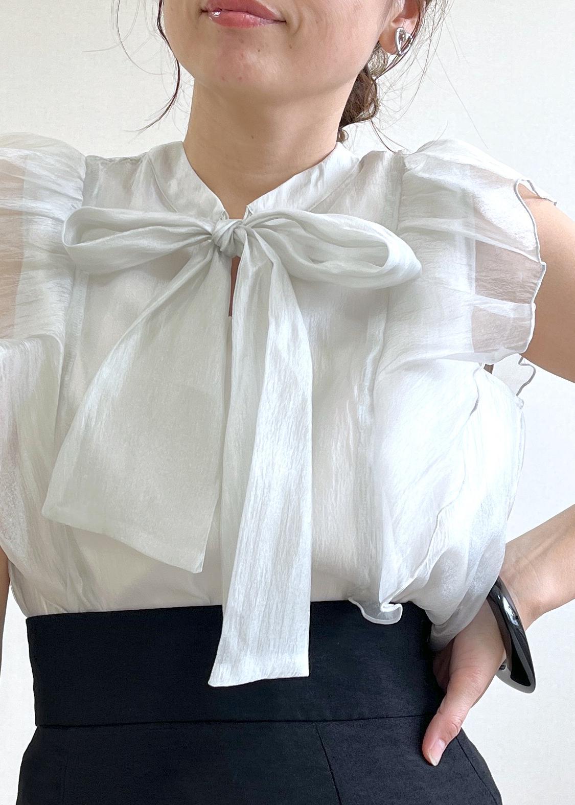 VIS【店頭人気】主役級!華やぎシアーシャイニーボウタイフリルブラウス【前後2WAY】【洗える】ライトグリーン / F¥5,489レビュー152cmでFサイズ着用し、着丈は腰にかかるくらいの丈。やや細身ですっきりお召しいただけるサイズ感。身体のラインを拾いすぎることはなく、スカートにもパンツにも合わせやすいです。柔らかい素材感がとっても着やすく、夏でもベタつくことない涼しいブラウスです。