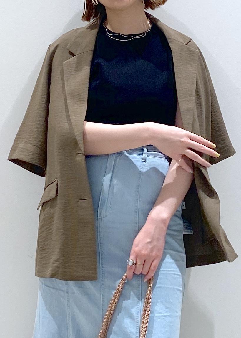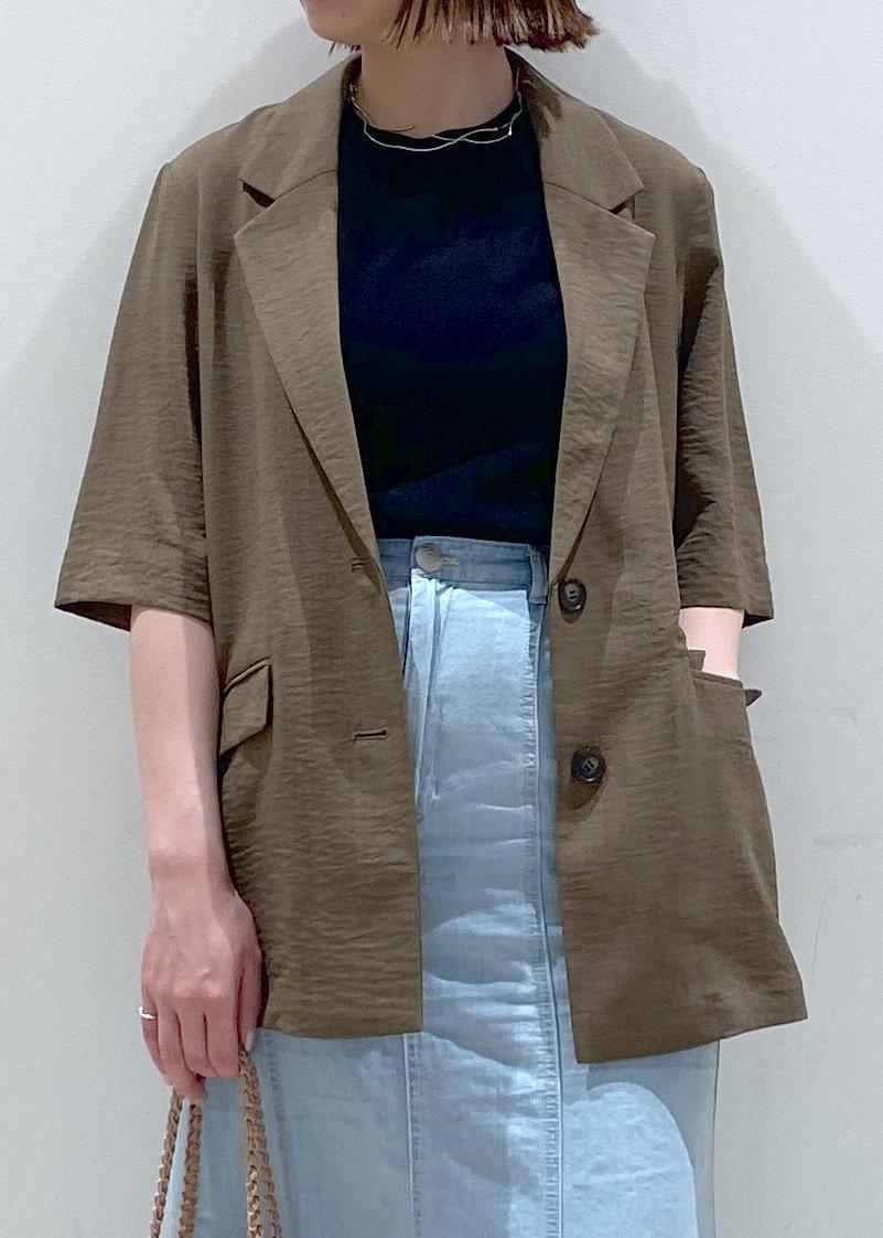 VIS【美easy】ハーフスリーブジャケット/セットアップ対応・洗えるカーキ系 / M¥7,909レビューリネンライクシリーズの半袖バージョンです♡