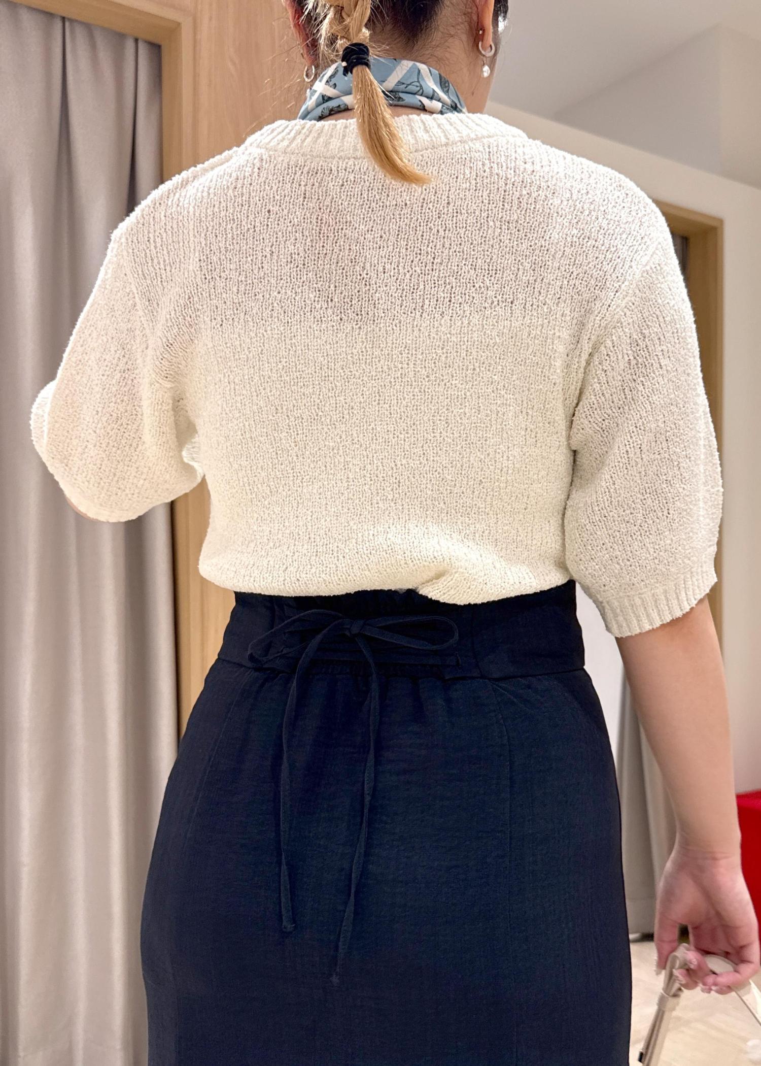 アウトレットVIS【洗える】アイレットブークレコンパクトニットオフホワイト / F¥2,633レビュー153cmの私ですが、お腹が隠れるくらいの丈感でした。