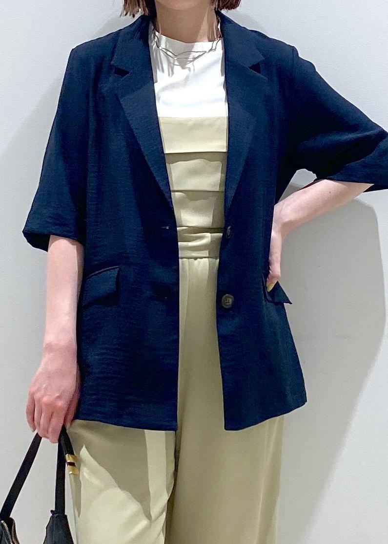 VIS【美easy】ハーフスリーブジャケット/セットアップ対応・洗えるネイビー / M¥7,909レビューリネンライクシリーズの半袖バージョンです♡