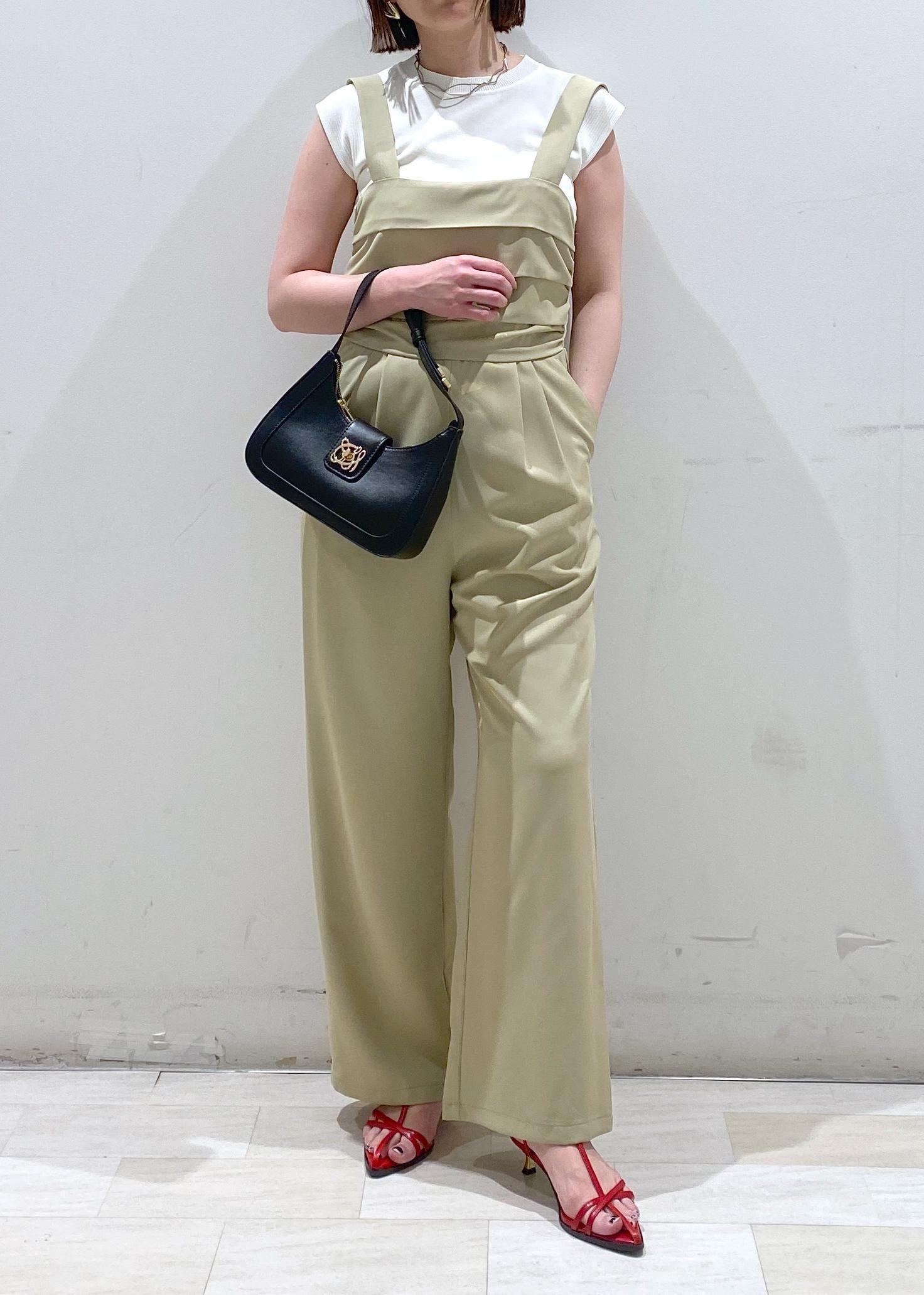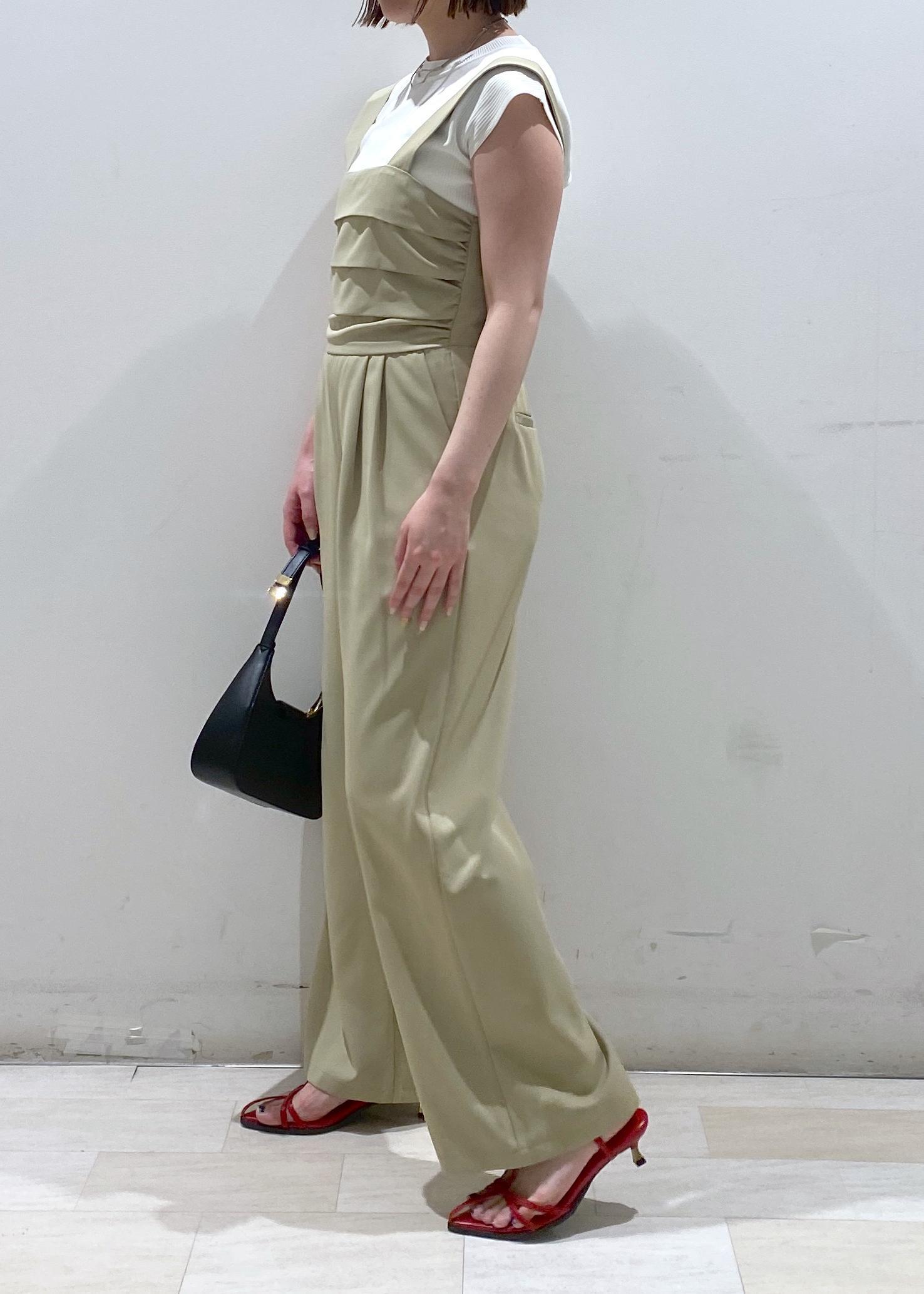 アウトレットVISフロントタックデザインサロペット/オールインワンベージュ / F¥4,745レビューさらっとした柔らかい生地なので