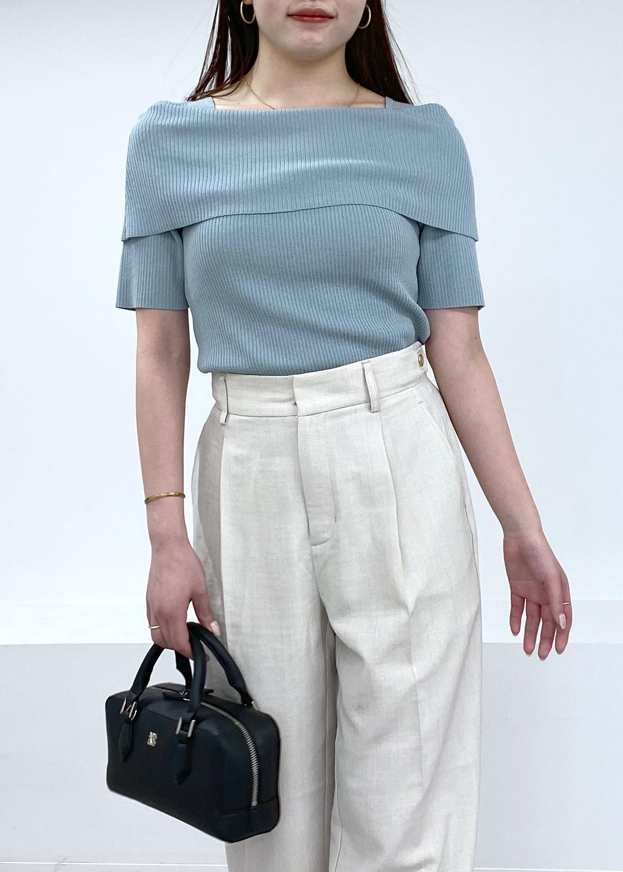 VIS【アンチピリング/UVケア/洗える】オフショルハーフスリーブニットライトグリーン / F¥4,939レビュー袖の長さは肘上くらいの長さで、二の腕もしっかりとカバーしてくれて安心して着れる長さです!