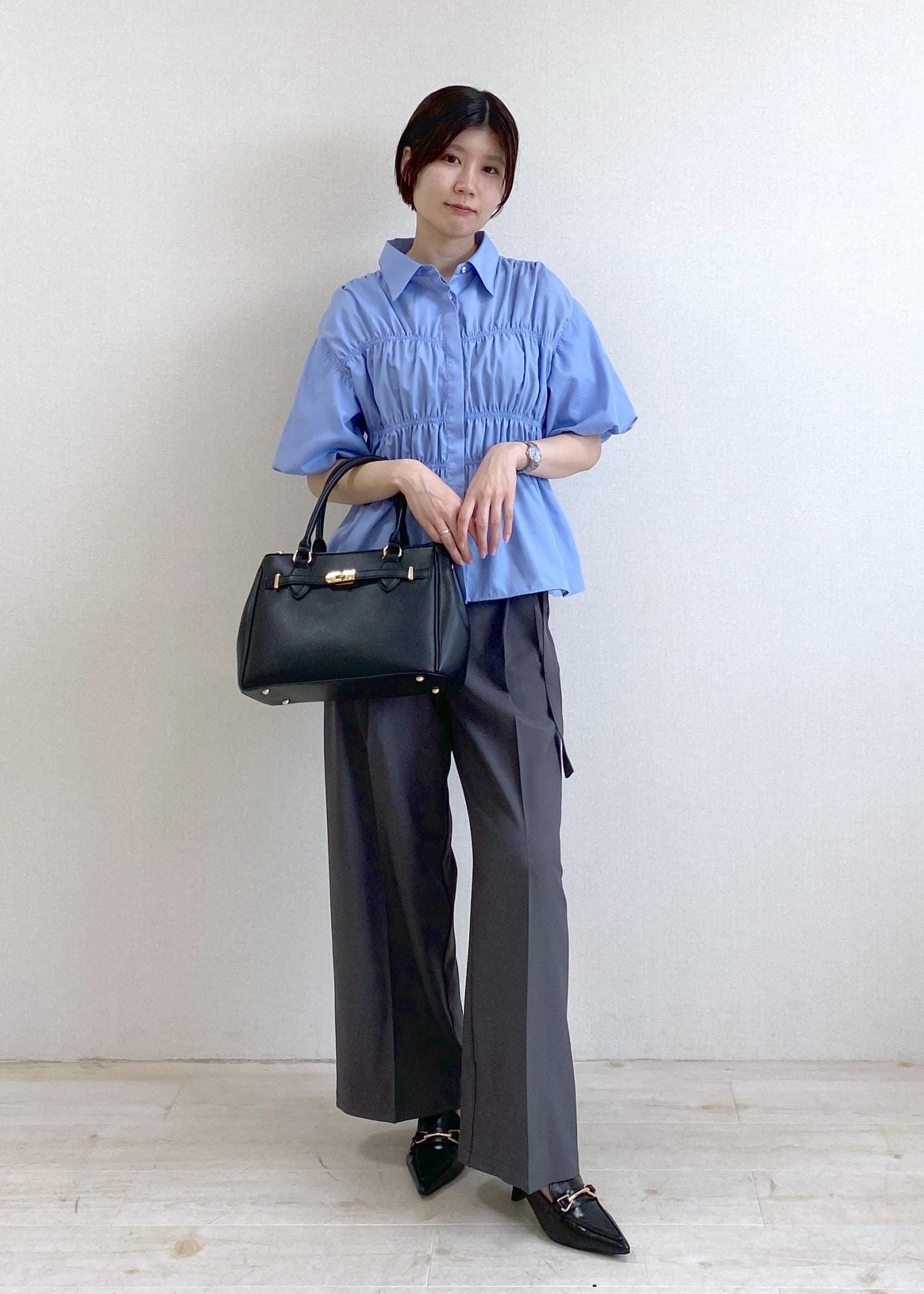 VIS【新色追加】【店頭人気】シャーリングバルーンシャツブルー / F¥5,489レビューシャーリングデザインで伸縮性あり窮屈感無く着られます。