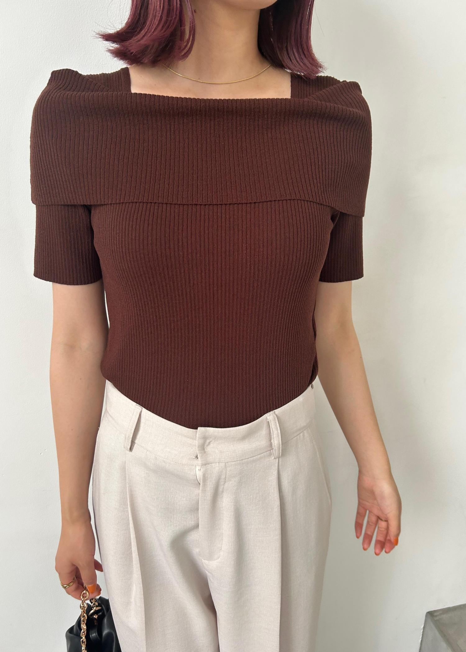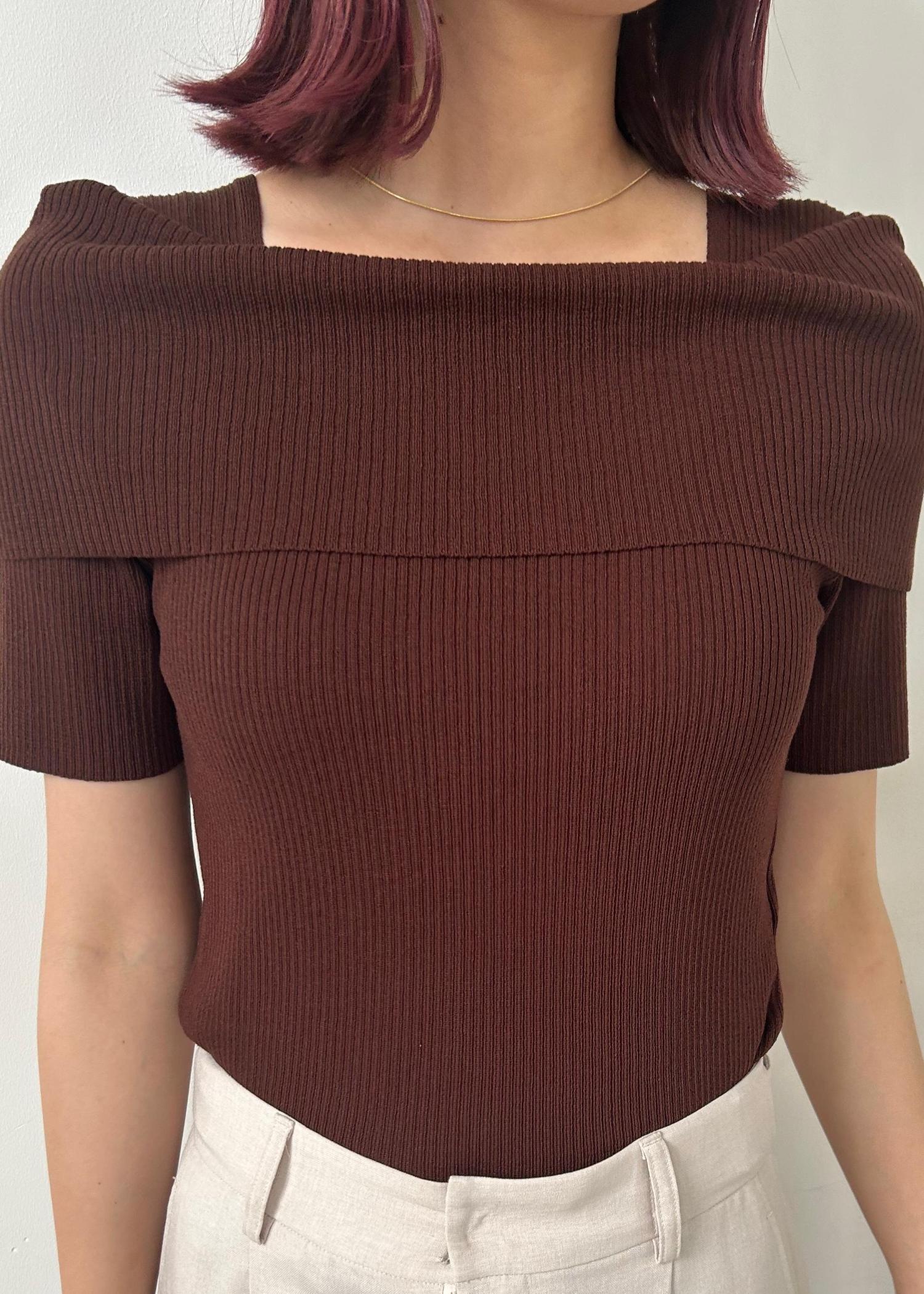 VIS【アンチピリング/UVケア/洗える】オフショルハーフスリーブニットダークブラウン / F¥4,939レビュー程よく体のラインが出てデコルテが綺麗に見える